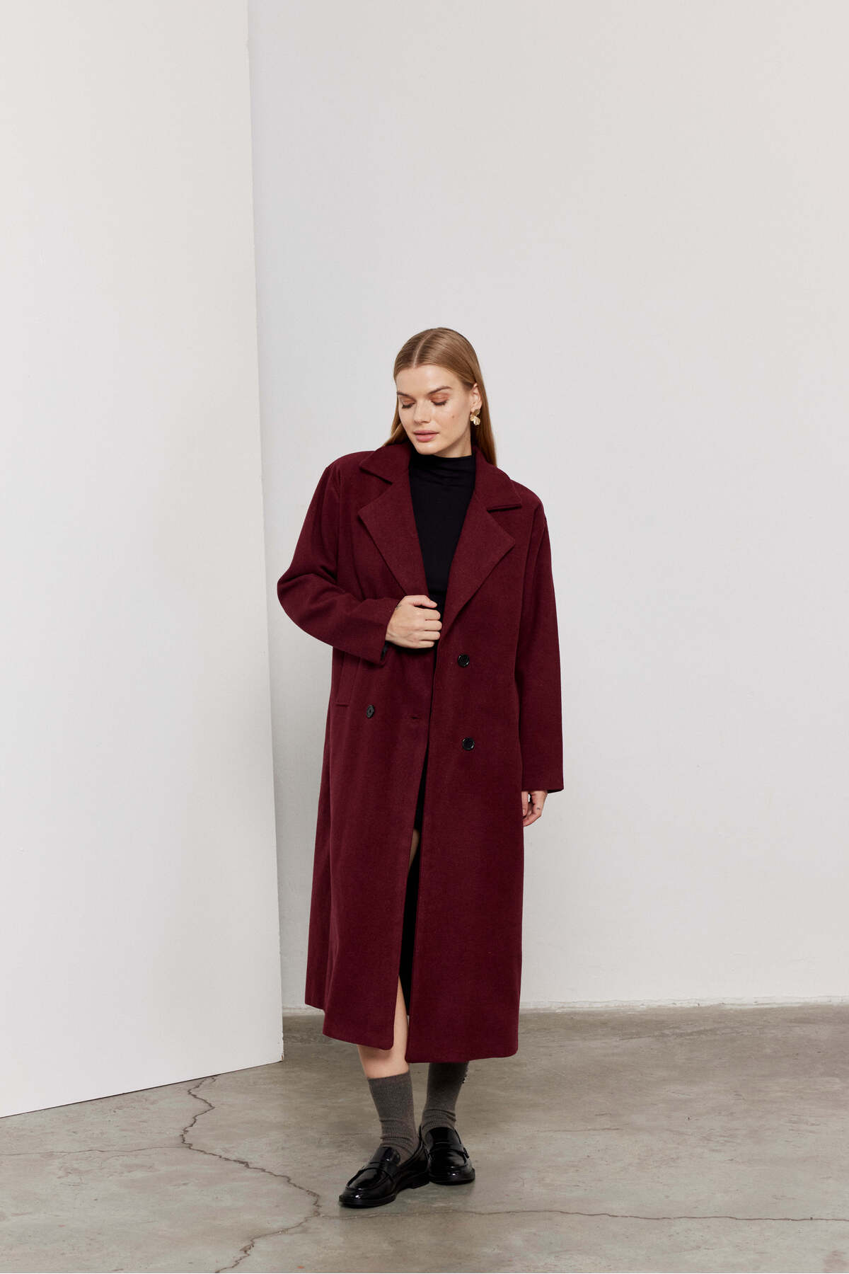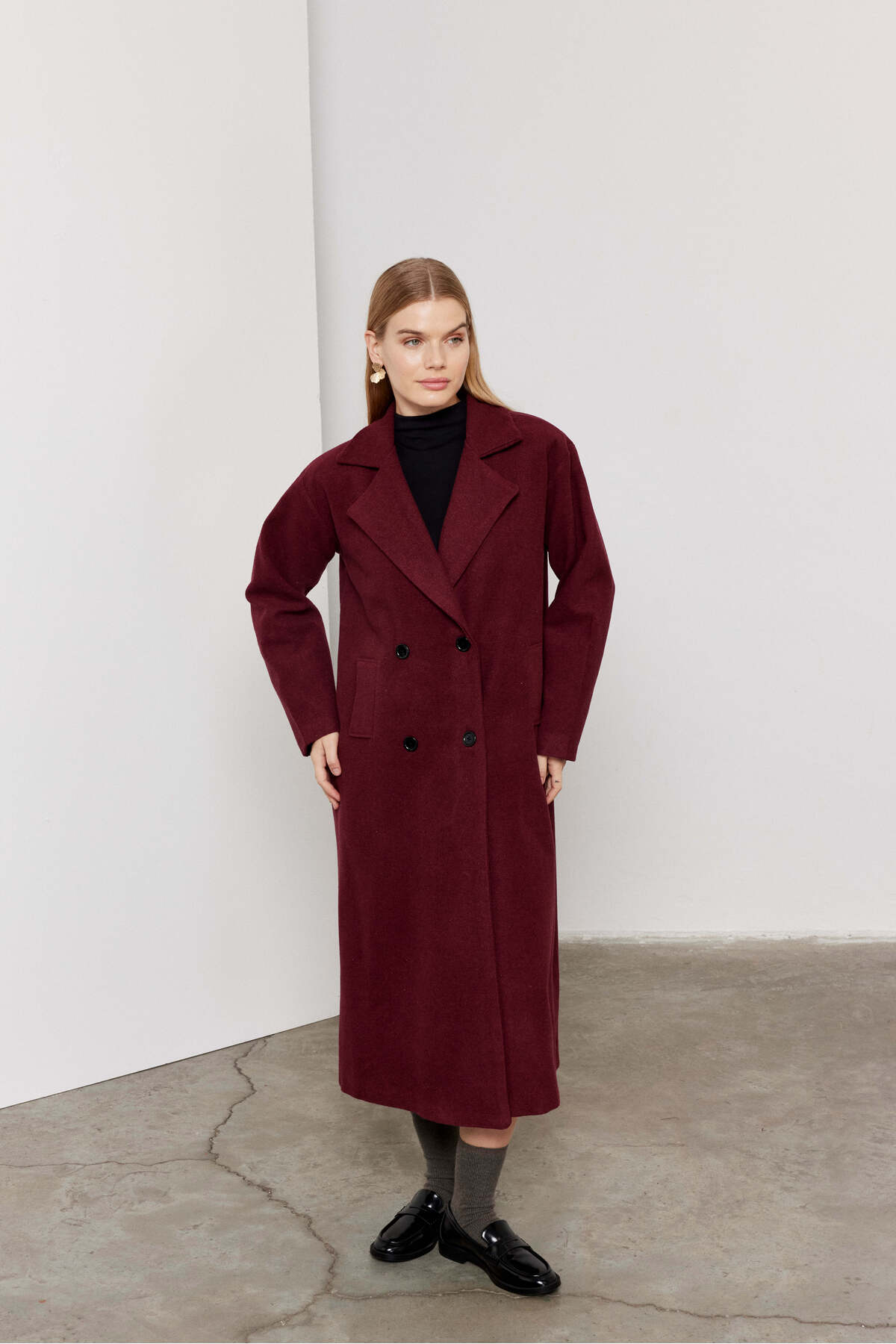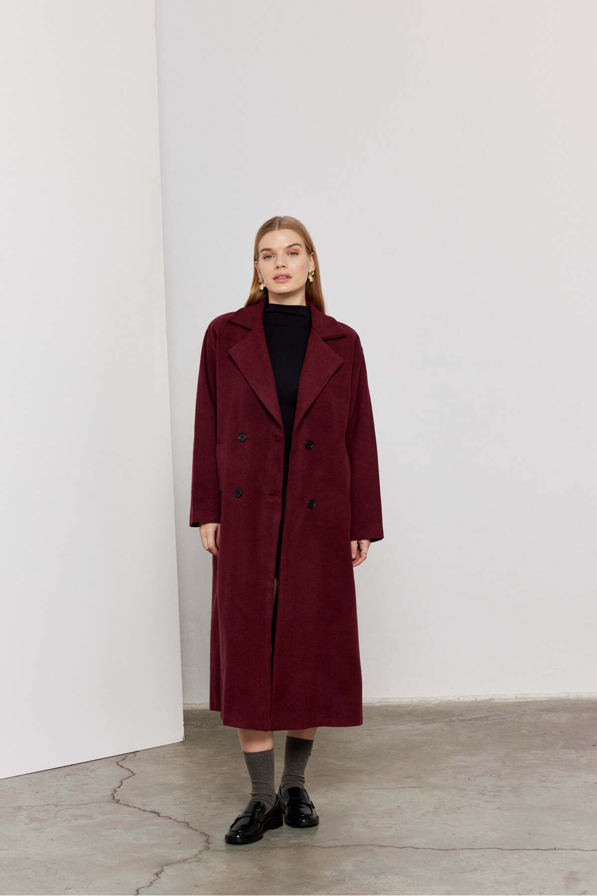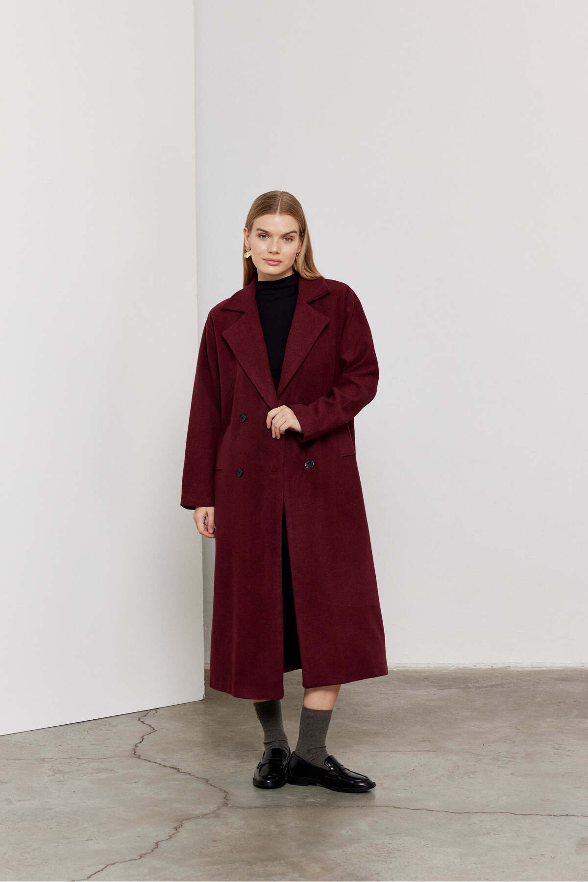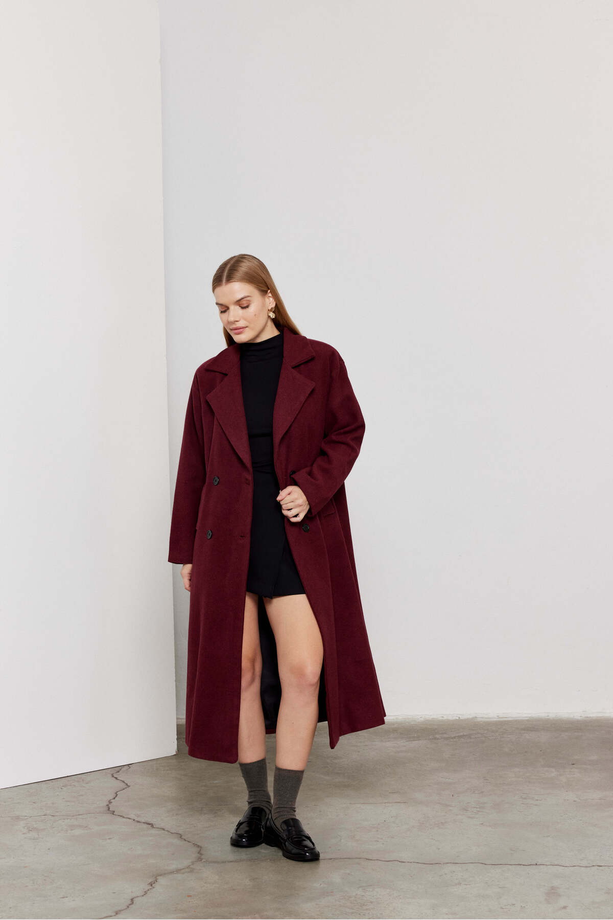 SevdeUgur Women's Long Oversize Coat Lined Claret Red / Sevde Ugur | ByTR