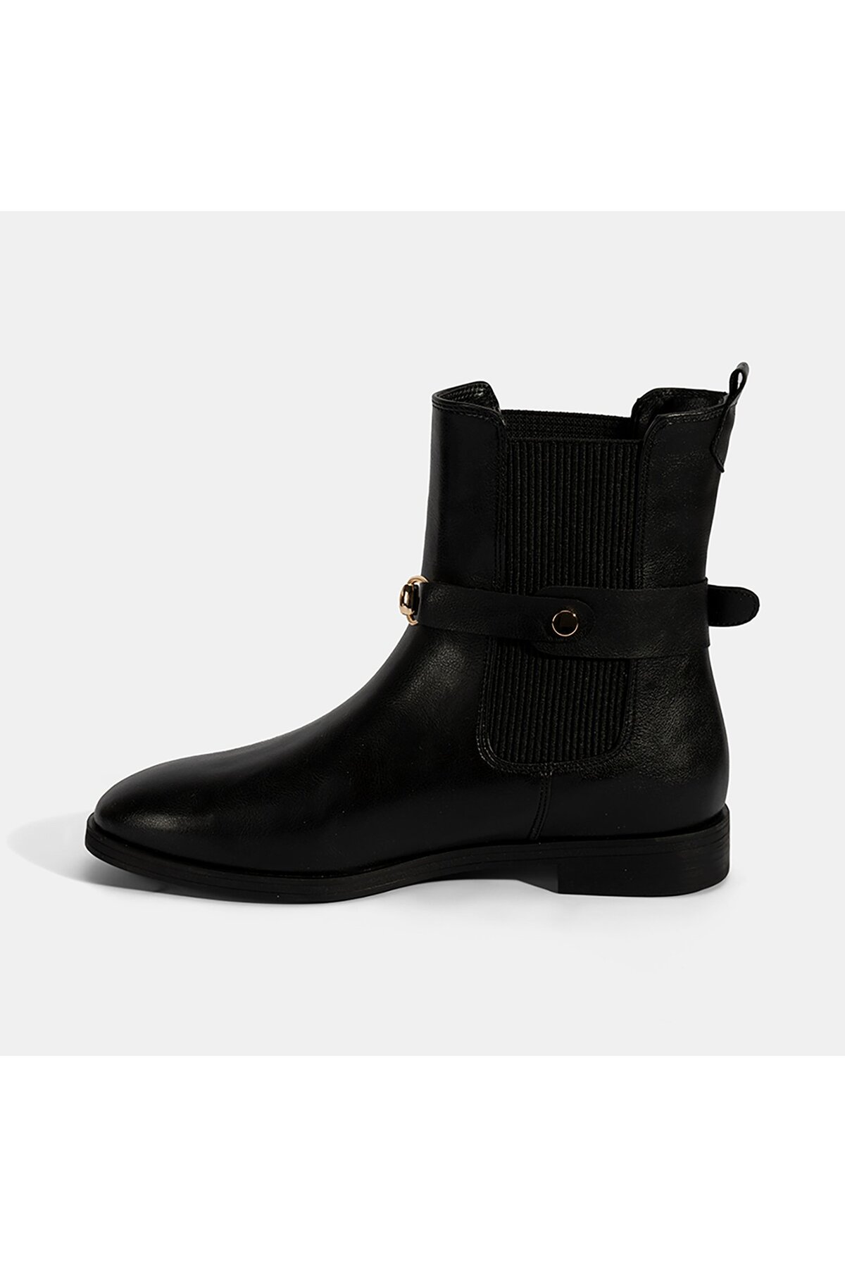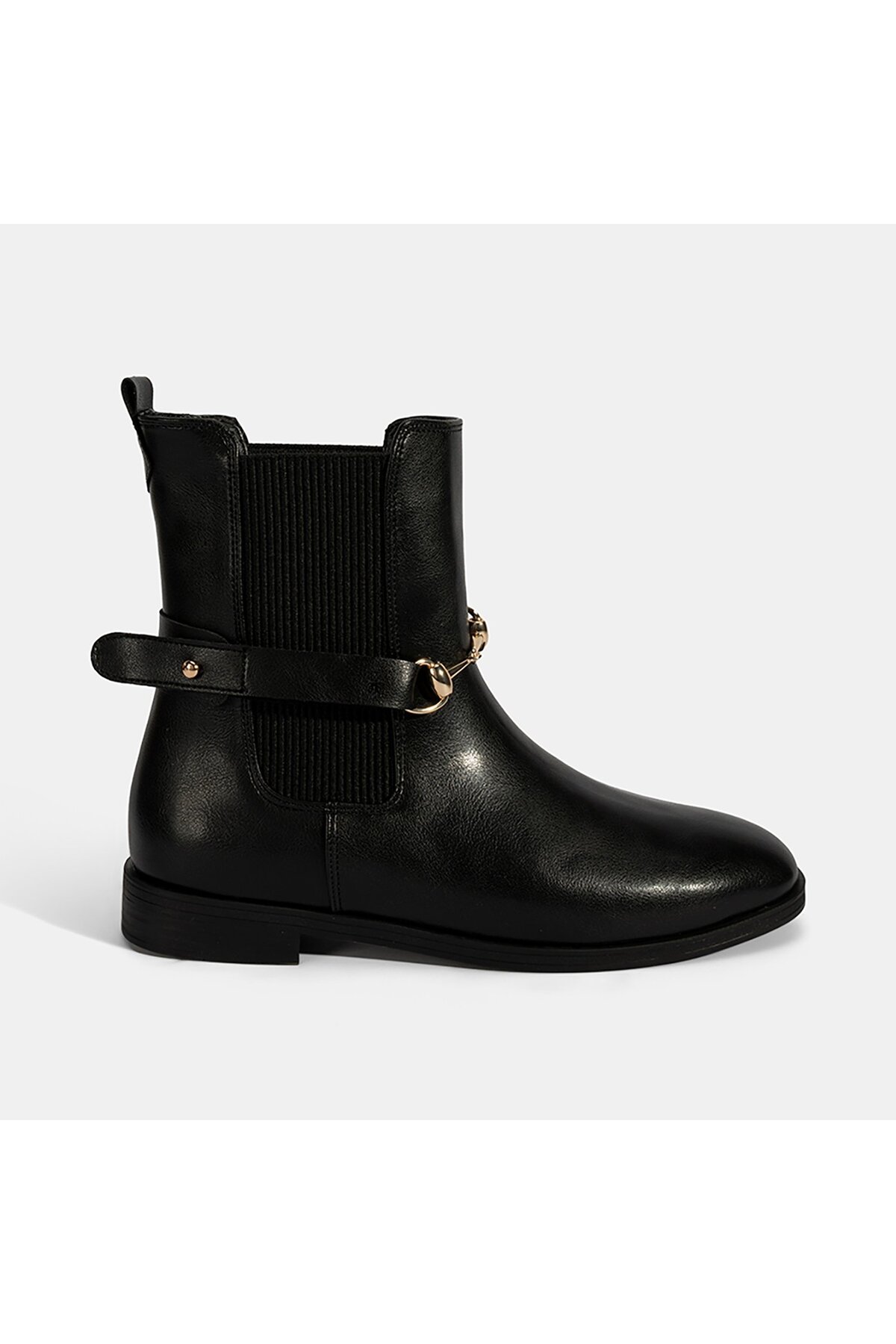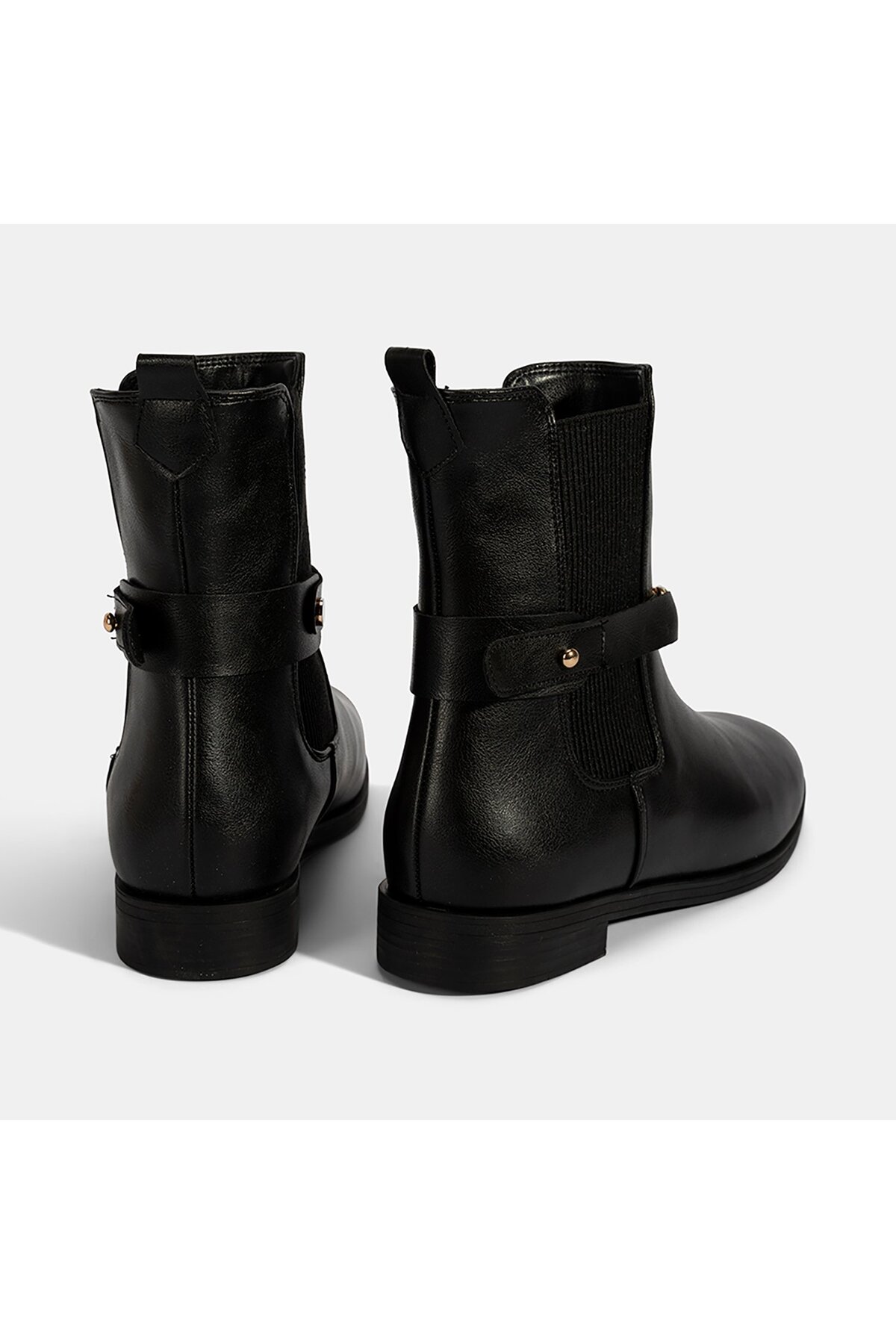 Women's boots made of PU material with hot textile lining, textile inner sole, thermo sole, metal accessory detail and elastic.