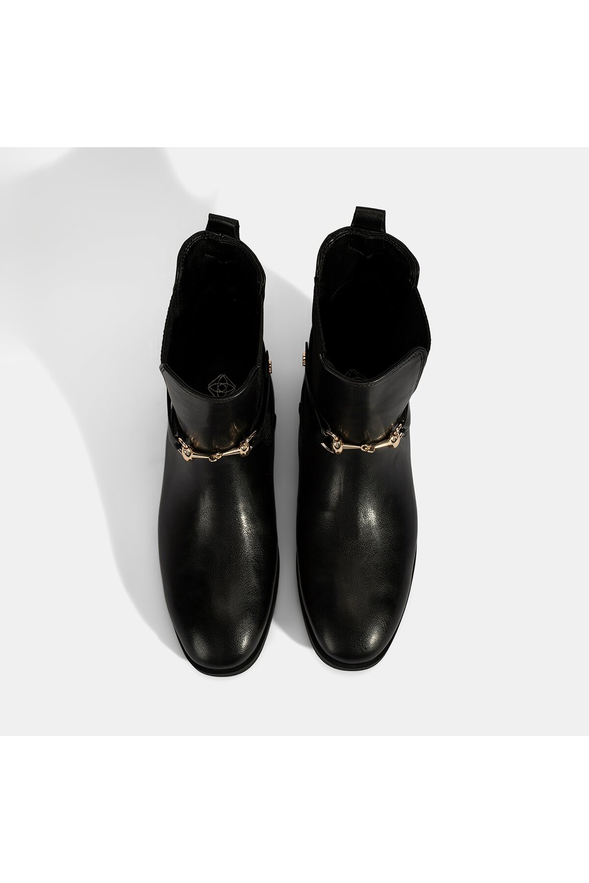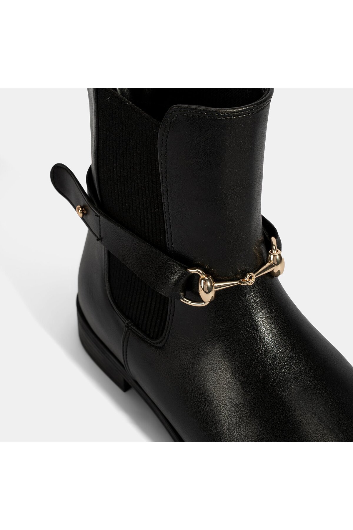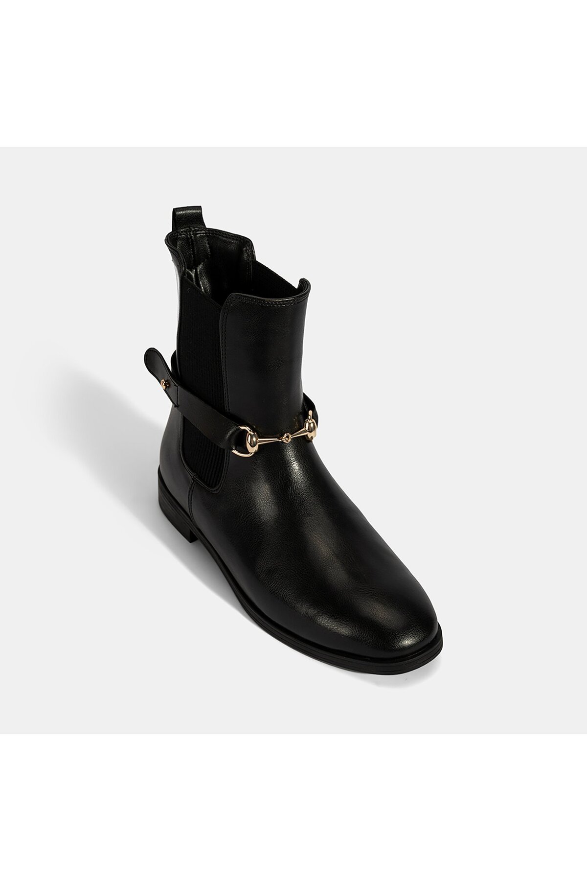 Women's boots made of PU material with hot textile lining, textile inner sole, thermo sole, metal accessory detail and elastic.