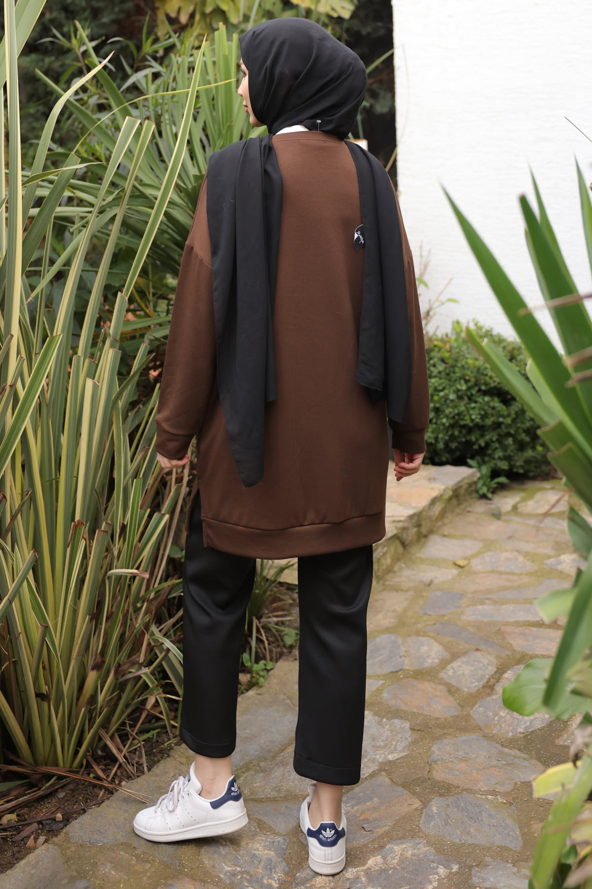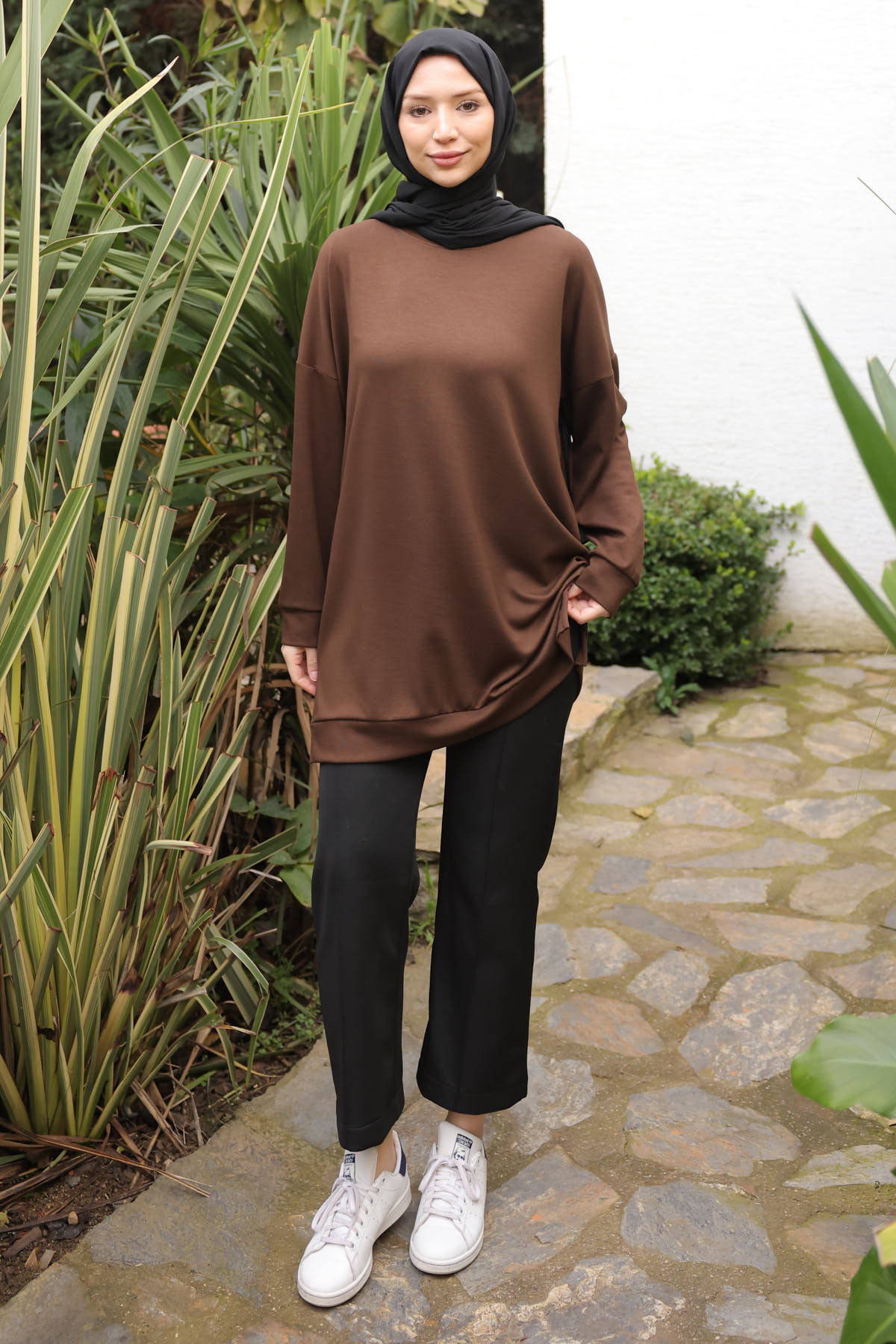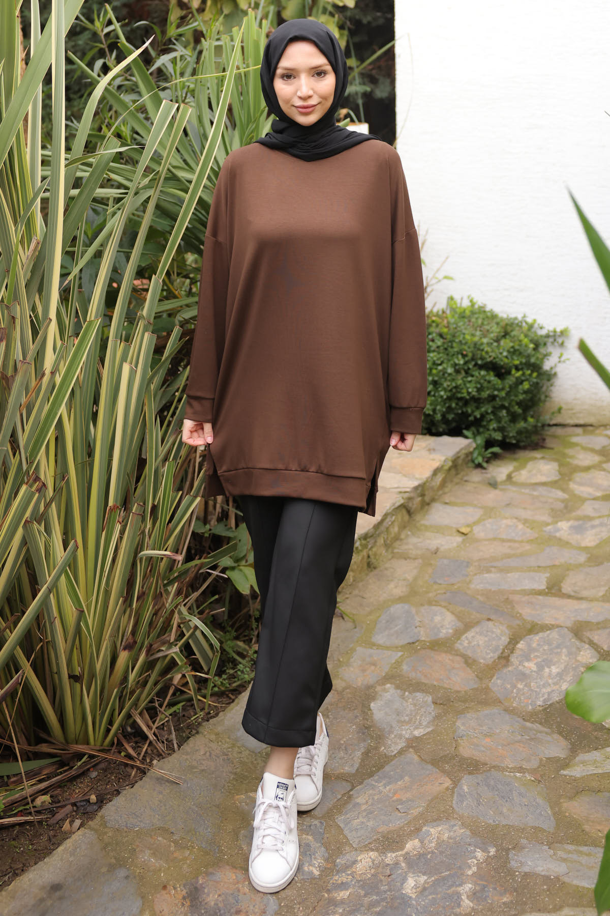 İmajButik Brown Crew Neck Modal Tunic | ByTR