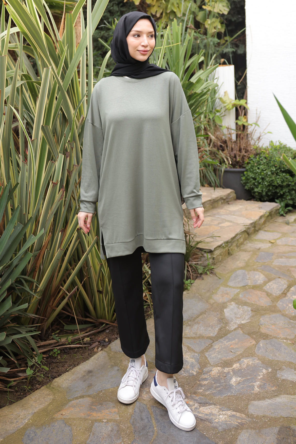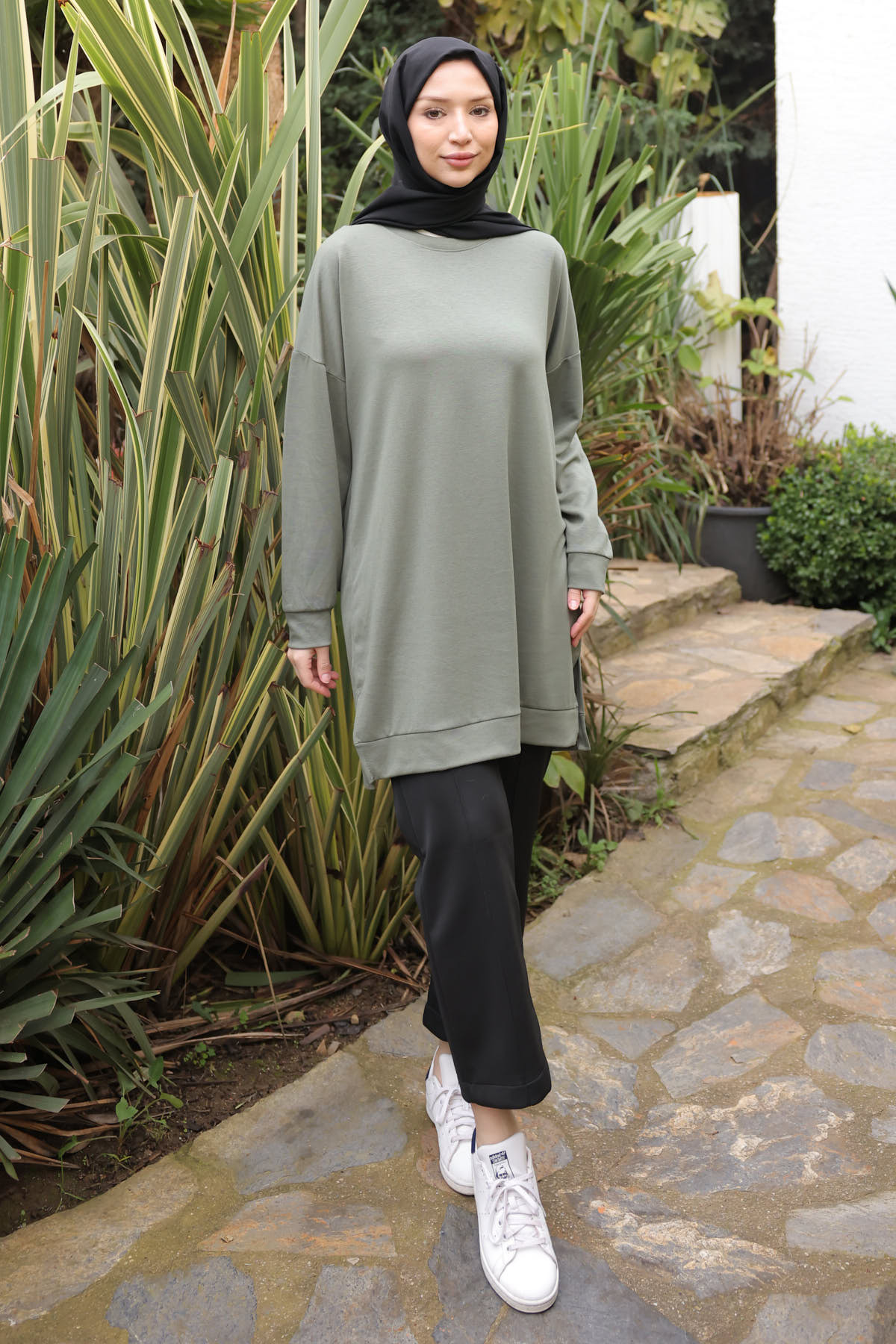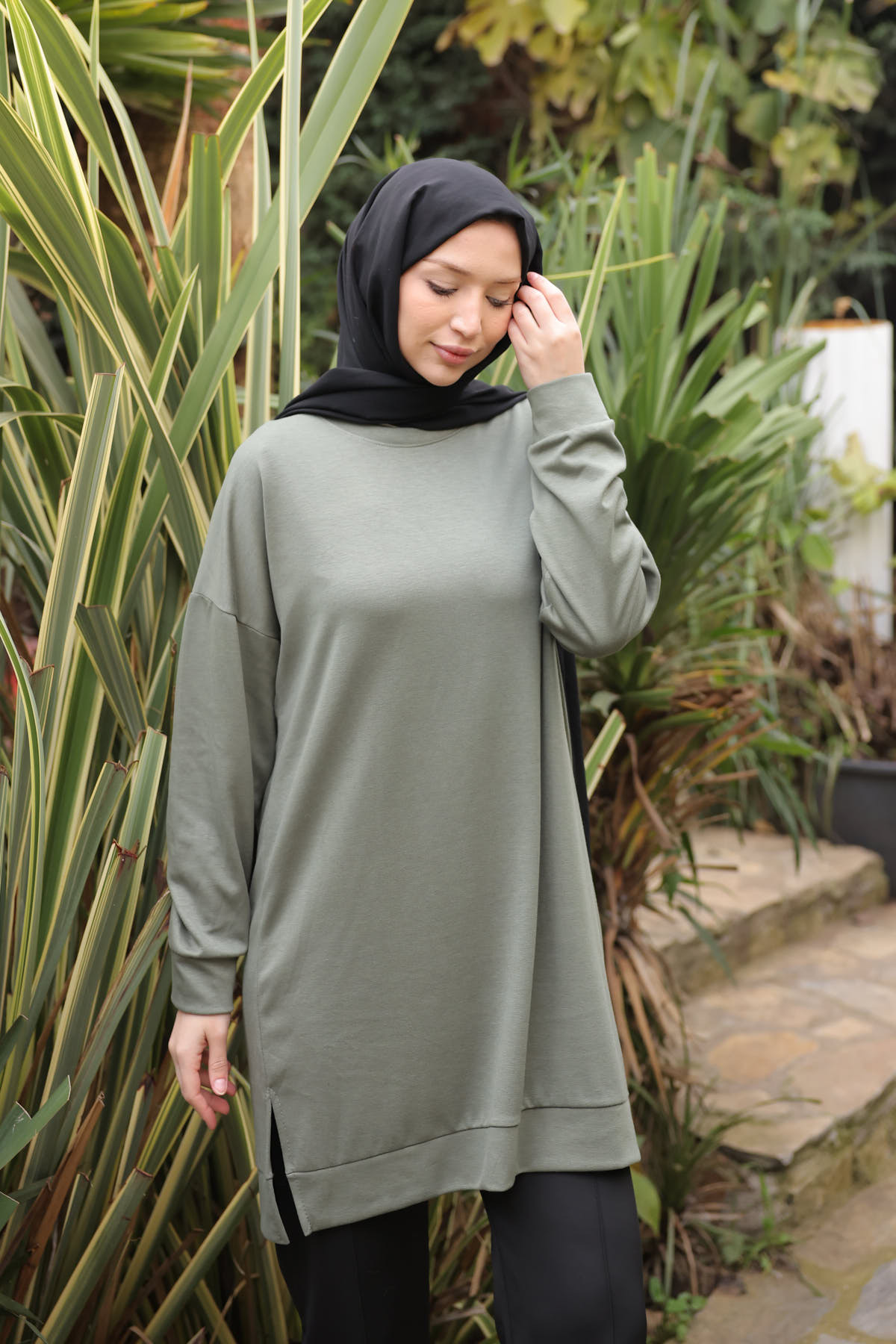 İmajButik Khaki Crew Neck Modal Tunic | ByTR