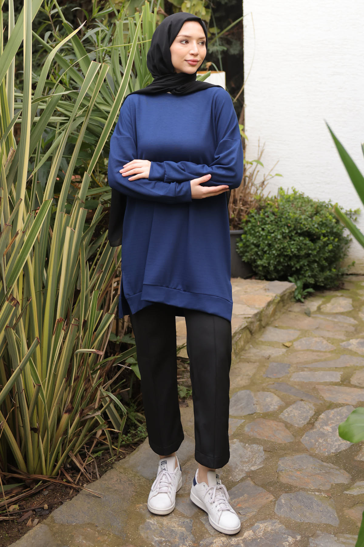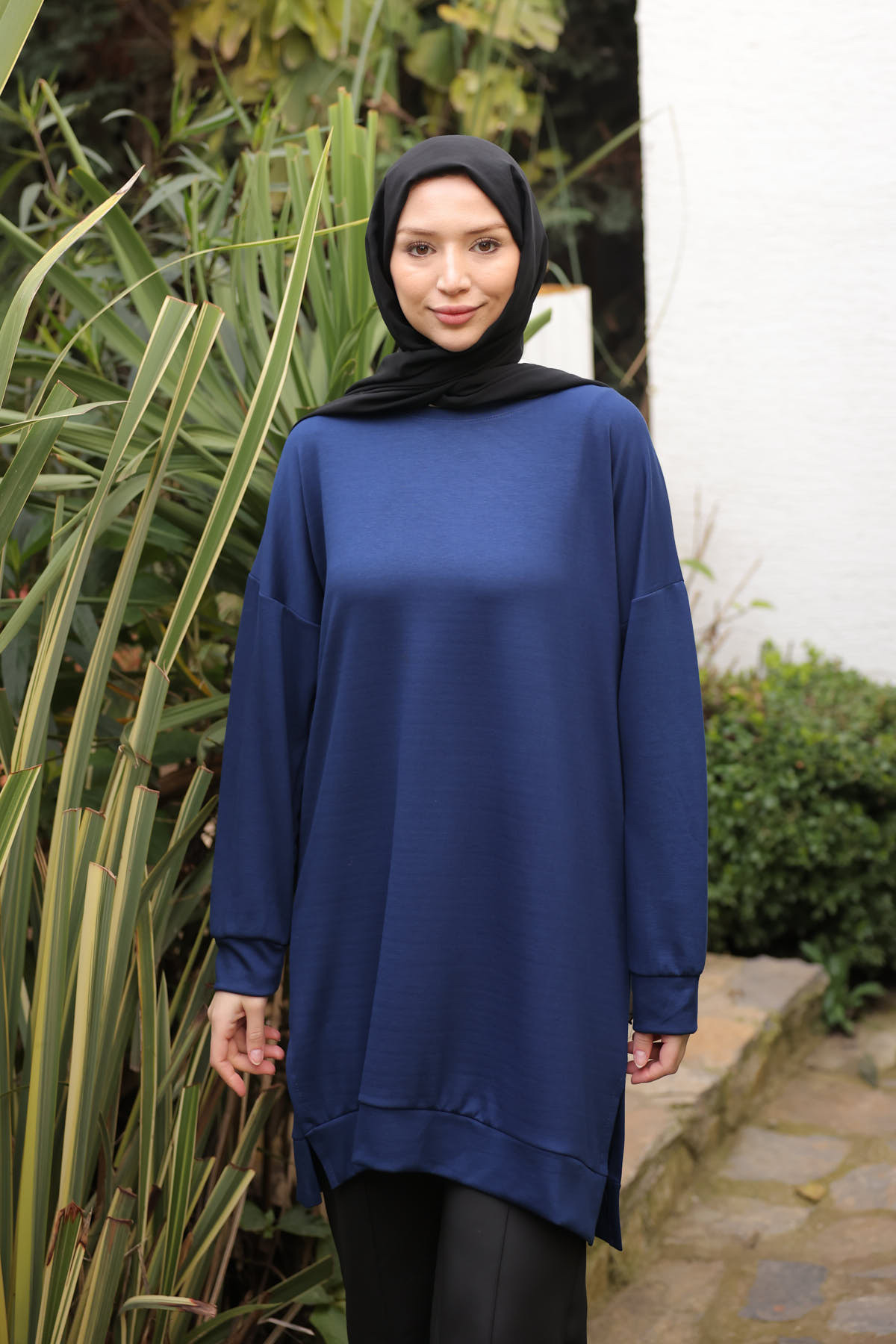 İmajButik Navy Blue Crew Neck Modal Tunic | ByTR