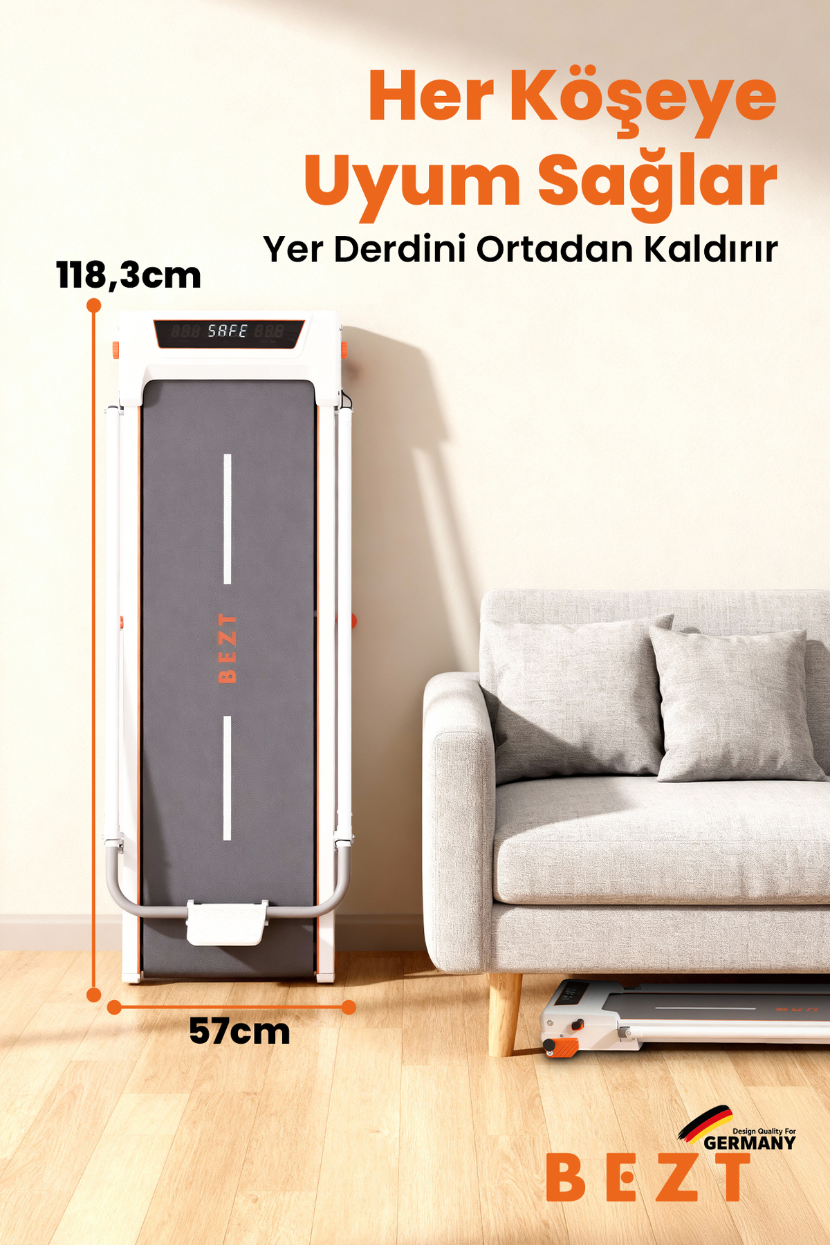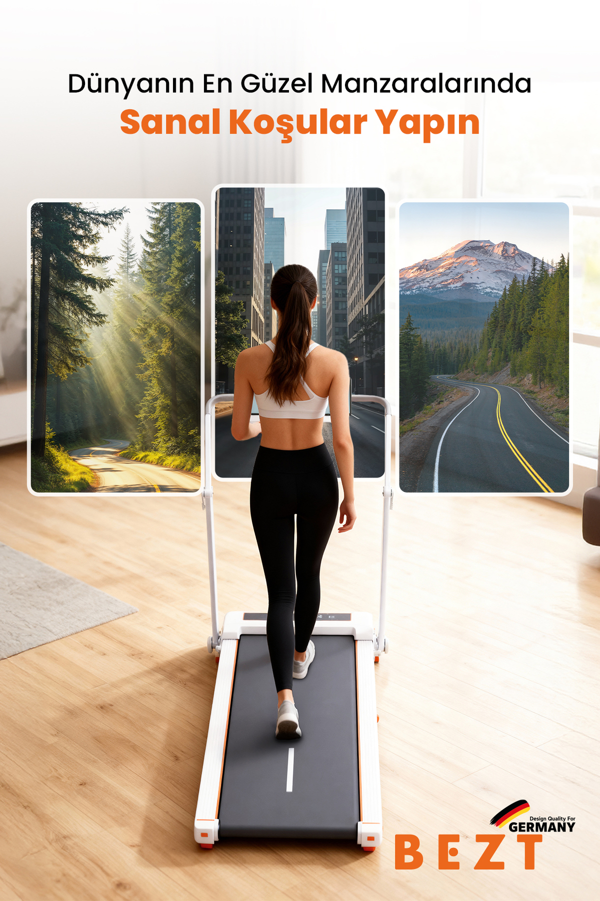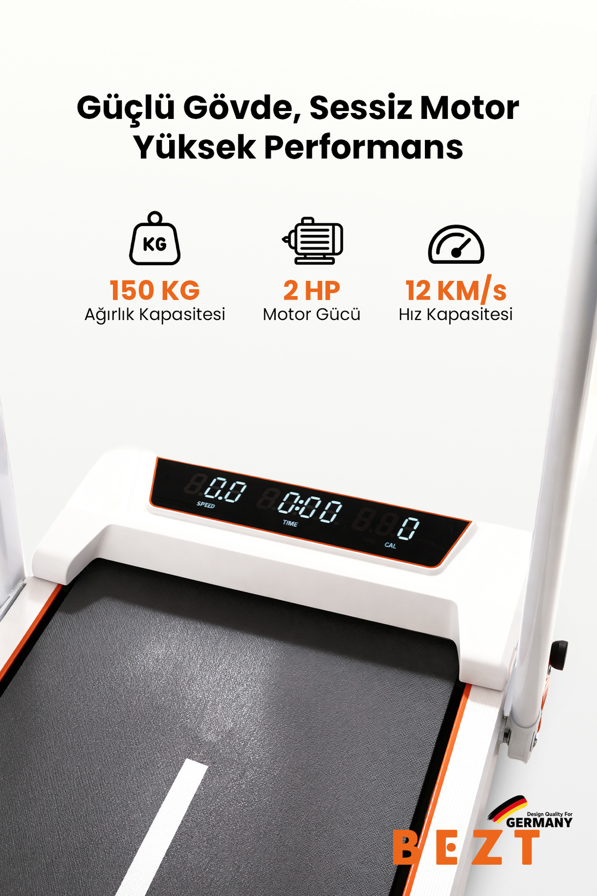 ✅ Featured Features: 2 HP Powerful Engine: Quiet, durable and high-performance use 150 kg Carrying Capacity: Robust and safe structure 12 km/h Speed Capacity: Ideal for walking, running and cardio Digital Indicator Display: Easily track speed, time, distance and calories Smart Control with Phone App: Can be used as a remote control Take virtual runs in the most beautiful landscapes of the world Race with other users in real-time racing mode 2-Stage Manual Slope: Adjust the exercise difficulty as you wish Adjustable Handle: Provides comfortable grip according to the user's height Foldable Compact Design: Saves space, easy to carry Upright Position Feature: Can stand upright when folded, takes up little space Lightweight and Portable: Even female users can move comfortably at home Emergency Safety Lanyard: Sudden stop system for maximum safety Long-lasting Use: Years of high usage with durable engine and body 🔸 structure Advantages: Professional running and walking experience at home Ergonomic structure easy to carry for female users Space saving thanks to foldable and upright design Interactive and motivating sports experience with smartphone app Comfortable exercise environment with quiet engine system Powerful, compact and smart: Sport is now at home with BEZT! 💬 Why BEZT? BEZT Smart Treadmill,