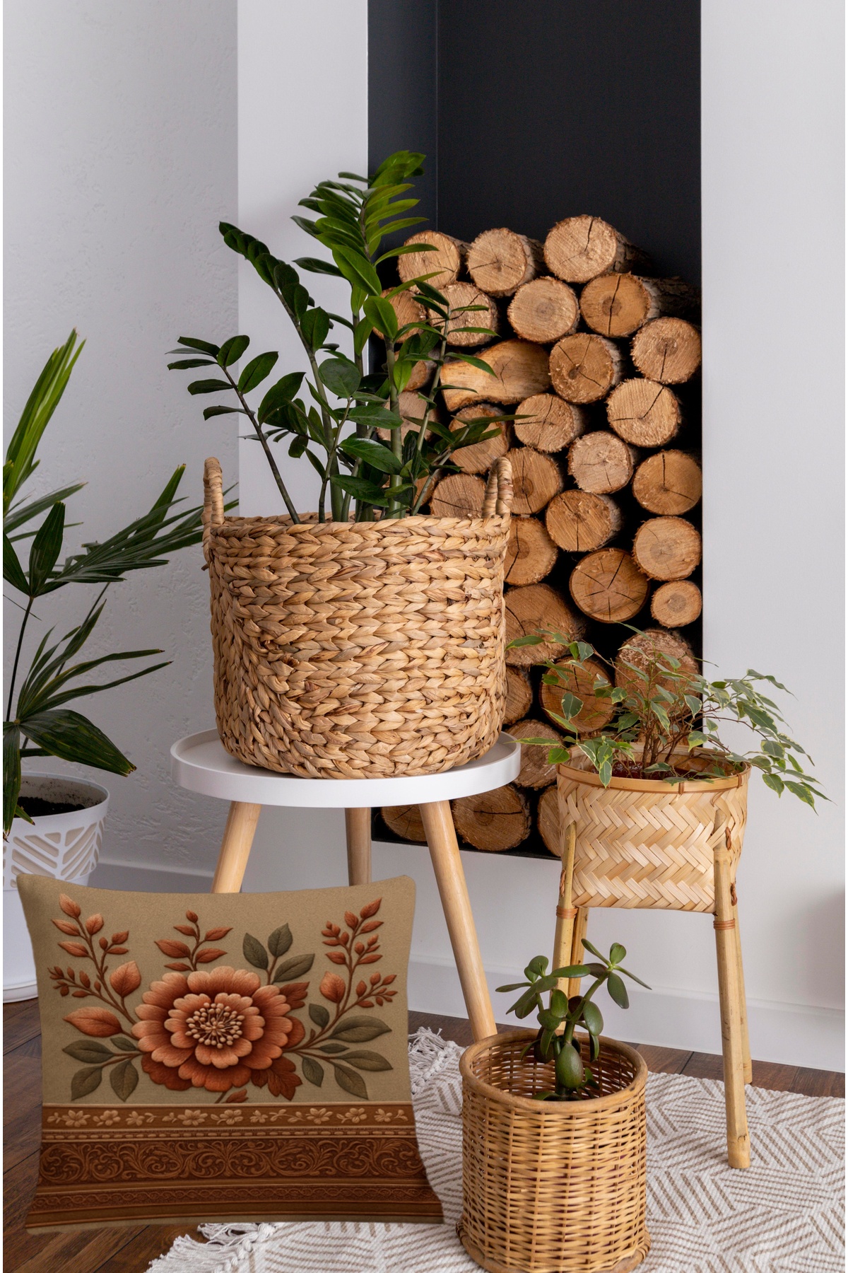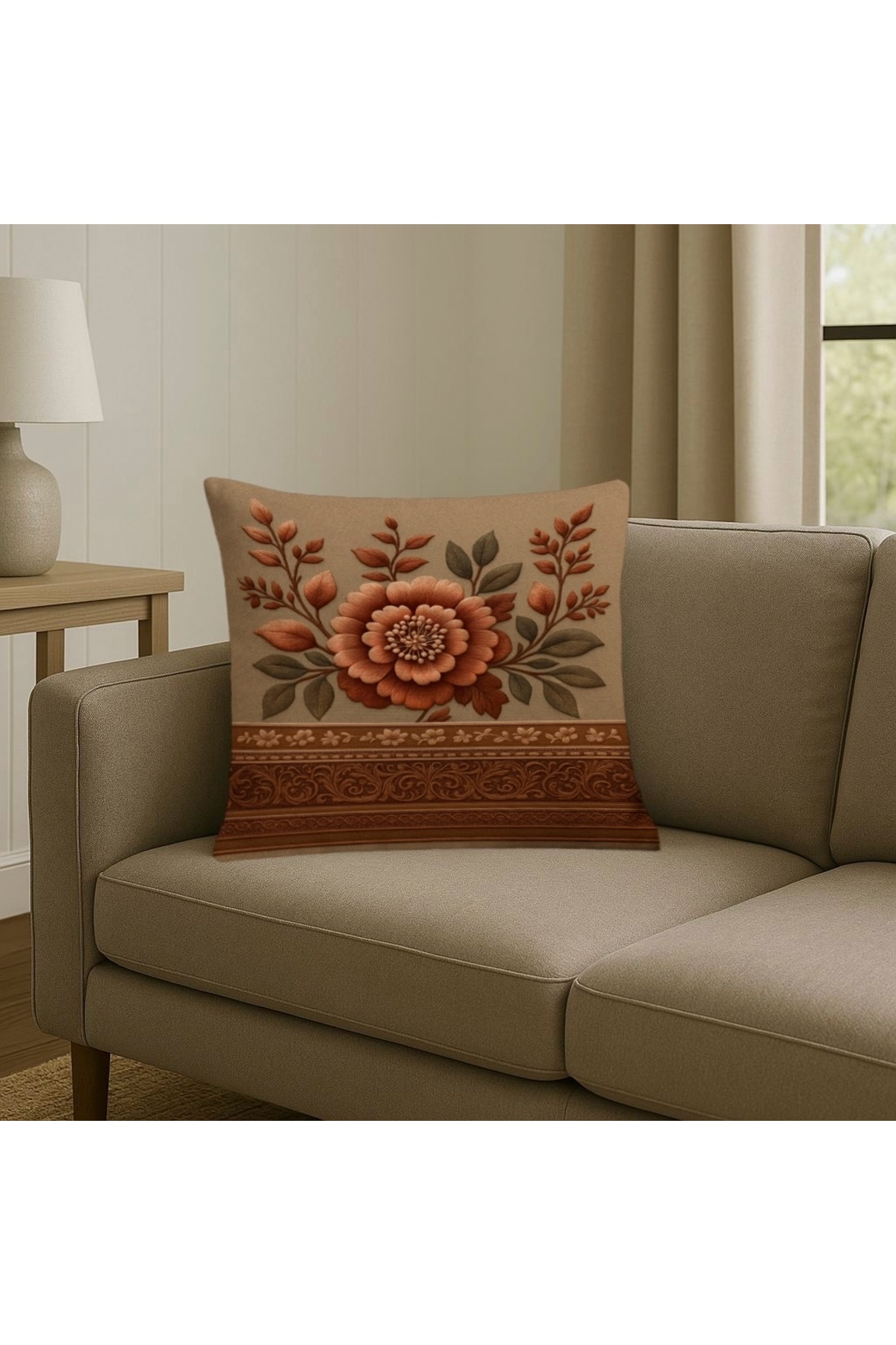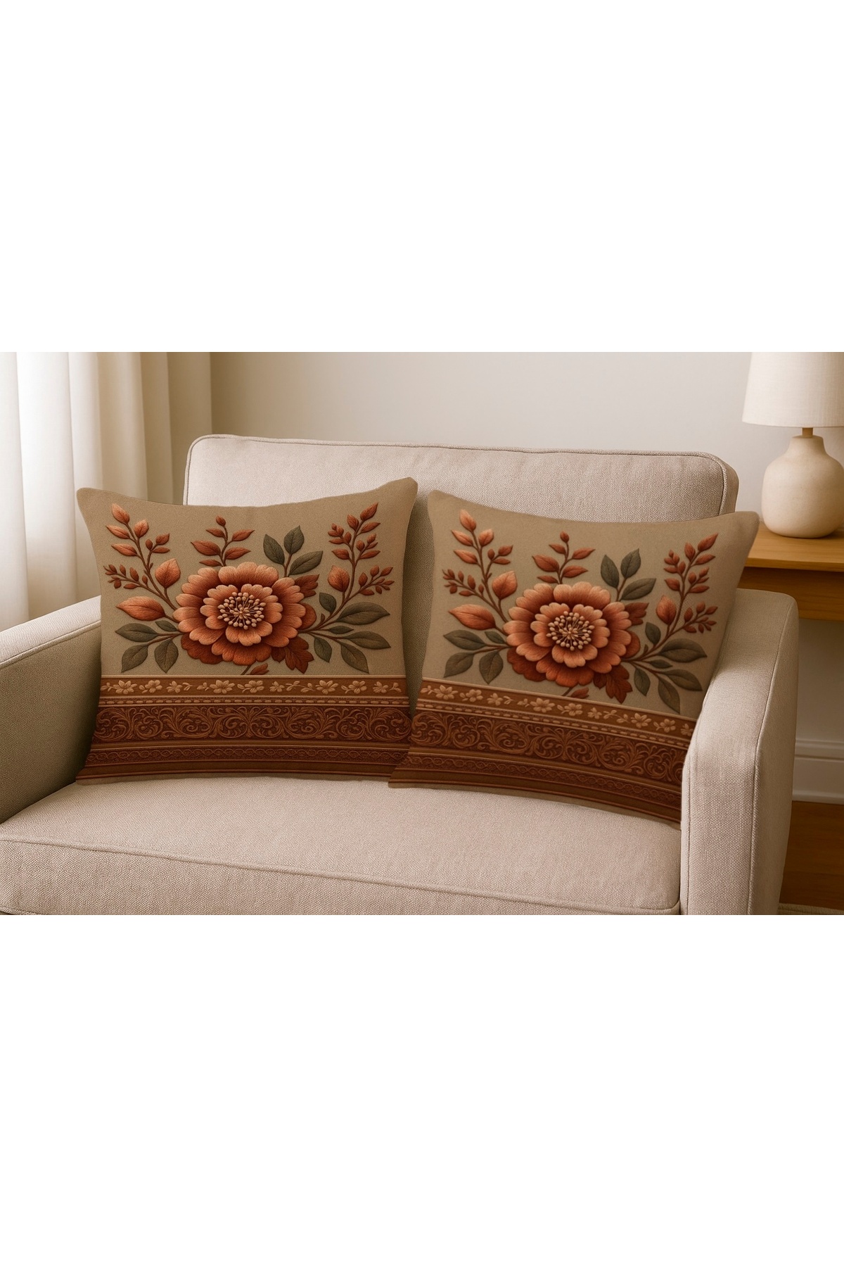 Offering a decorative touch with floral patterns in brown tones, this pillowcase adds a warm and natural atmosphere to your space.