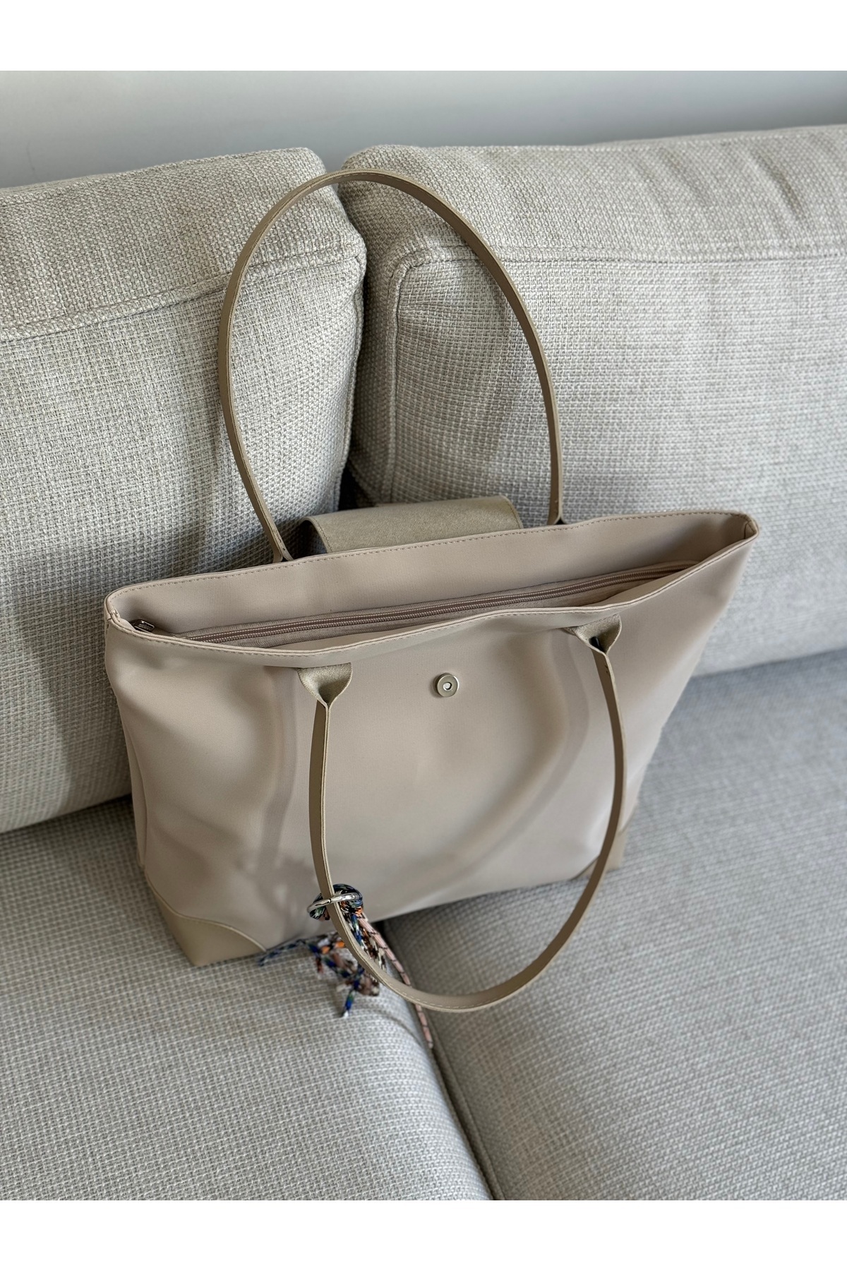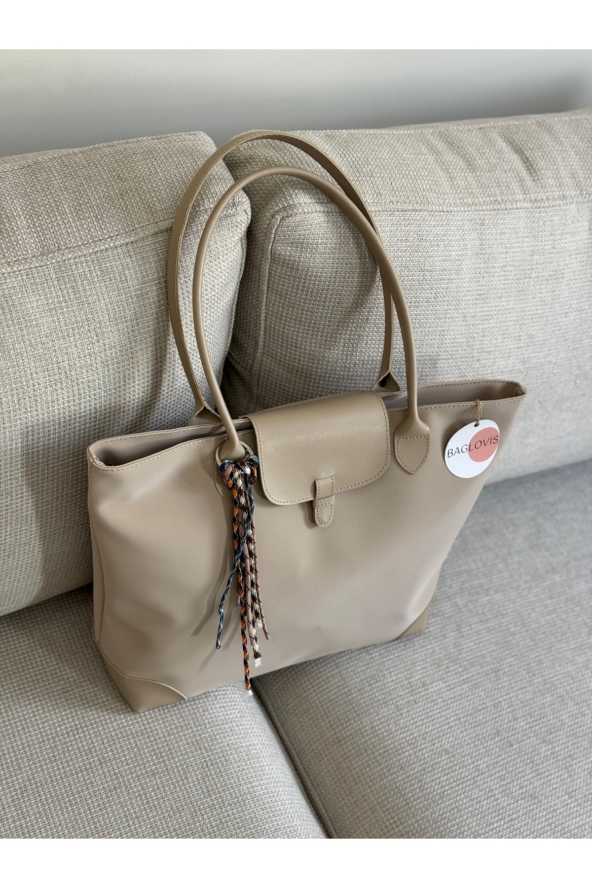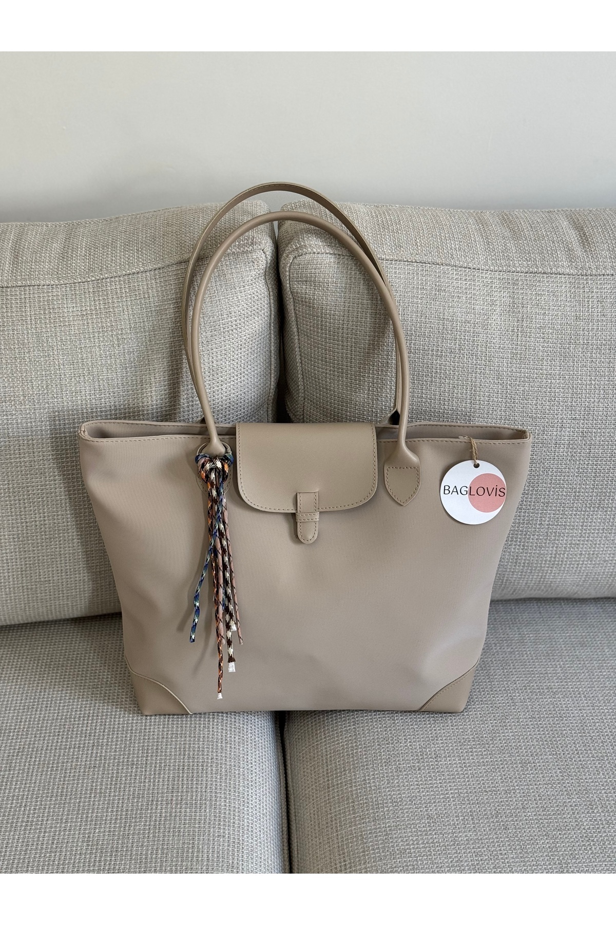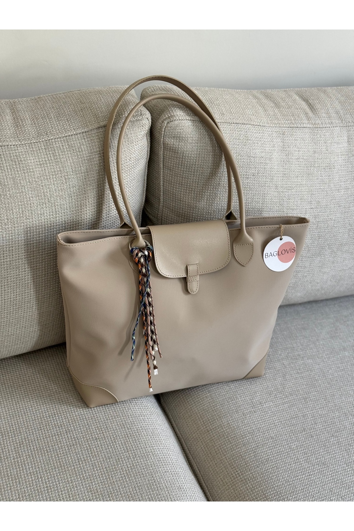 BAGLOVİS CHARM DETAILED OVERSIZED MINK TOTE BAG EN40 BOY30 | ByTR