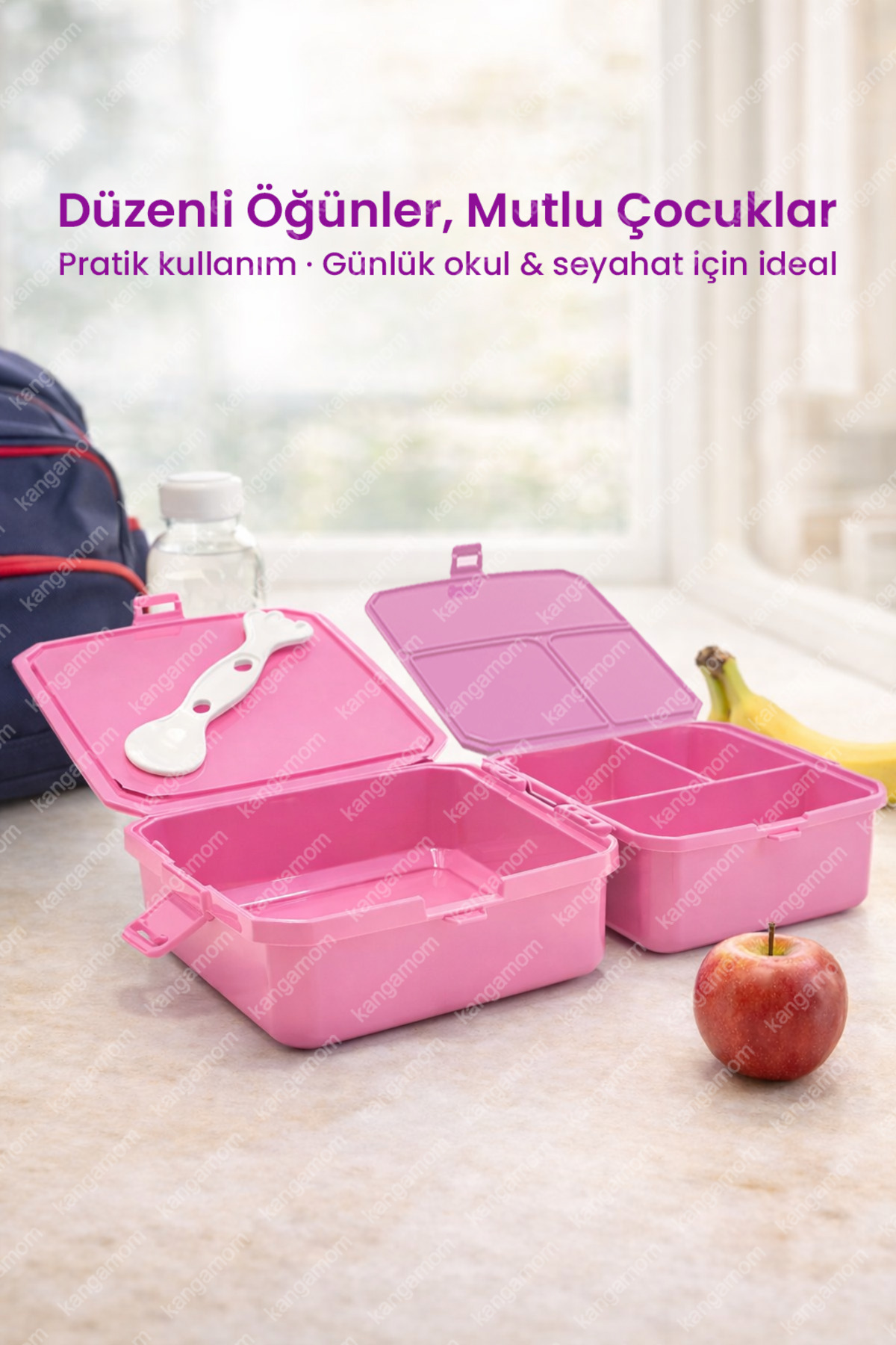 M&L LUNCH BOX 4 Compartment Feeding Box - Practical School Feeding Container with Spoon and Fork Set | ByTR