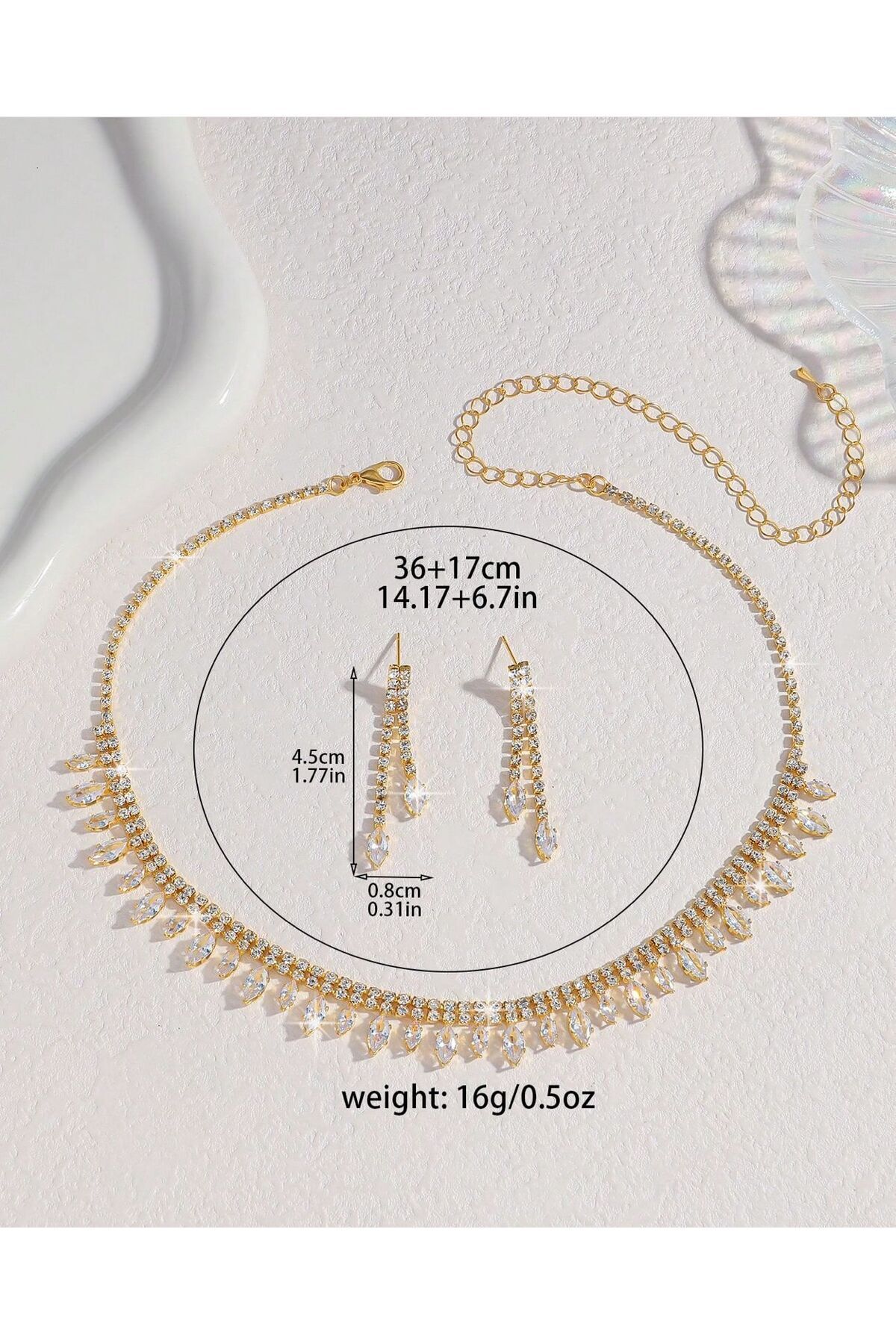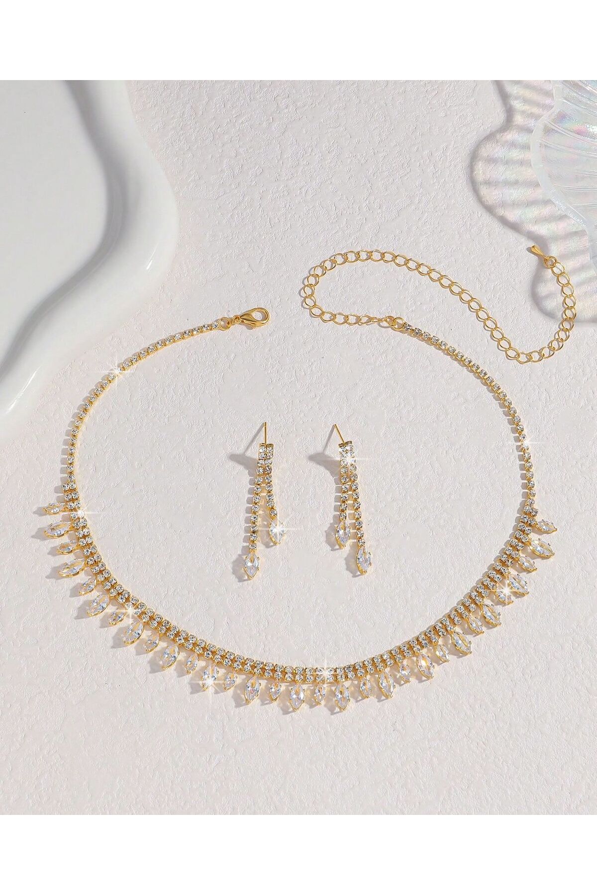 This jewelry, which is offered as a necklace and earring set, stands out as an ideal gift option on special occasions such as weddings and engagements.