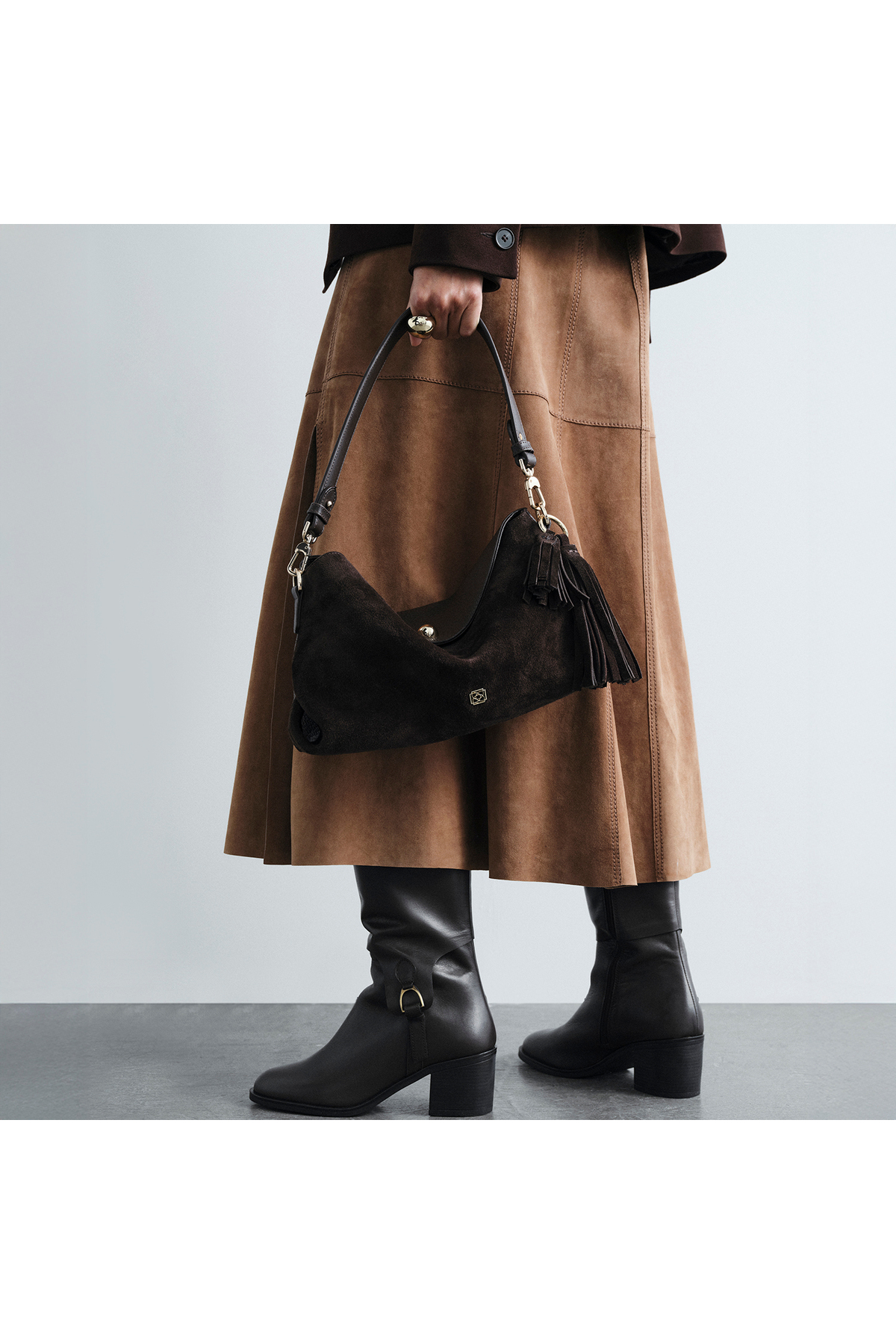 It has a durable and stylish appearance with its high-quality PU material body and calfskin suede details.