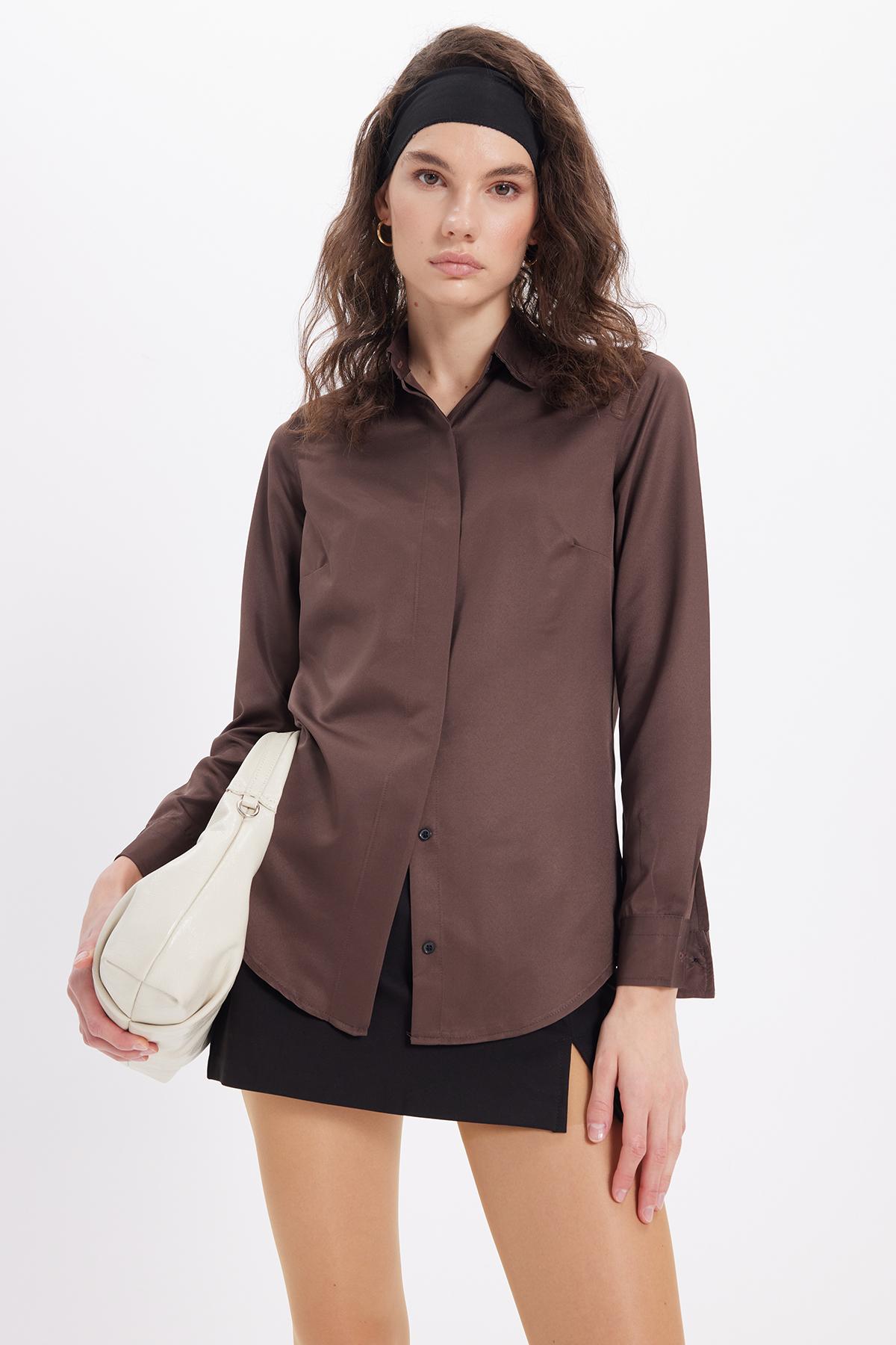 Plain textured pattern and pocketless design create a minimalist and modern style