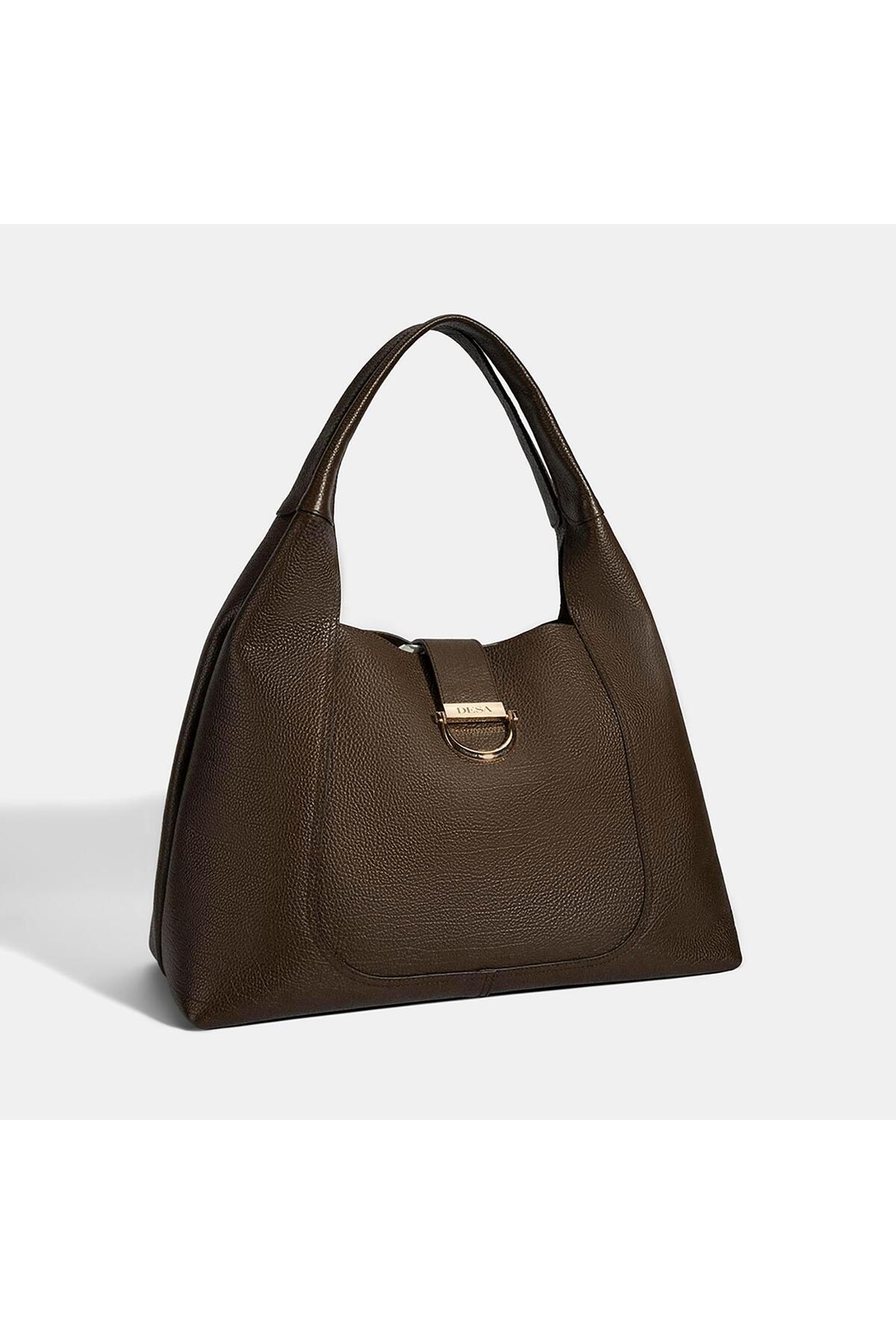 It is a leather women's shoulder bag.