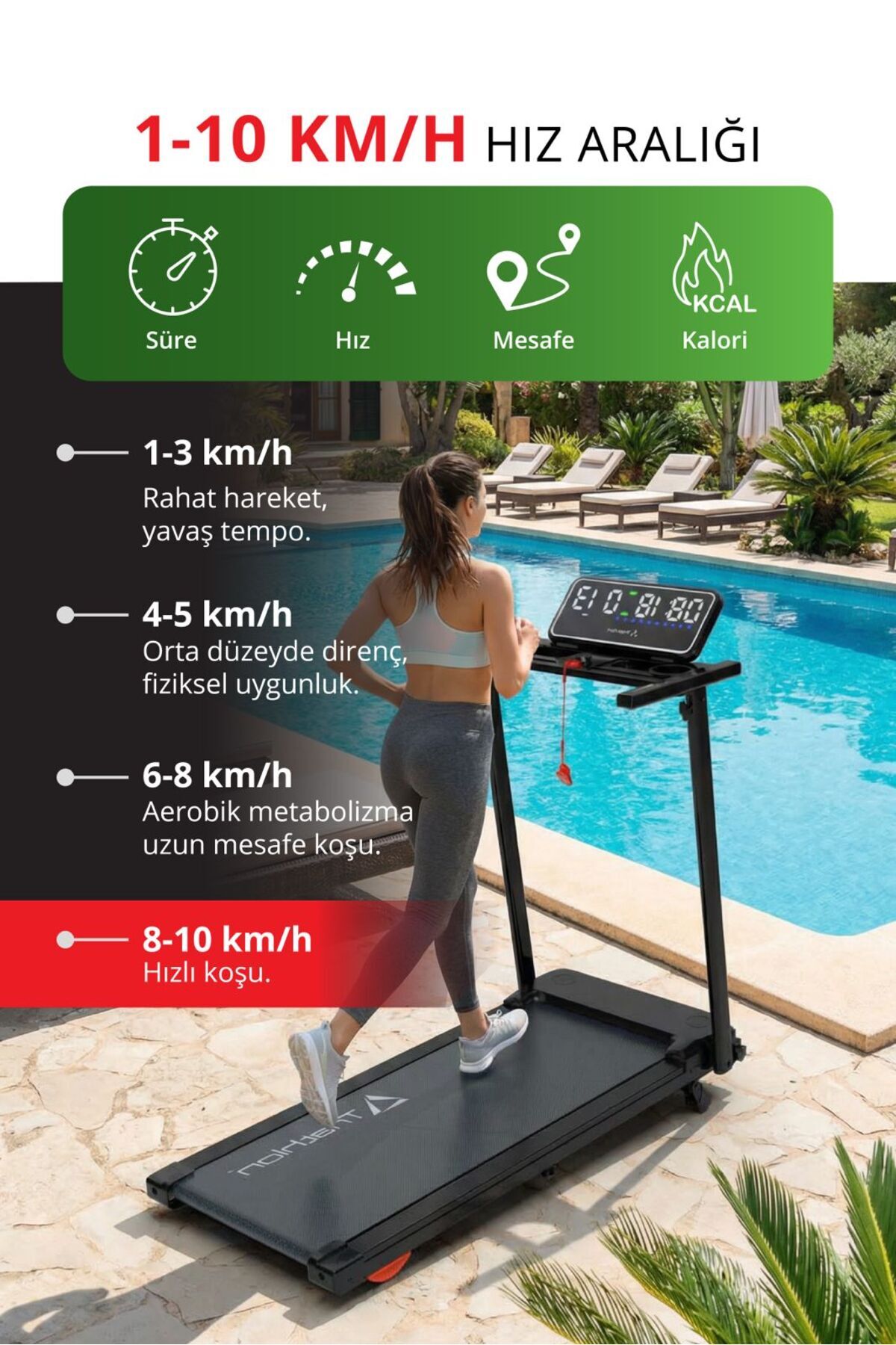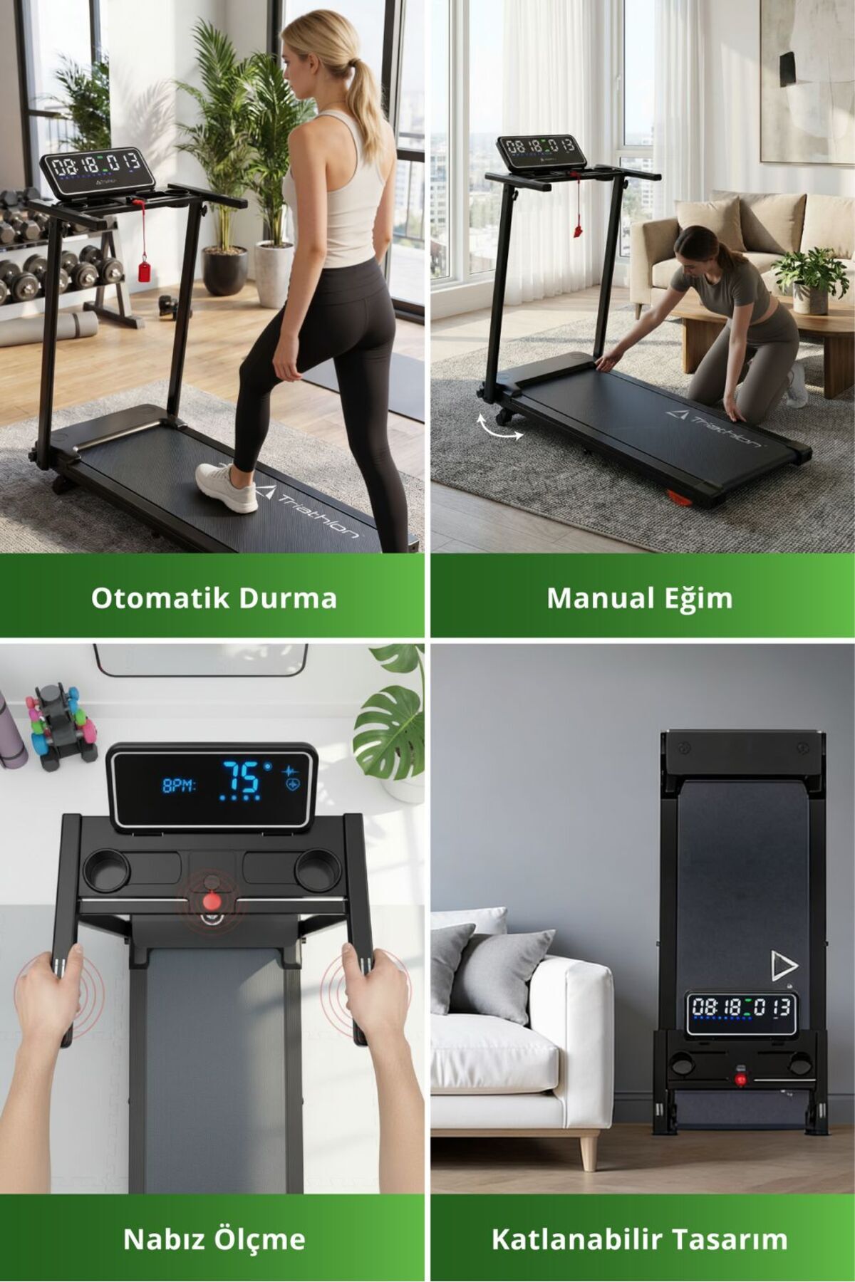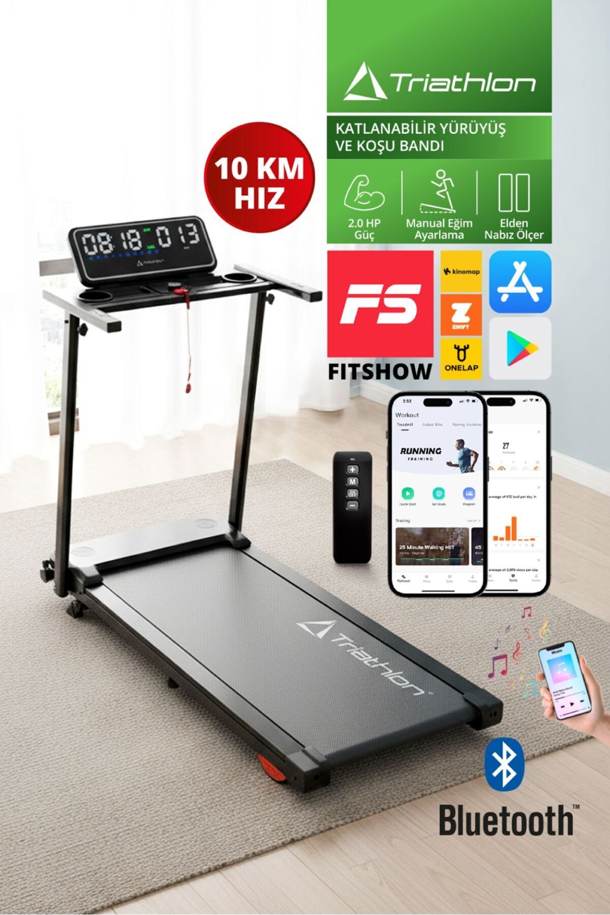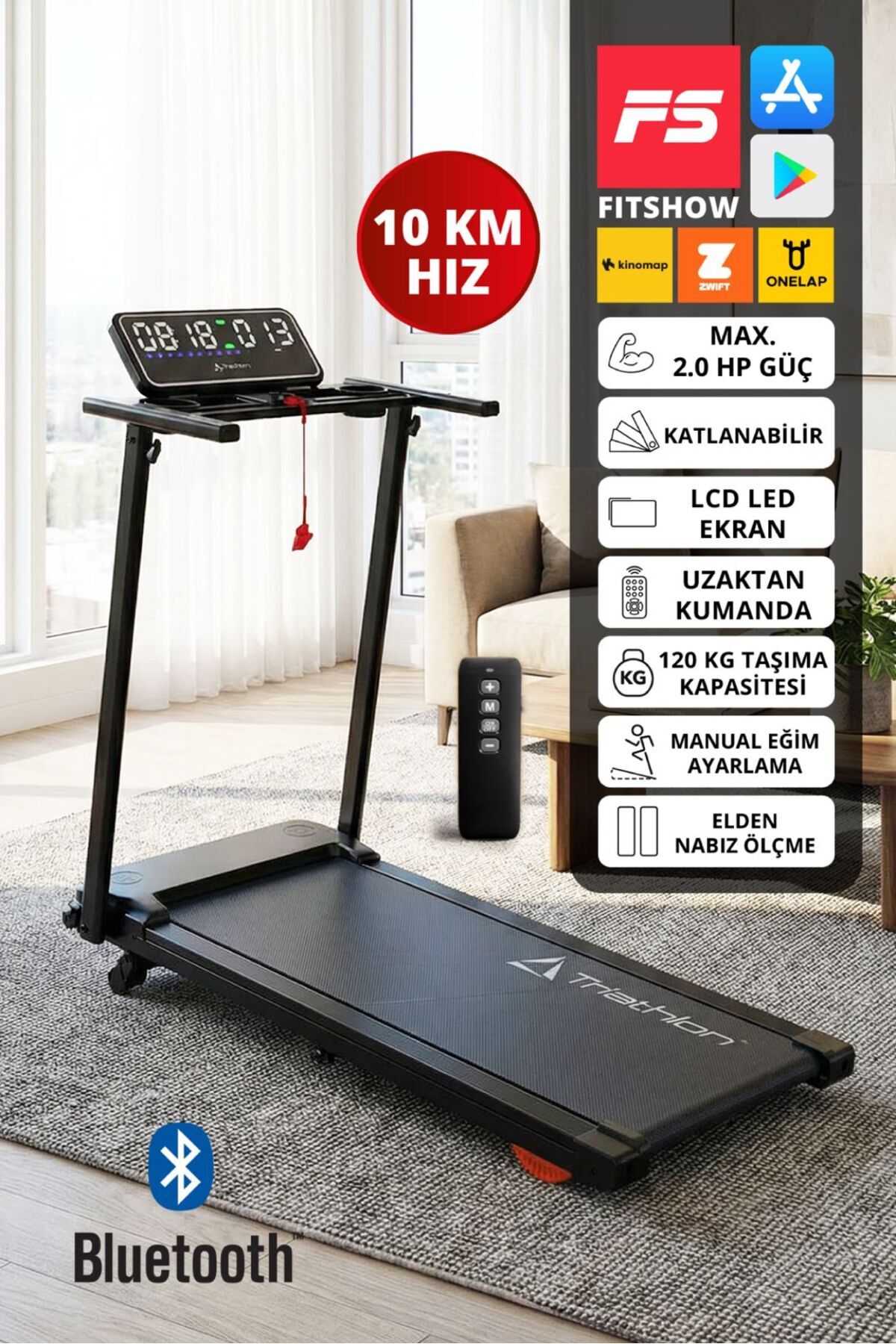 Triathlon T-229 Foldable Treadmill | 2 HP | 10 km/h | Pulse Meter | Emergency Bluetooth LCD 120 kg | ByTR