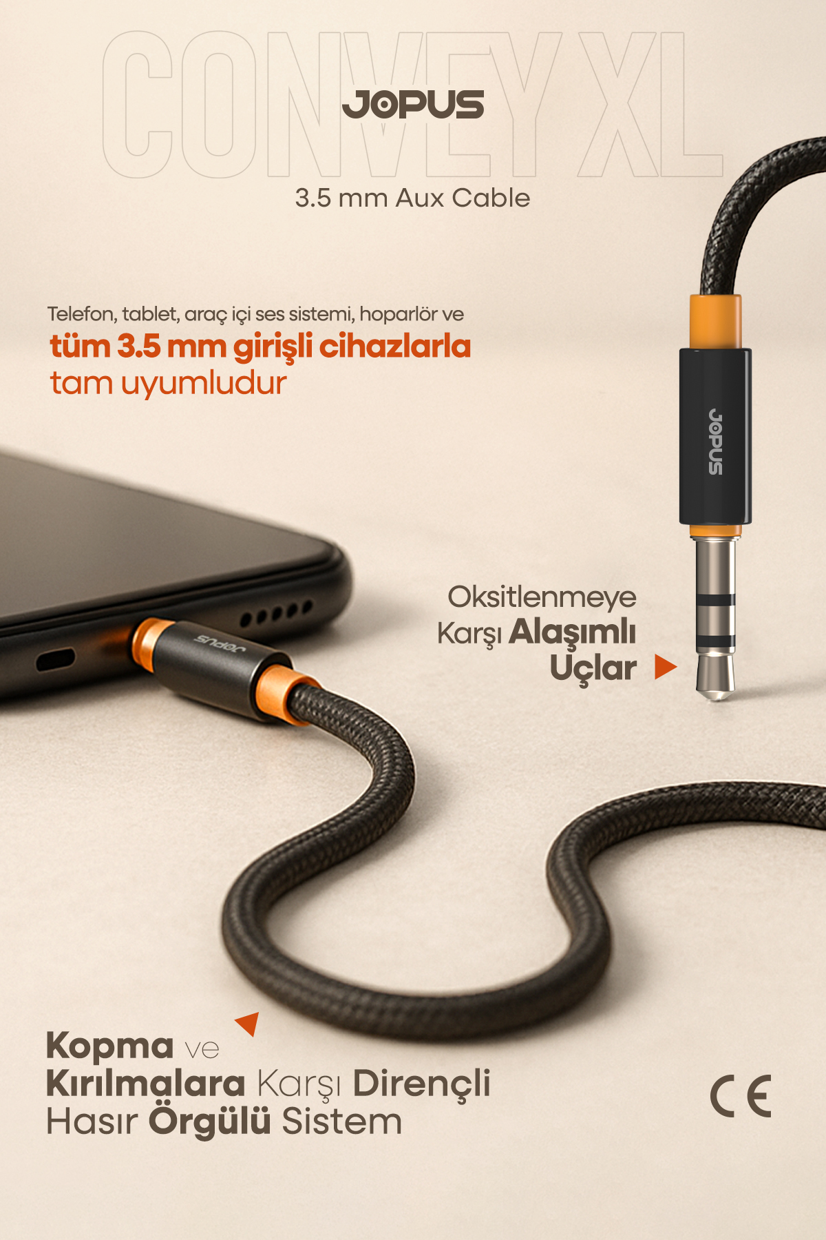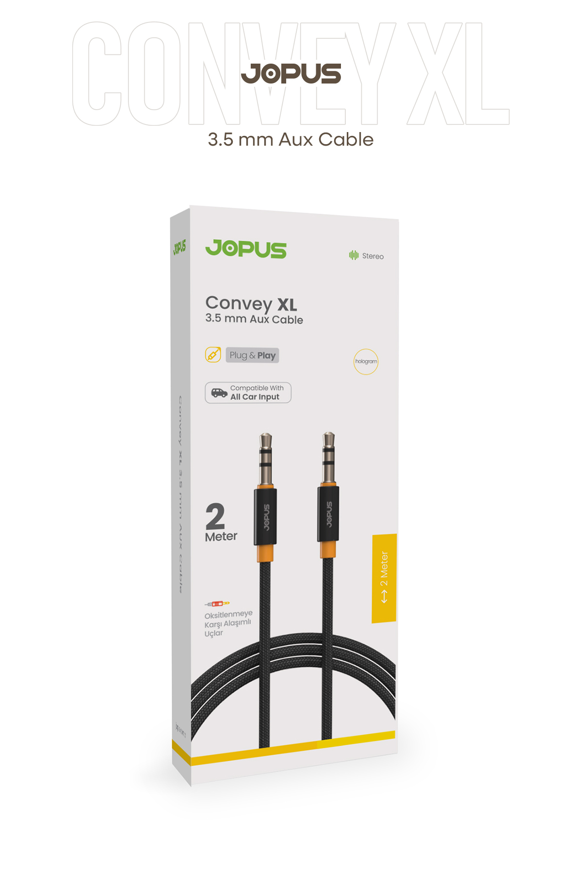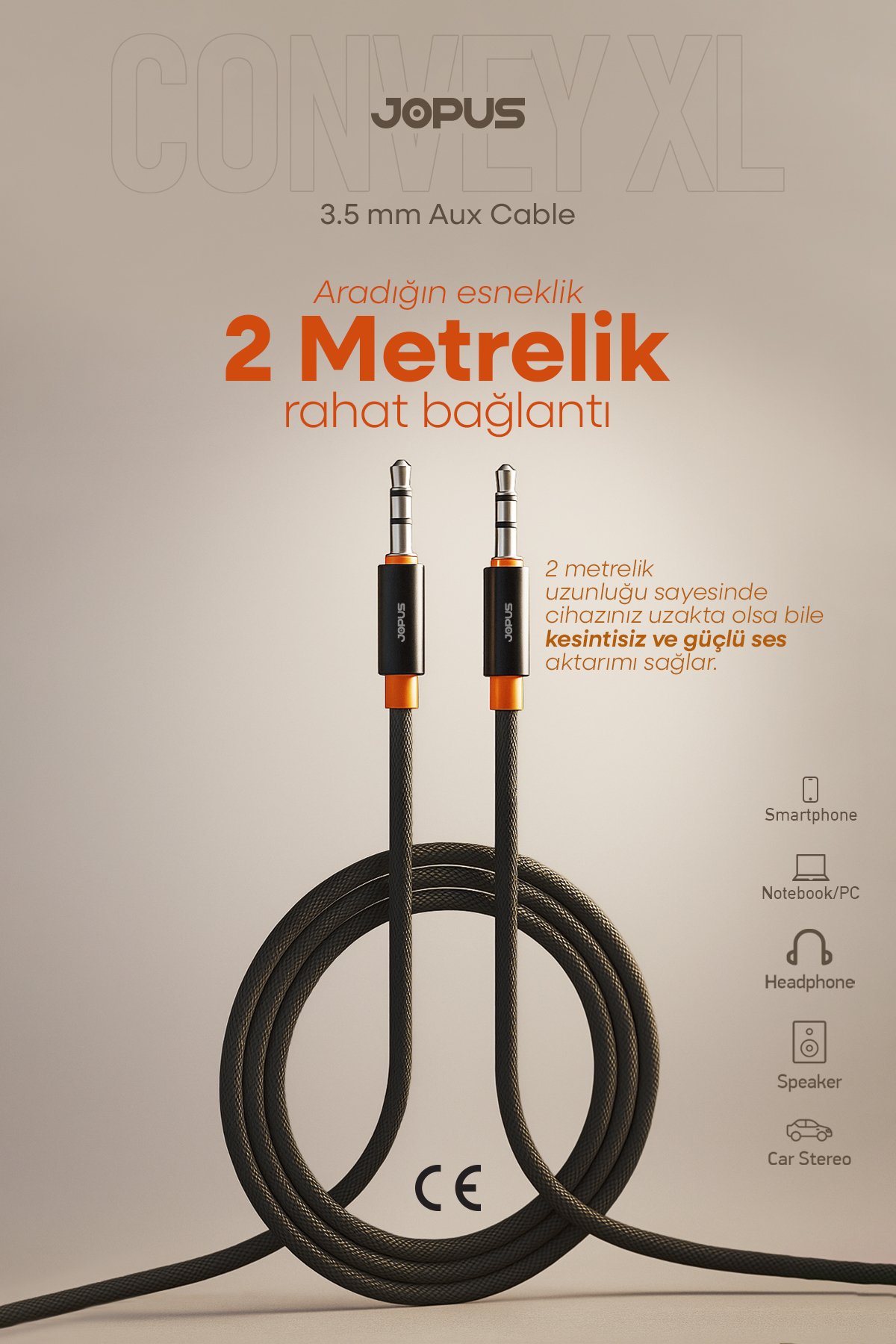 Featured Features - Compatible with all devices with 3.5mm aux input - Comfortable use with 2 meters length - Clear and powerful sound transmission - Durable braid cable structure - Vehicle, speaker, headphone and computer compatible - Flexible and long-lasting design