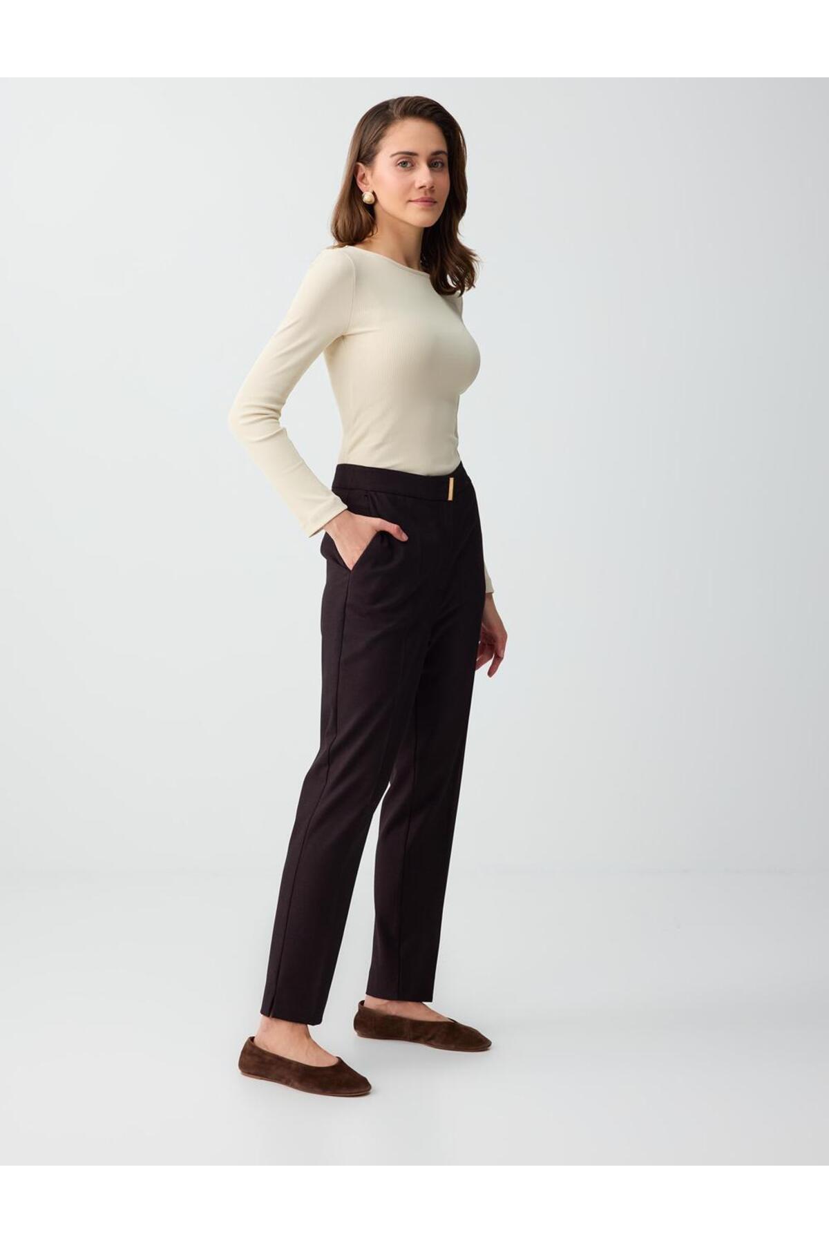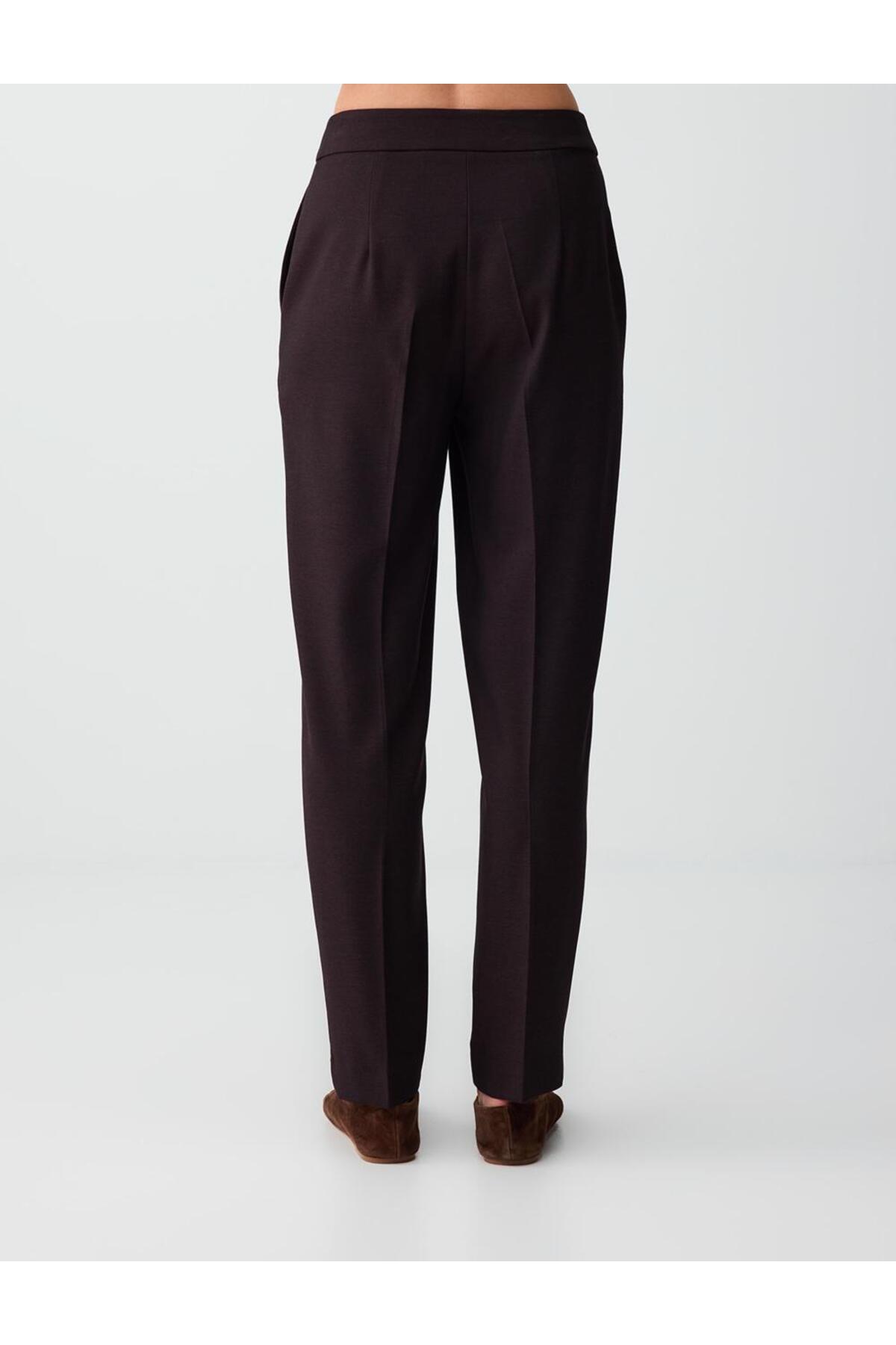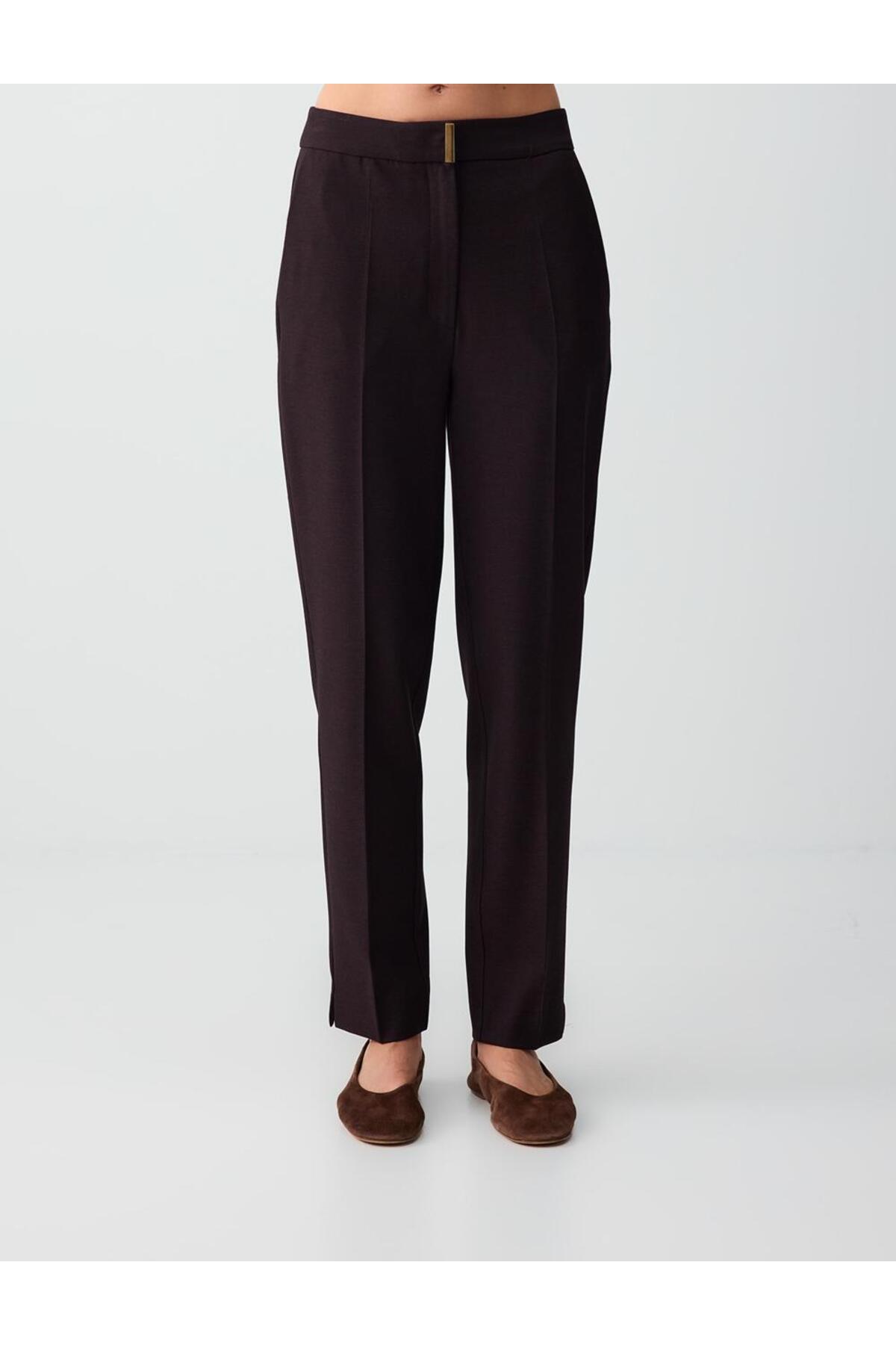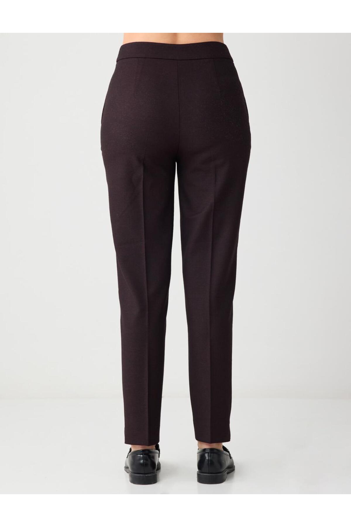 Attracting attention with its vibrant damson color, these pants complement your elegance both day and night.
