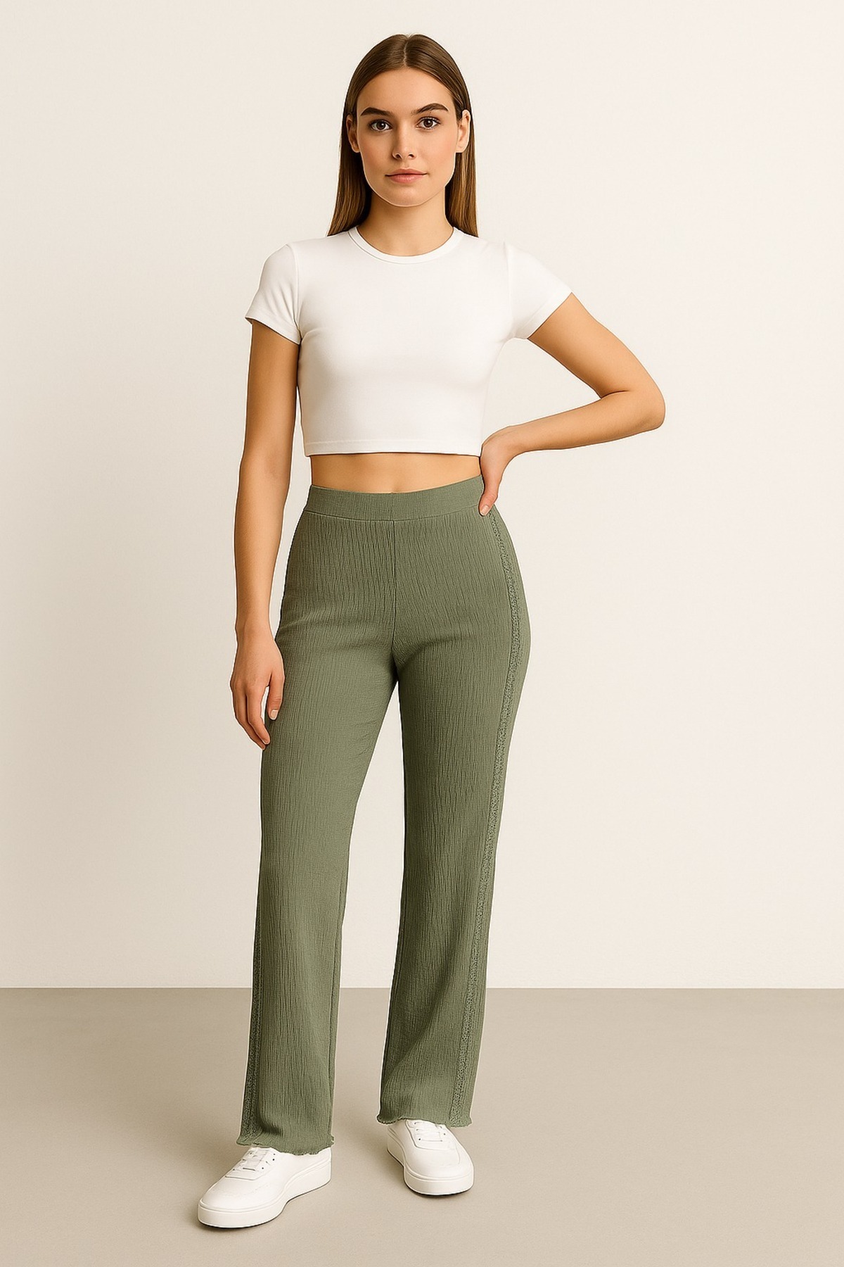 Kallisto Khaki Side Striped Lace Bristle Trousers | ByTR