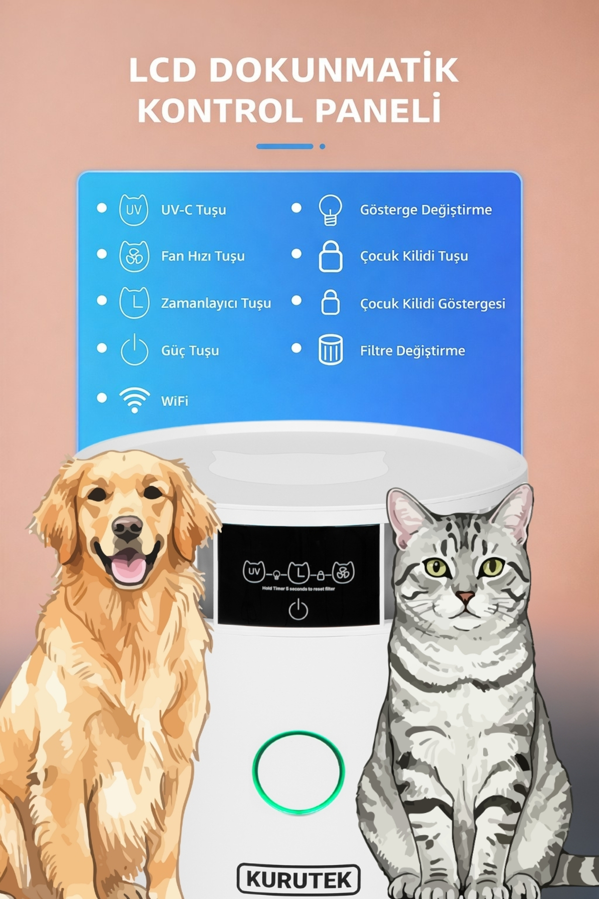Kurutek UV-C PetCare HEPA+ Carbon Smart PHT30 Smart Pet Air Purifier Kurutek PHT30 is a compact pet air purifier designed to create a cleaner, healthier and more spacious environment in homes and small offices.