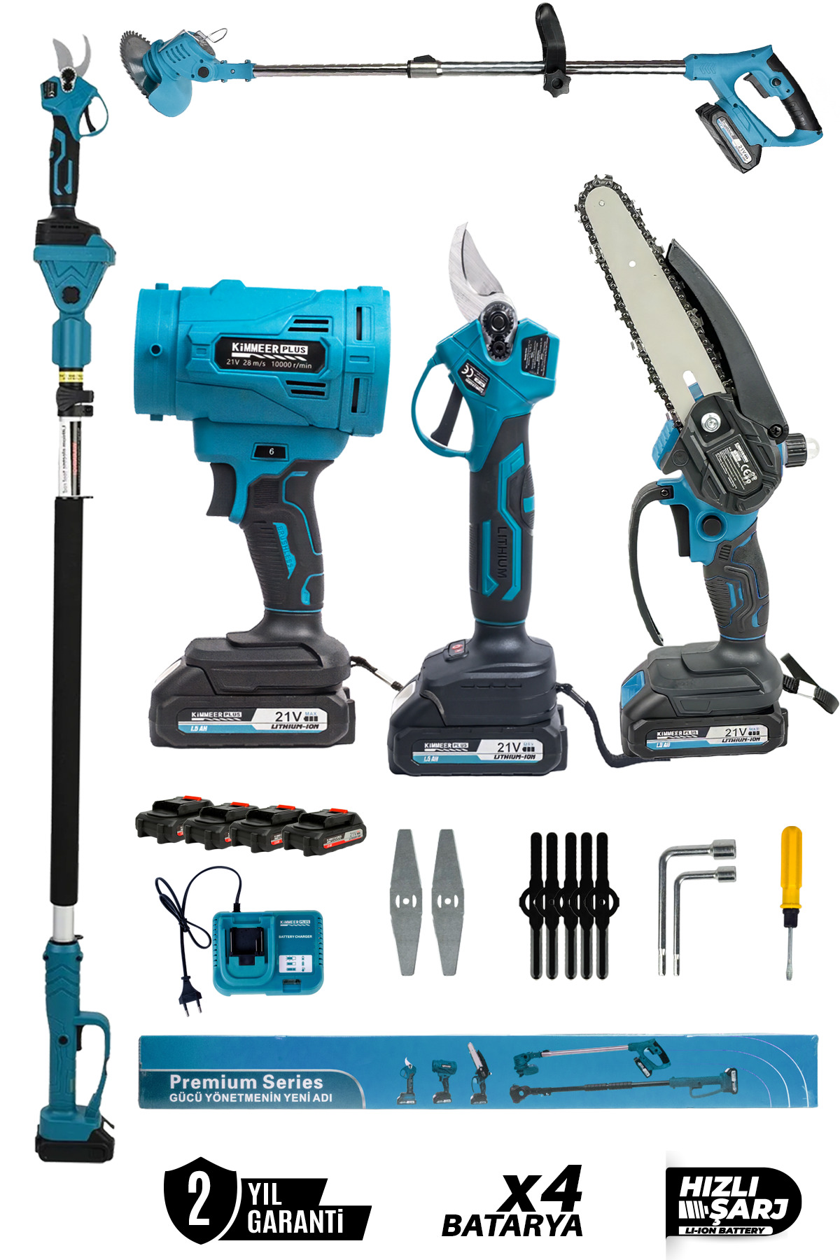 KİMMEER PLUS Professional 5-Piece Set Rechargeable Scissor Saw Lawn Mower and Leaf Blowing Telescopic Sleeves | ByTR