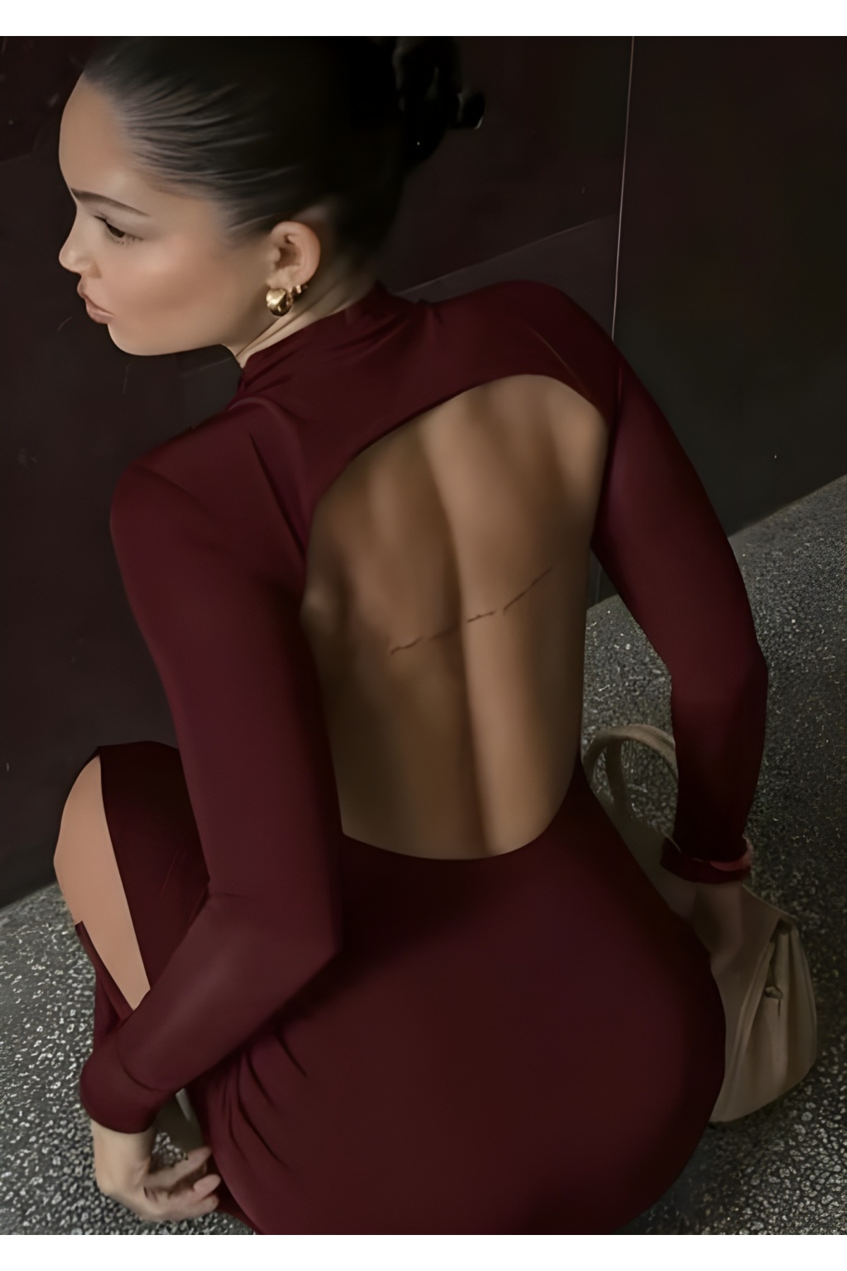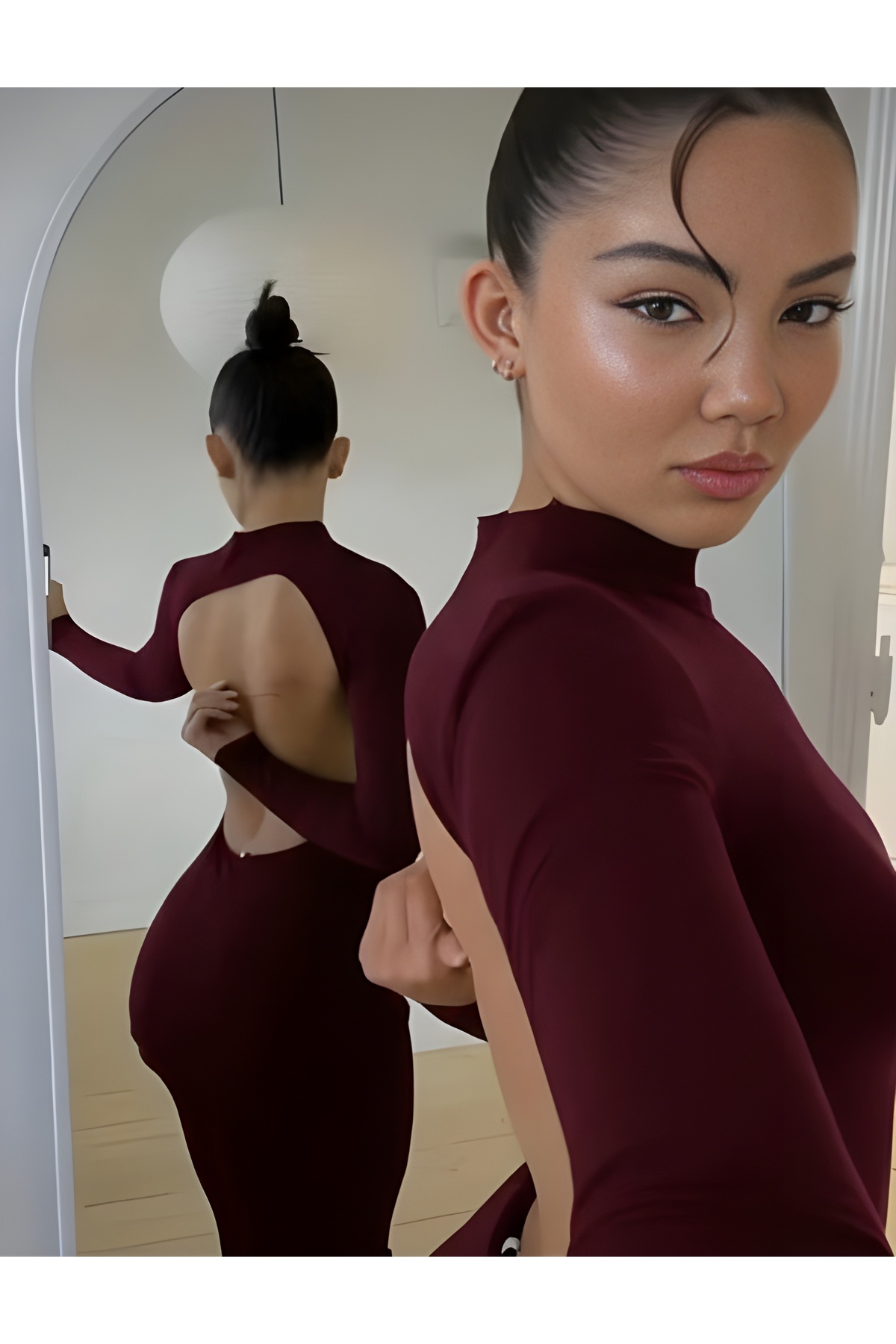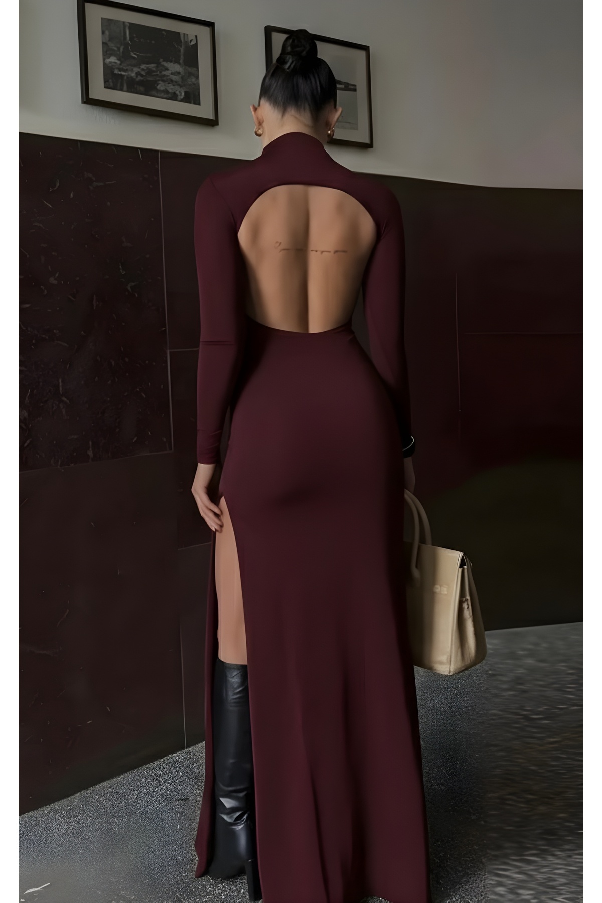 Attracting attention with its elegant Black Brown Burgundy color, this dress offers a feminine look with its back cleavage.