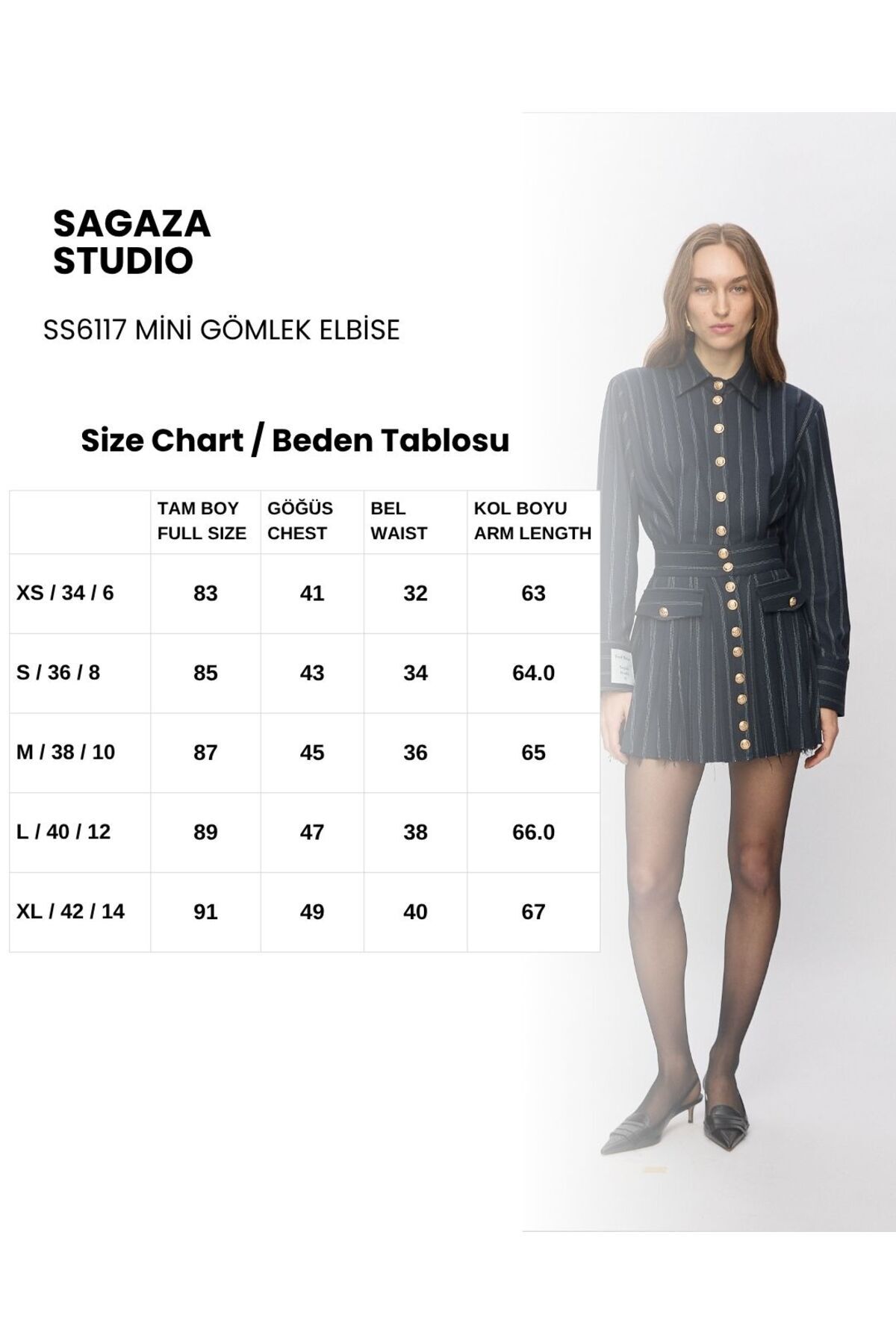 SHOULDER LENGTH:85 CM LENGTH:43 CM WAIST :34 CM ARM LENGTH:64 CM