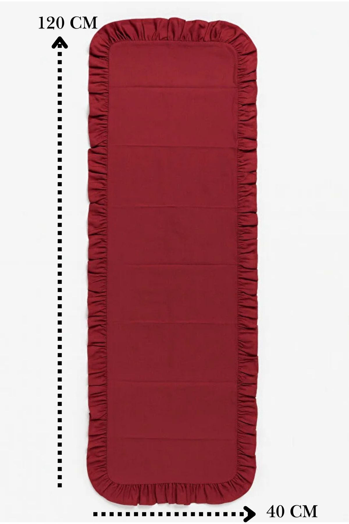 Yunusoğlu Burgundy ( Red ) Ruffled Table Runner will add elegance to your tables with its functionality and decorative appearance.