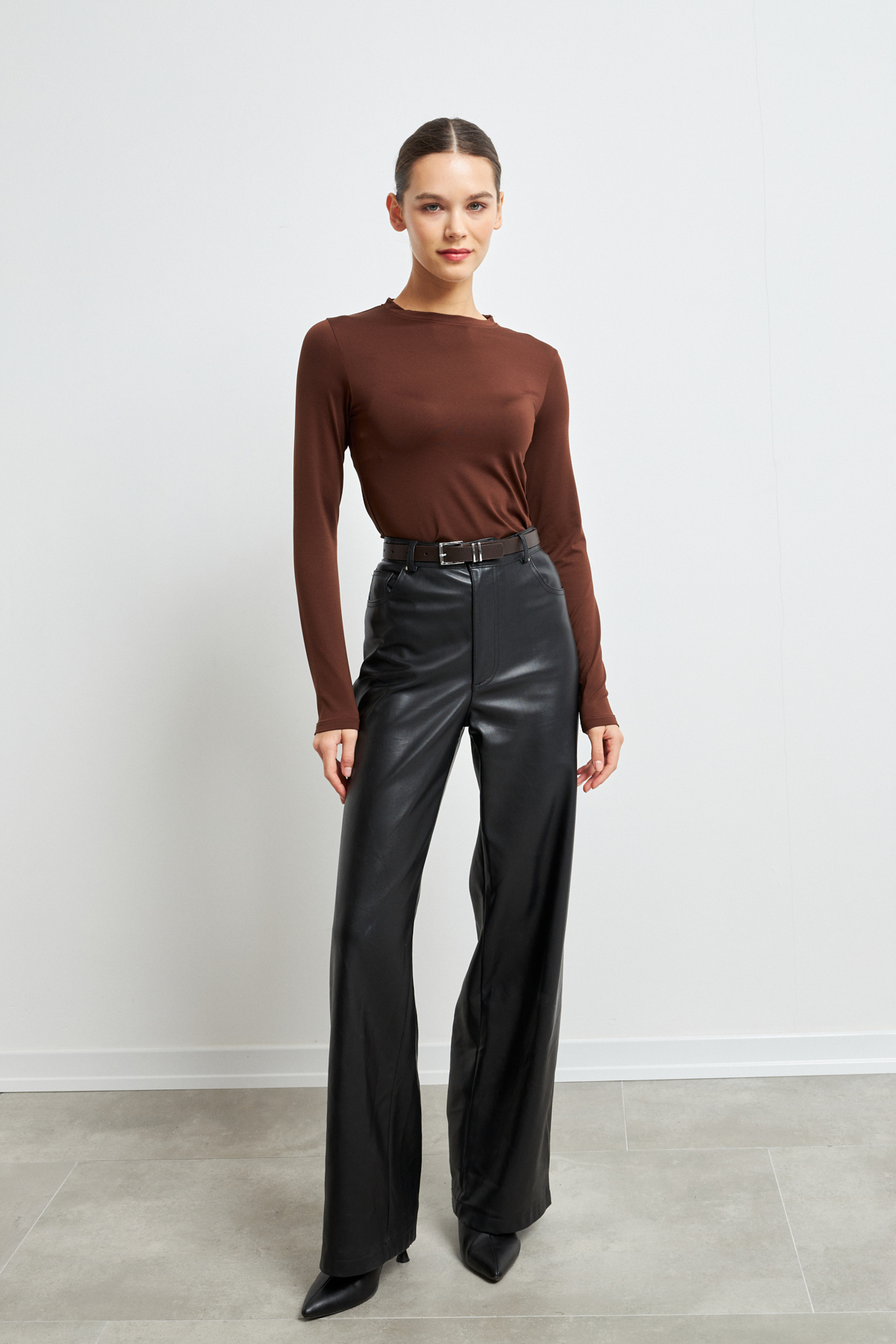 Its unbelted design emphasizes body contours in a natural way.