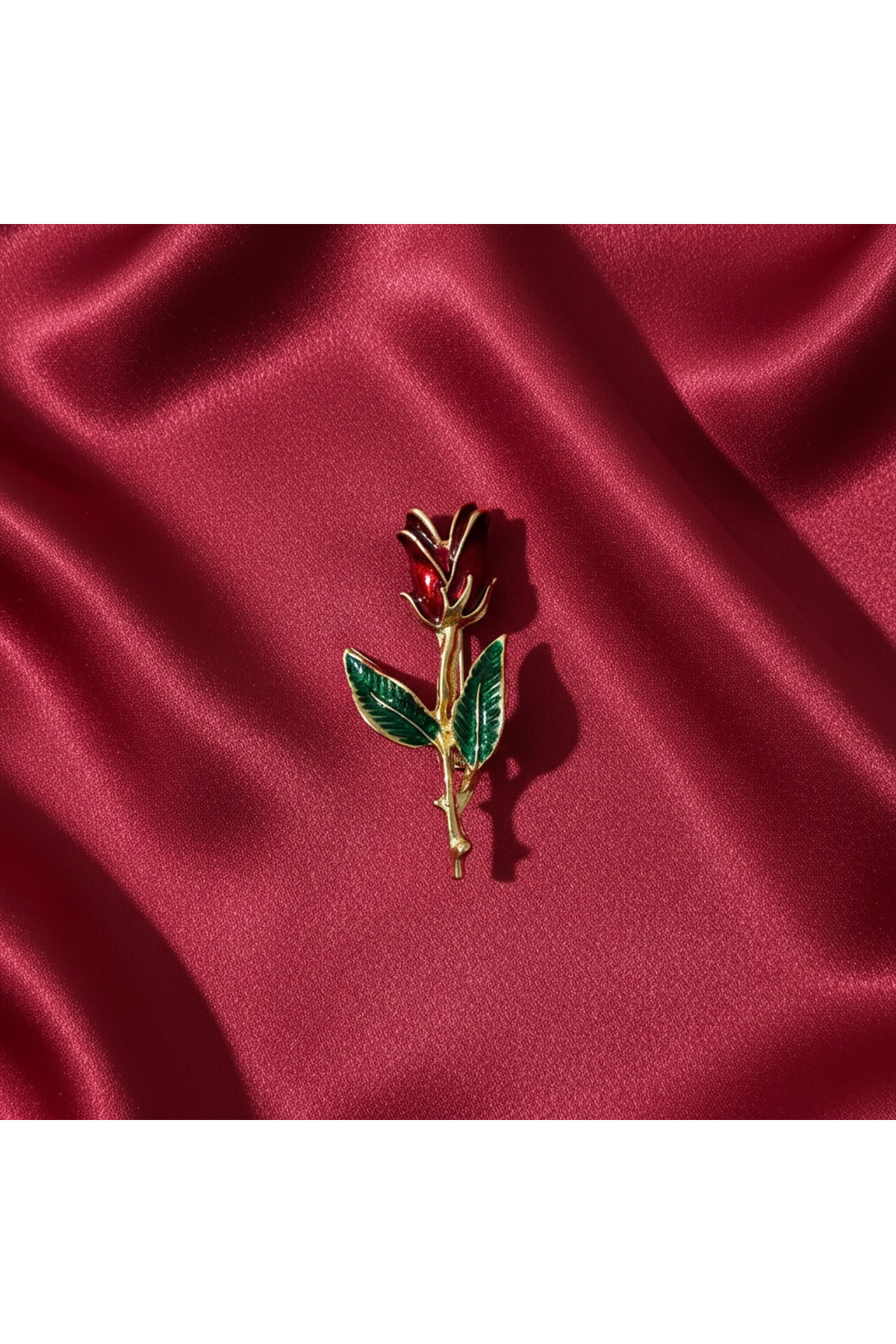 ✨Red Rose -Green Leaf Detailed Brooch-Lapel Pin.