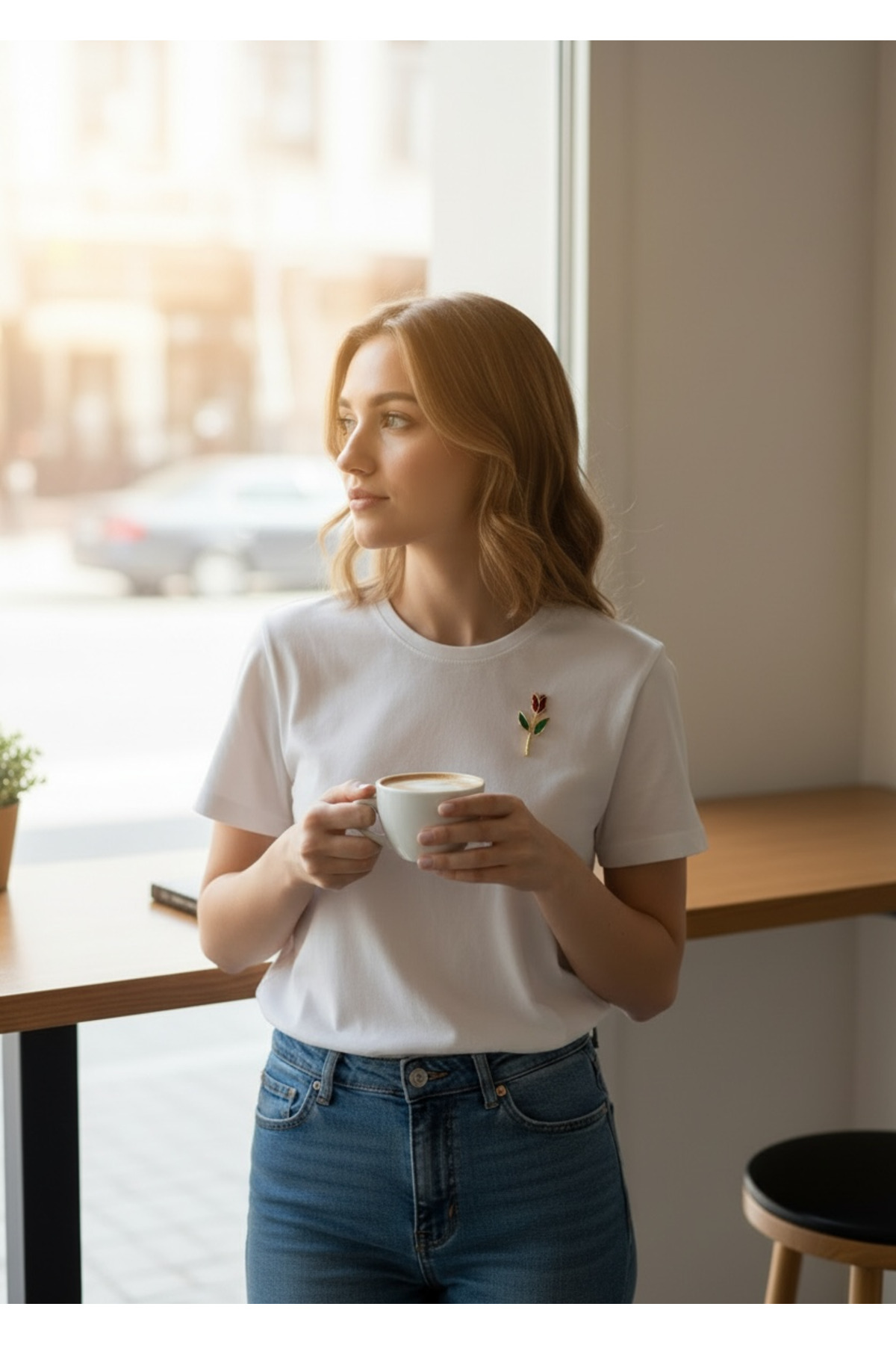 It adds a romantic touch to every combination with its elegant , stylish ,naive appearance carefully prepared with special colors with ✨red rose and green leaf details.