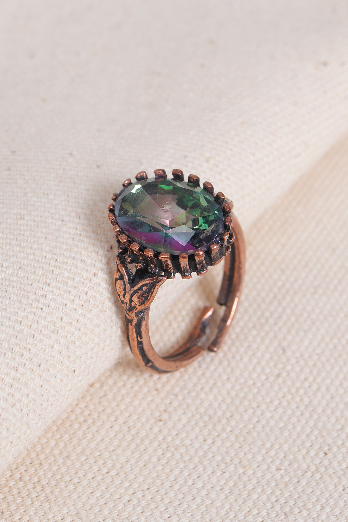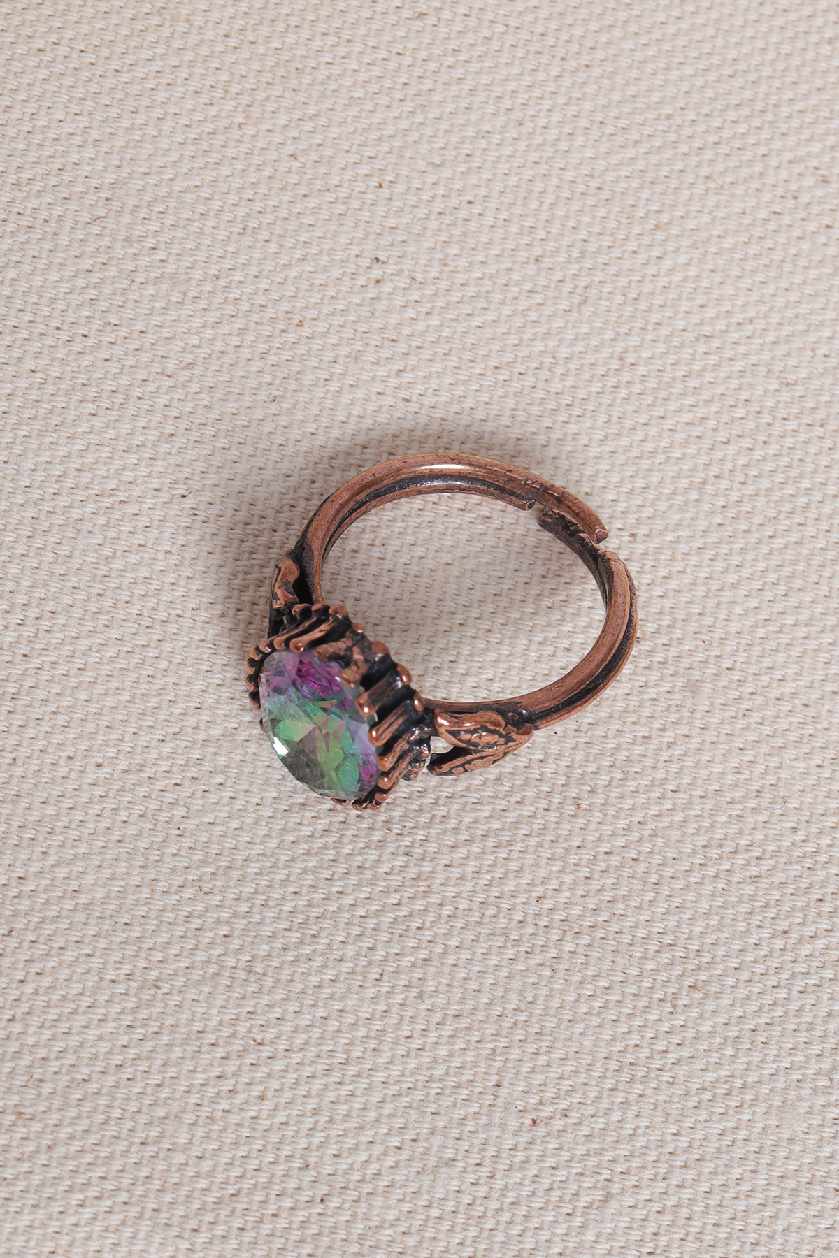 Süspüs Accessories Adjustable Copper Ring with Mystic Topaz Gemstone | ByTR