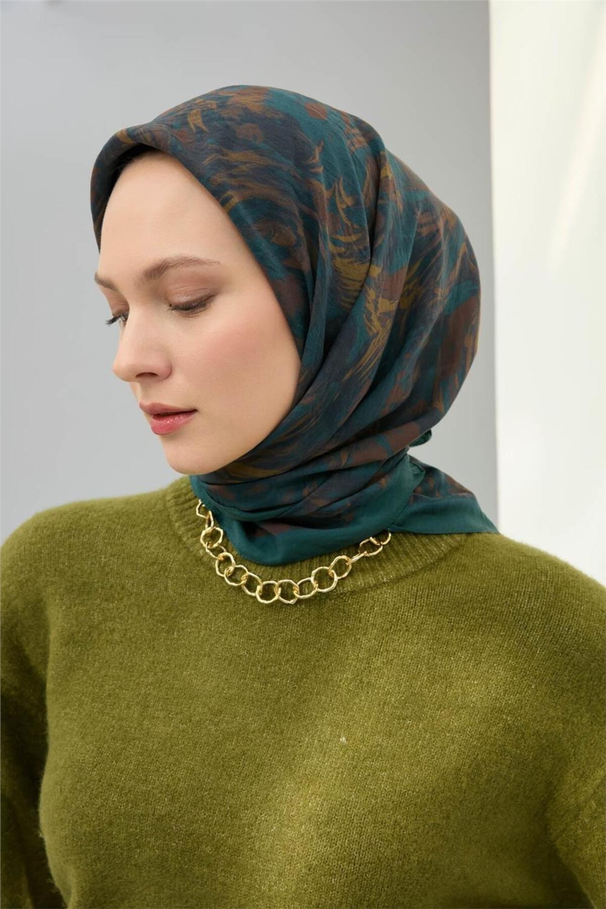 Silk Home Viscose Velora Scarf Petroleum Green Four Seasons 90x90 | ByTR