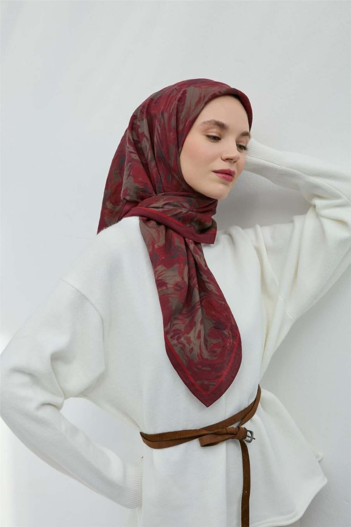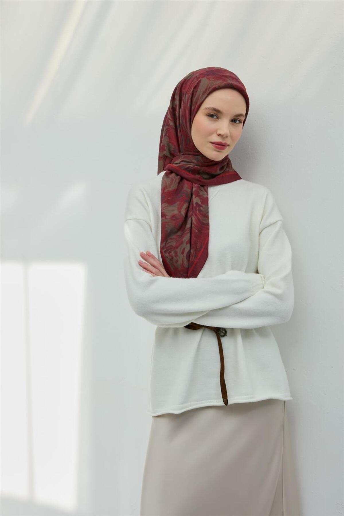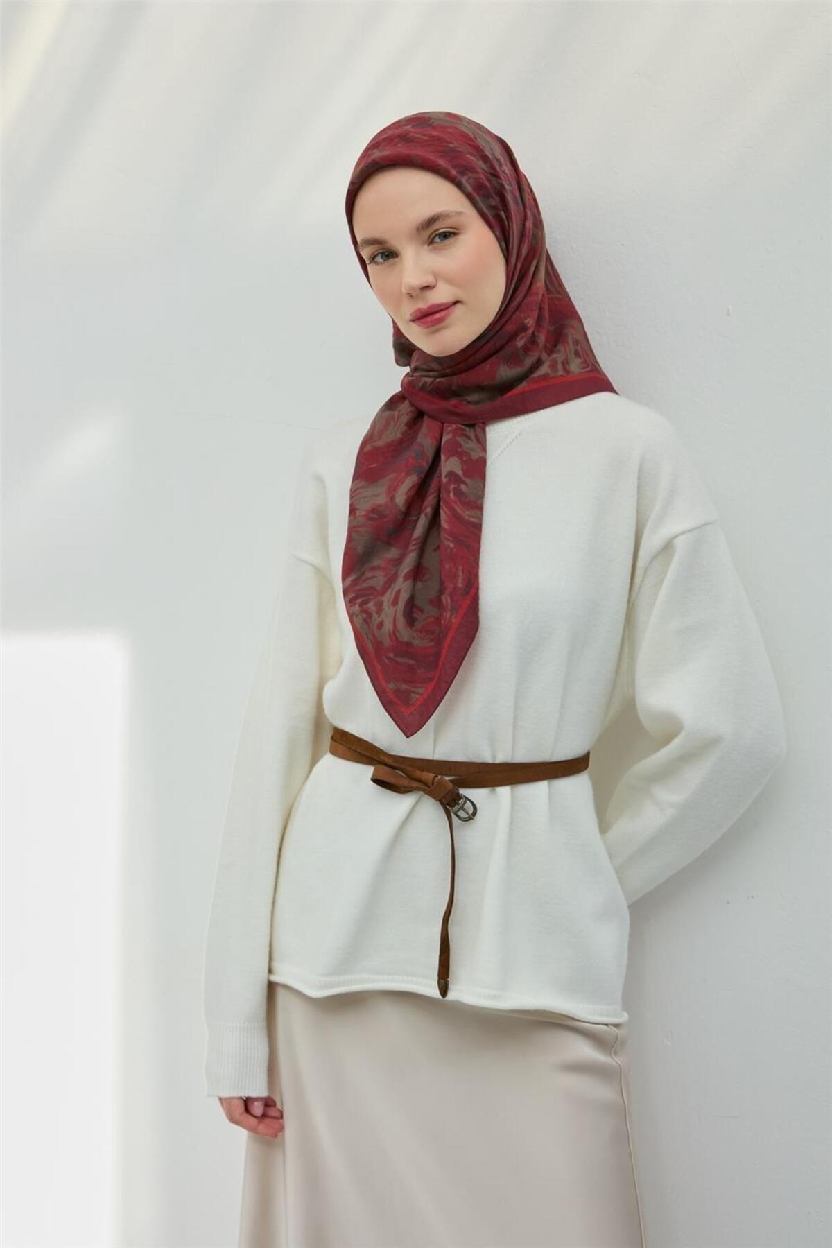 Silk Home Viscose Velora Scarf Sour Cherry Rotten Burgundy Gray Slightly Poured 90x90 | ByTR