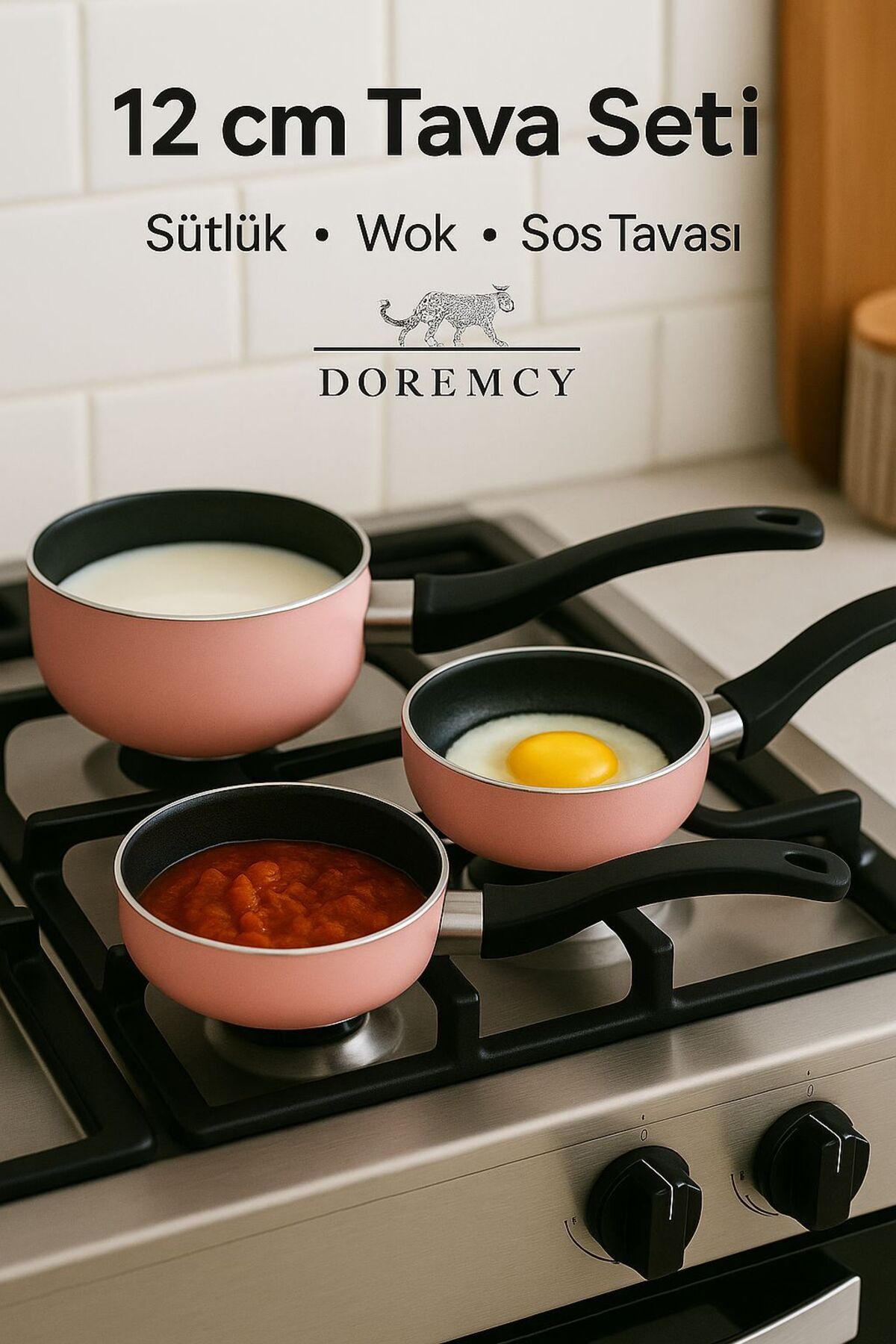 Doremcy 12 cm Mini Pan Set is a 3-piece mini pan set with teflon non-stick surface specially produced for those who are looking for practical and fast solutions in the kitchen.