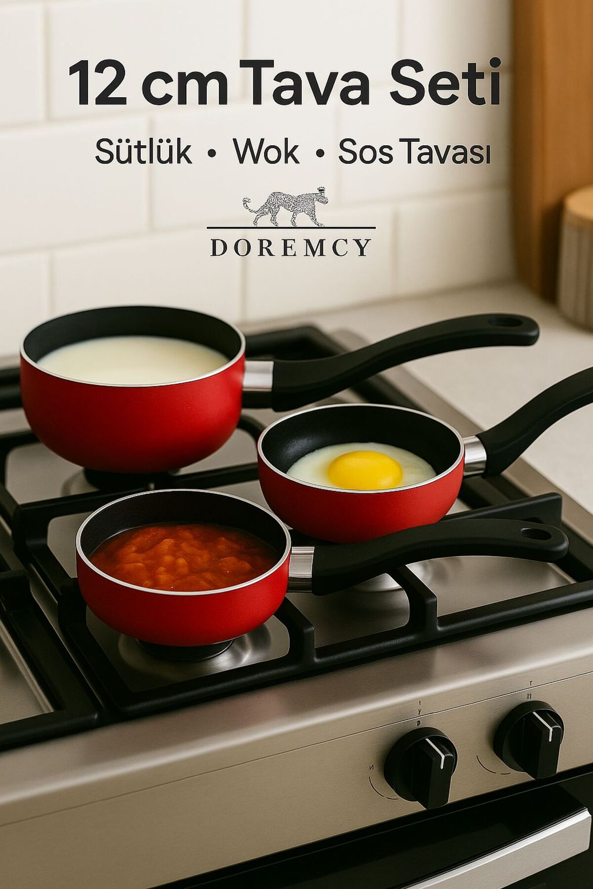 Doremcy 12 cm Mini Pan Set is a 3-piece mini pan set with teflon non-stick surface specially produced for those who are looking for practical and fast solutions in the kitchen.