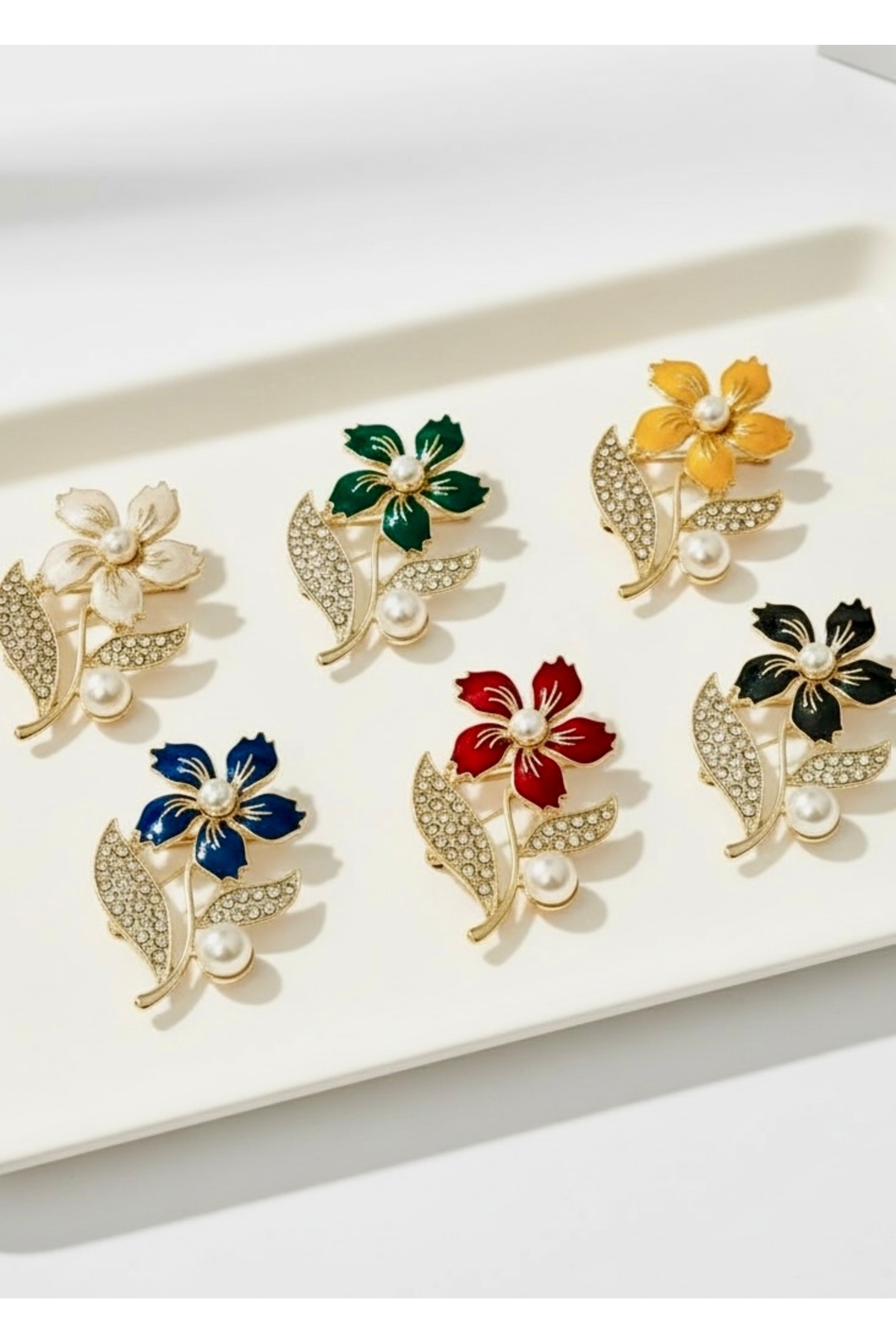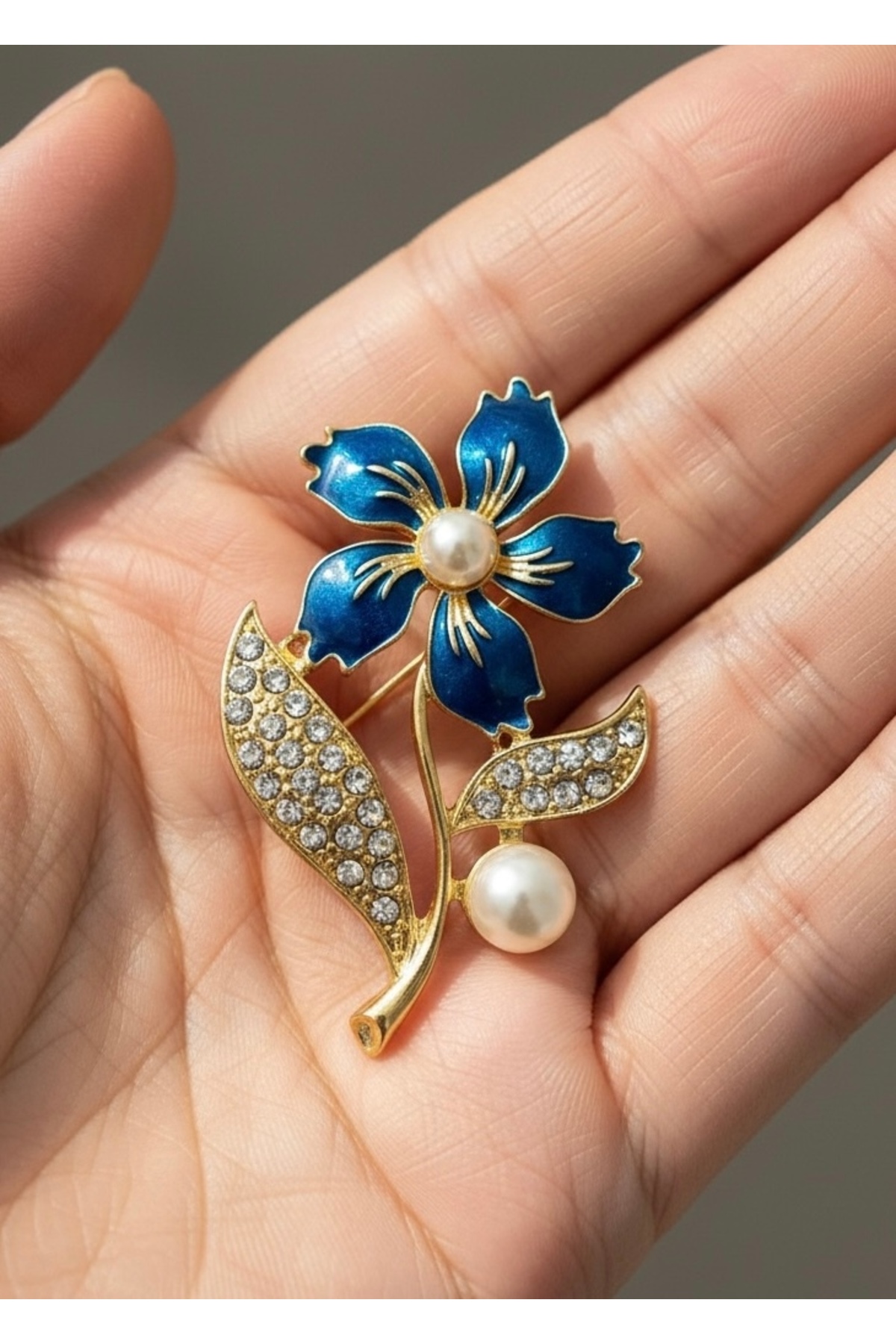 MODAMİRA AKSESUAR Stone Detailed | Flower Brooch | Height:5cm-Width:3cm | Color Navy | ByTR