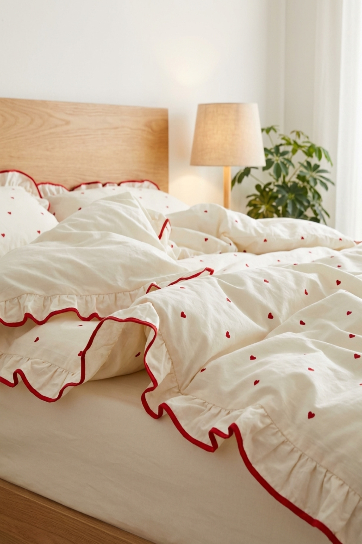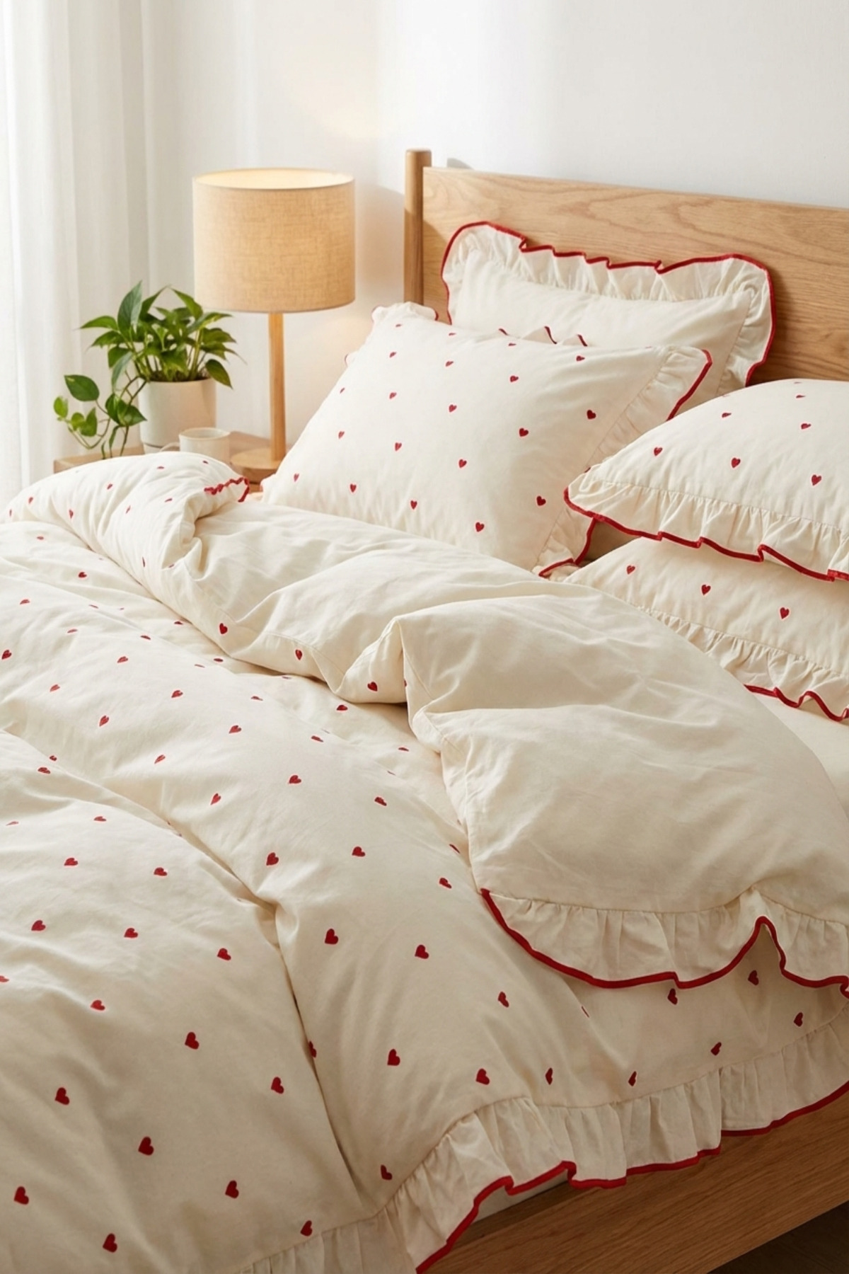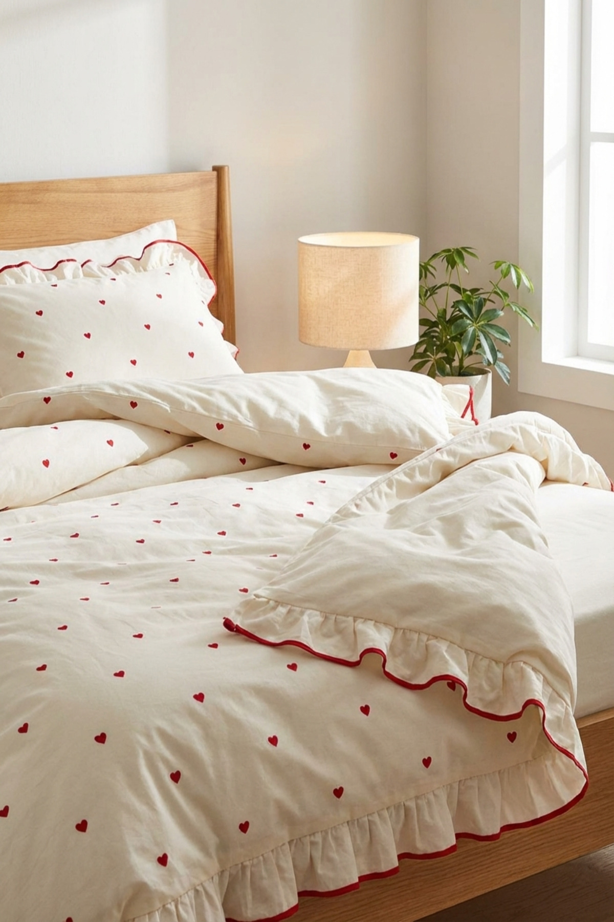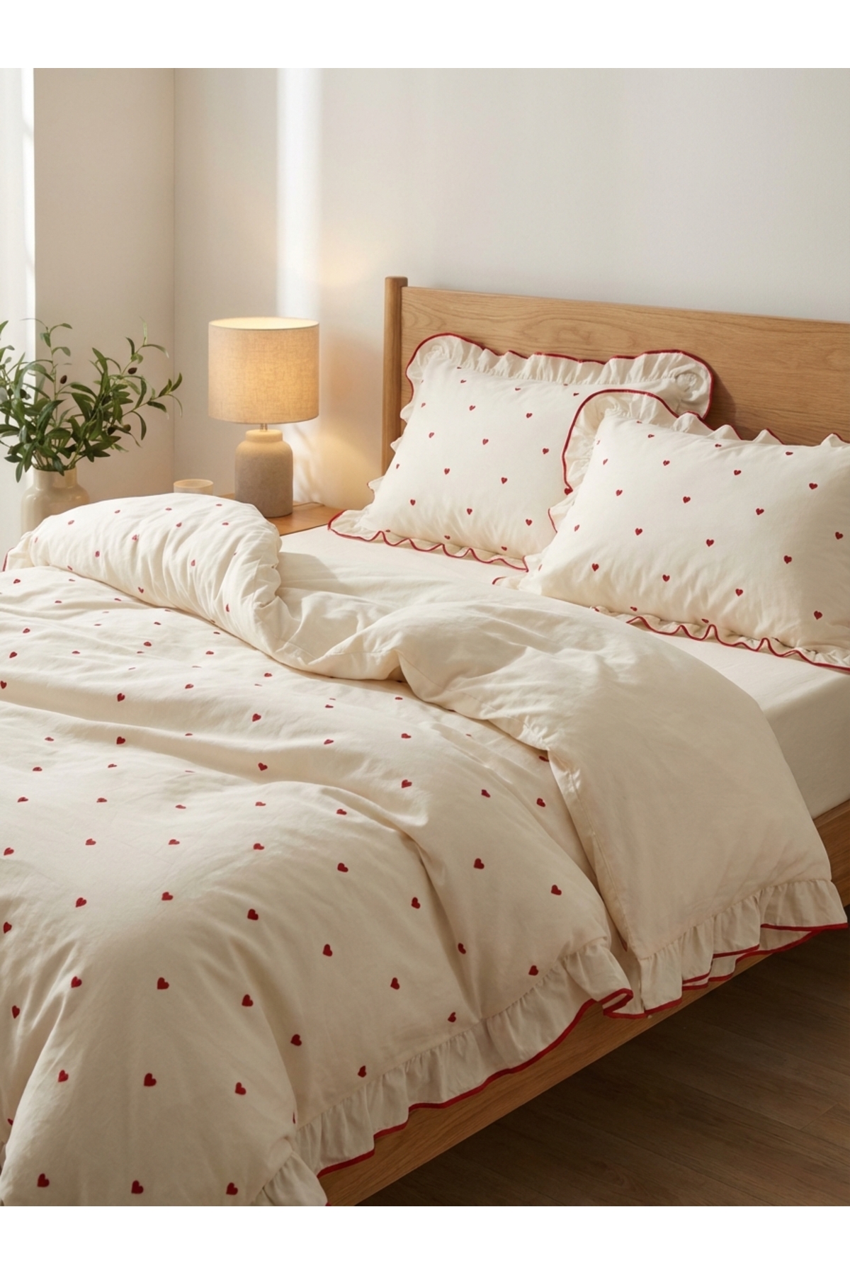 It provides a simple and stylish look with its regular pattern and Heart embroidery details.