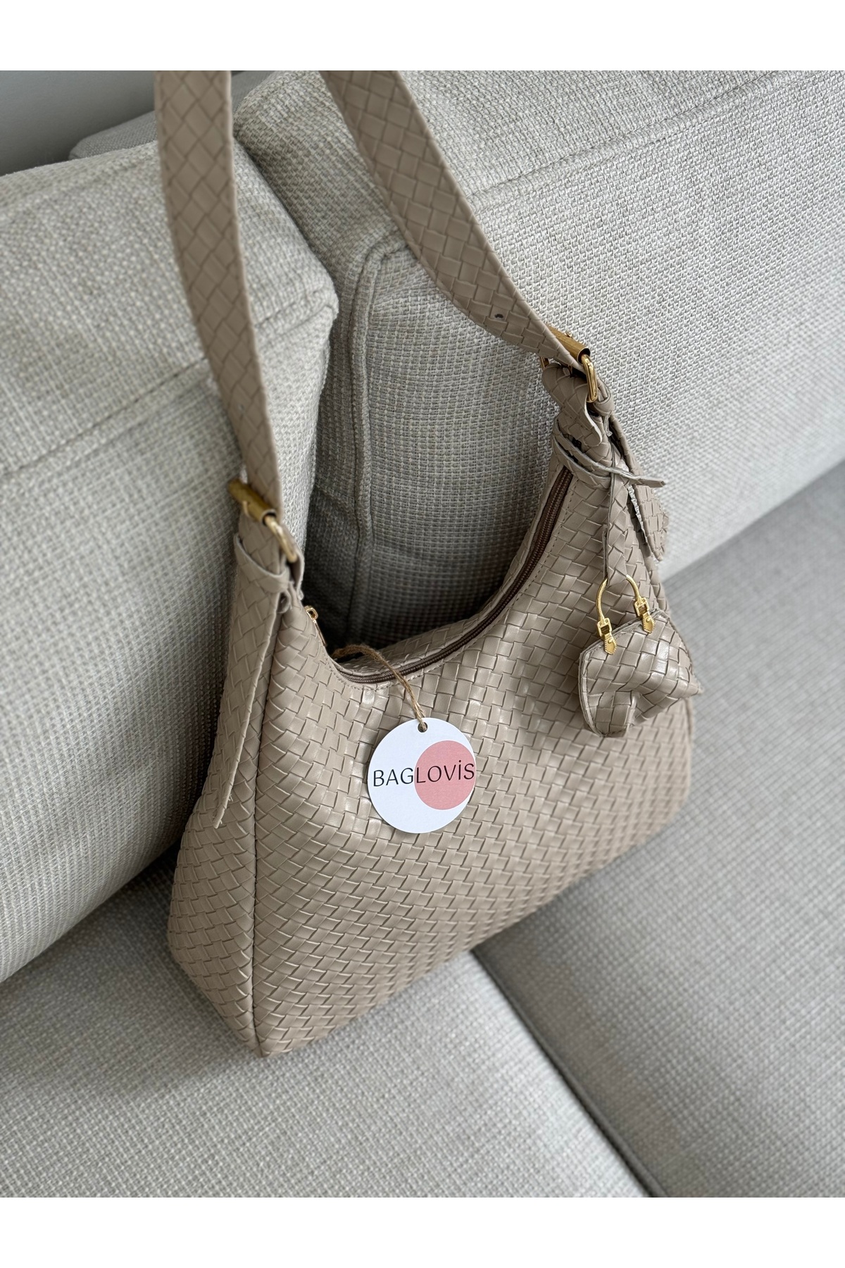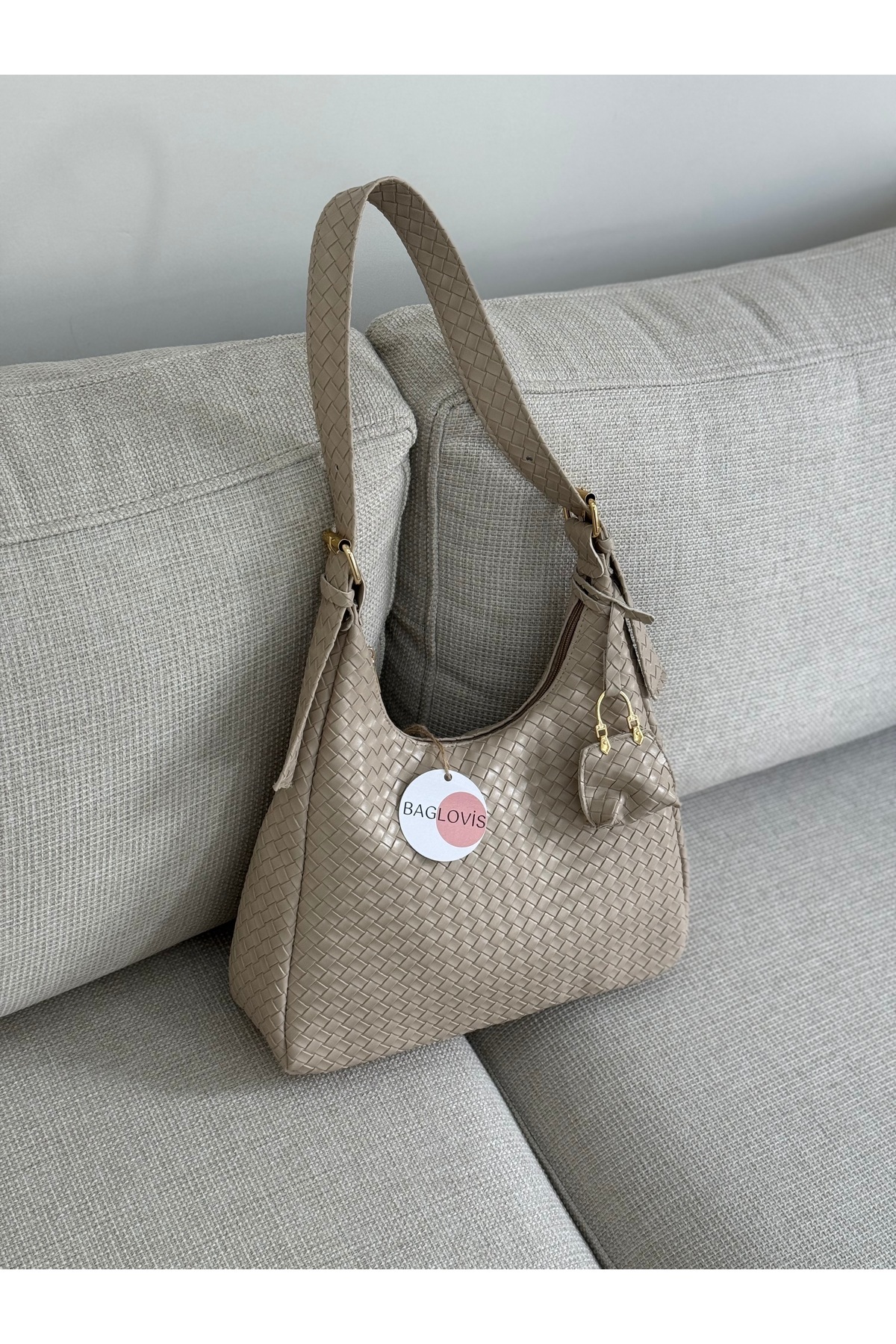 BAGLOVİS WOMEN 'S MINK KNITTED SHOULDER BAG WITH STRAP BUCKLE DETAIL AND SMALL WALLET EN34 BOY22 | ByTR