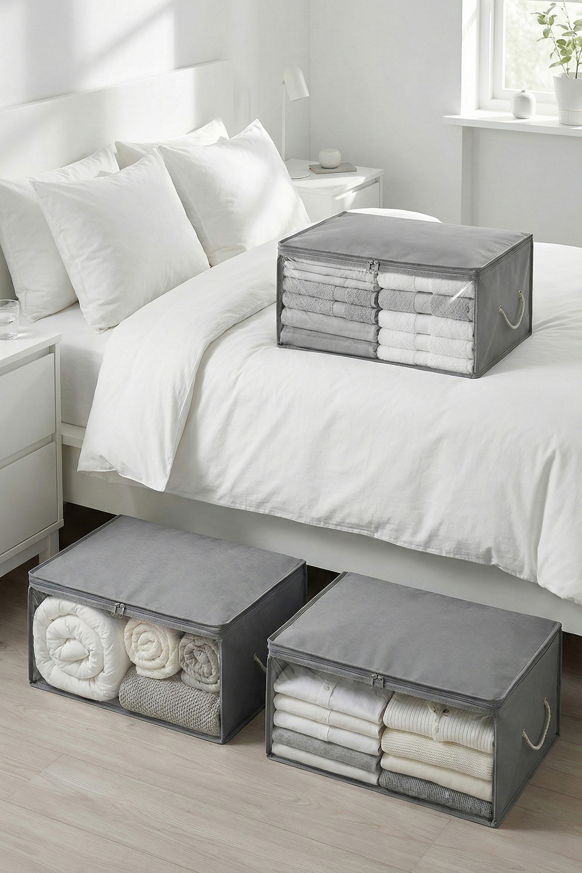 REKHOME 3 Pcs Medium Gray Window Base Bottom Sweater Quilting Blanket Clothes Loop / 52x28x21 | ByTR