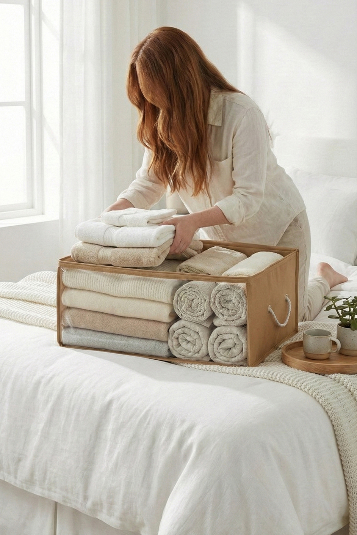 REKHOME 3 Pcs Under Base with Medium Beige Window Sweater Pique Blanket Clothes Loop / 52x28x21 | ByTR