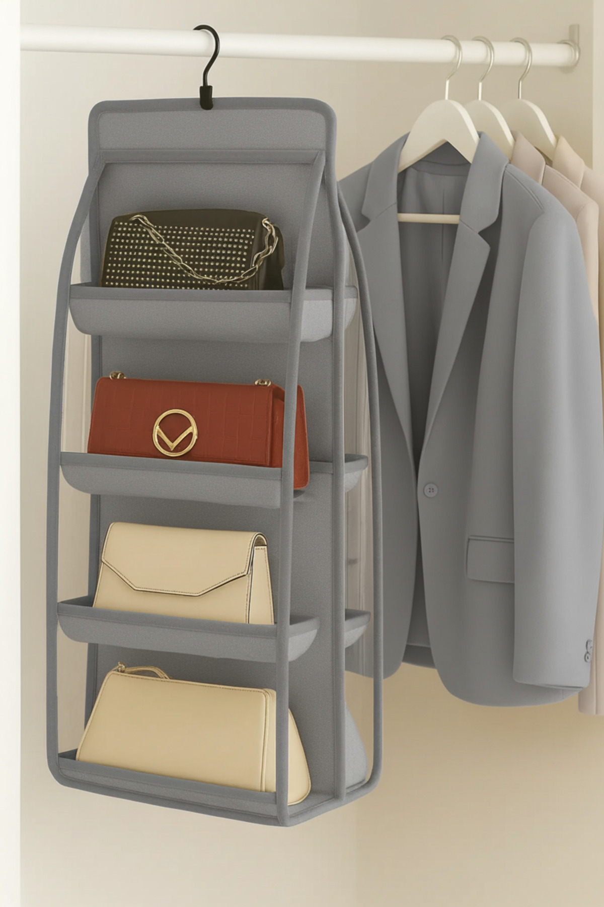 Your bags are stored without deformation, your accessories are visible at a glance, your closet always stays tidy.