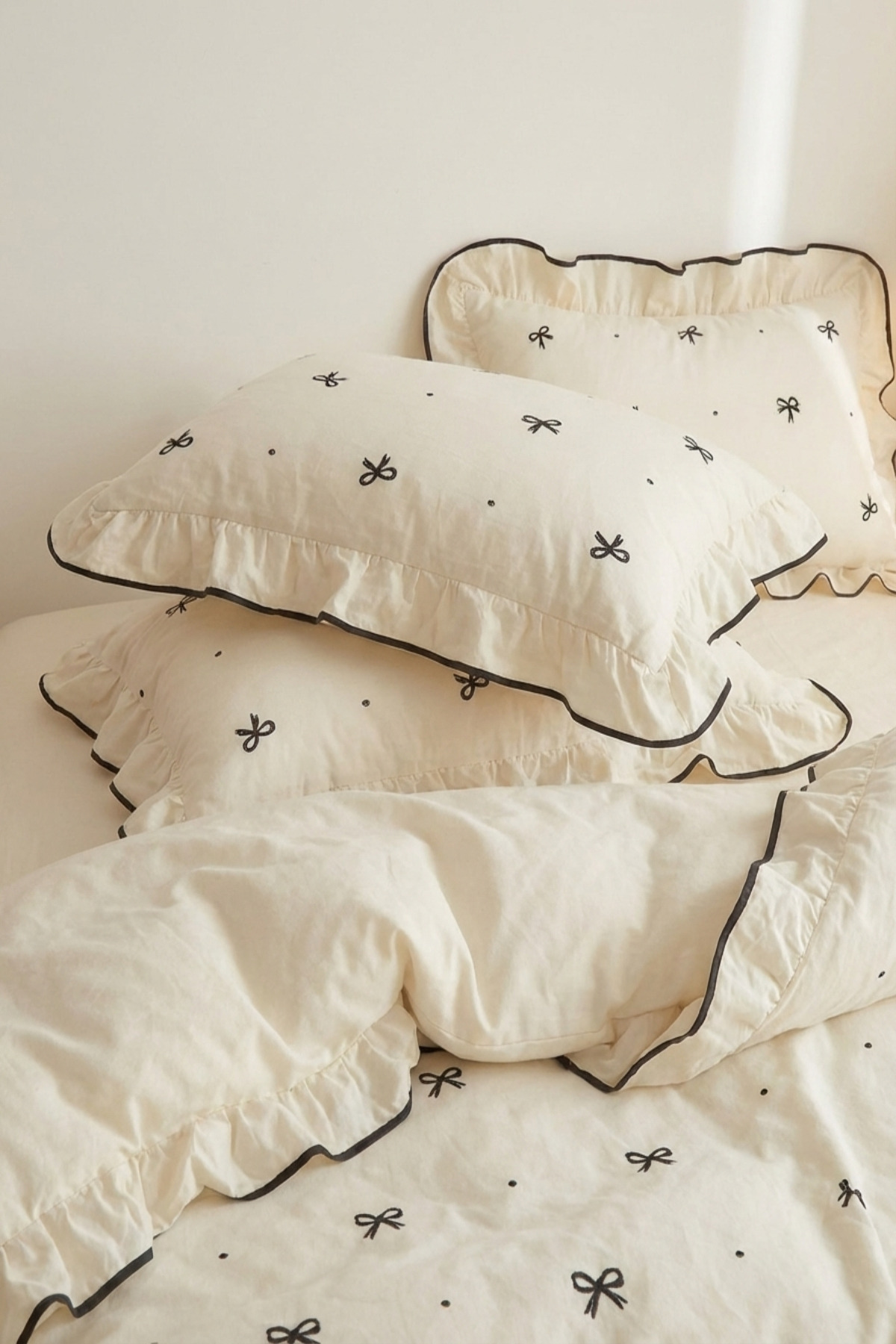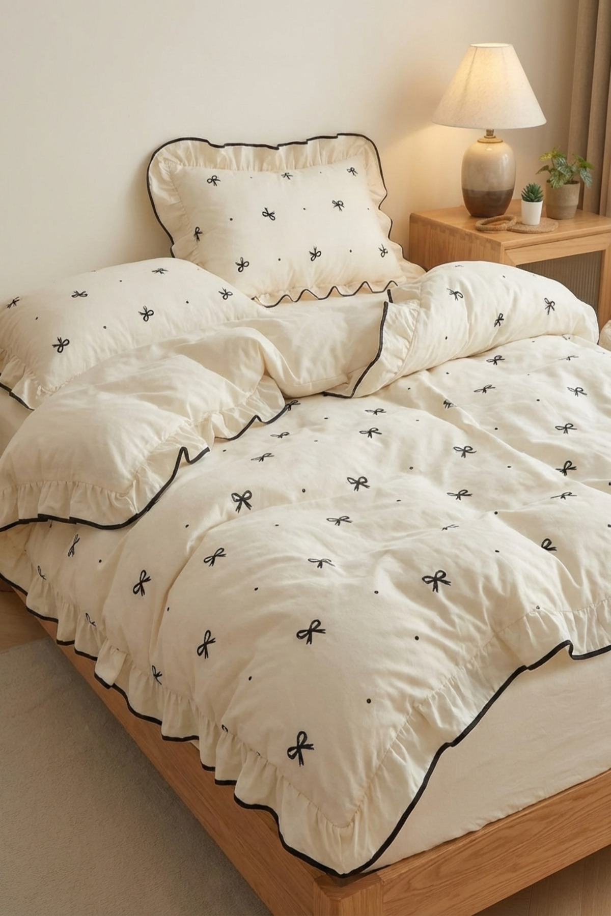 It provides a simple and stylish look with its plain pattern and bow embroidery details.