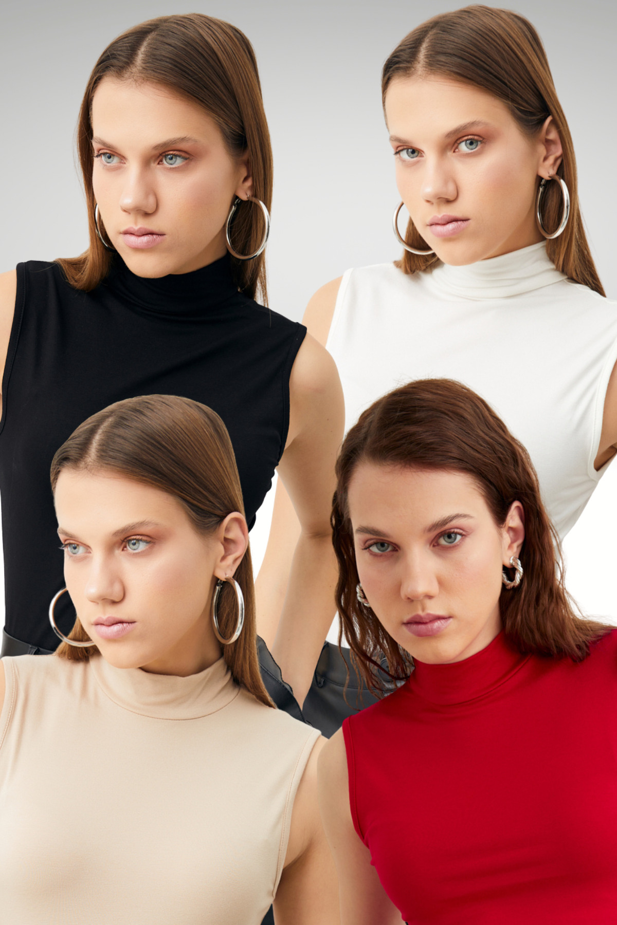 While giving a modern and stylish look with its half turtleneck detail, its uncovered structure gives you the freedom to move comfortably.