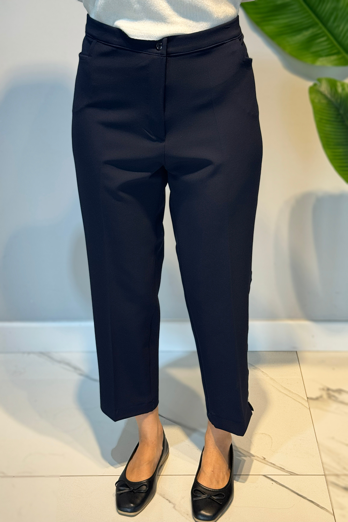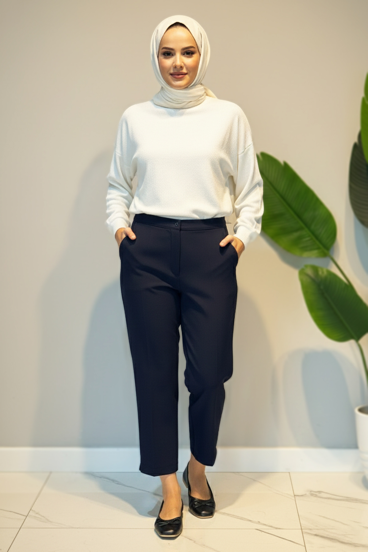 Wrist length fabric pants, which offer elegance and comfort together with navy blue color, are ideal for daily use.