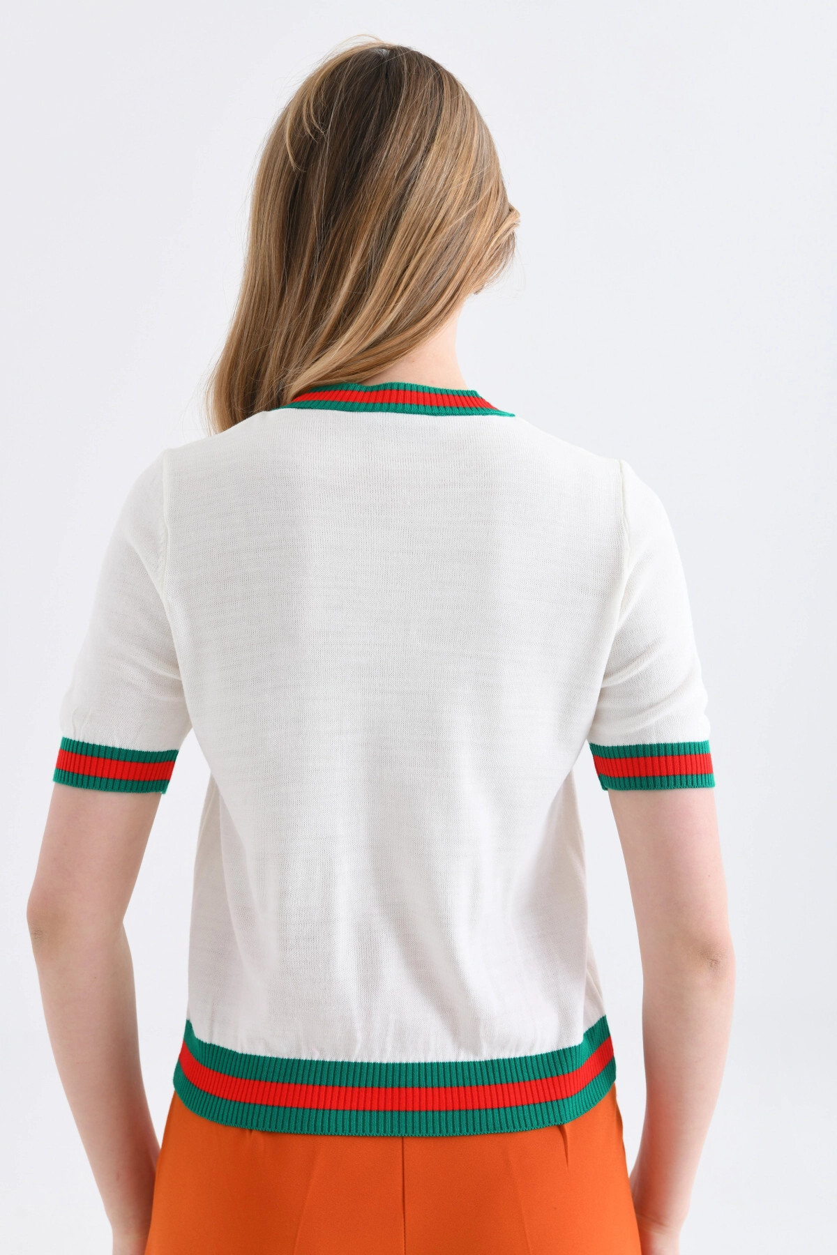 Park Karon Women's Crew Neck Short Sleeve Striped Knitwear Sweater 10216 | ByTR