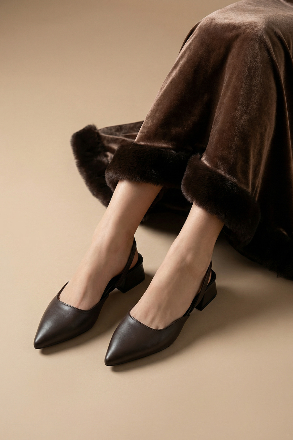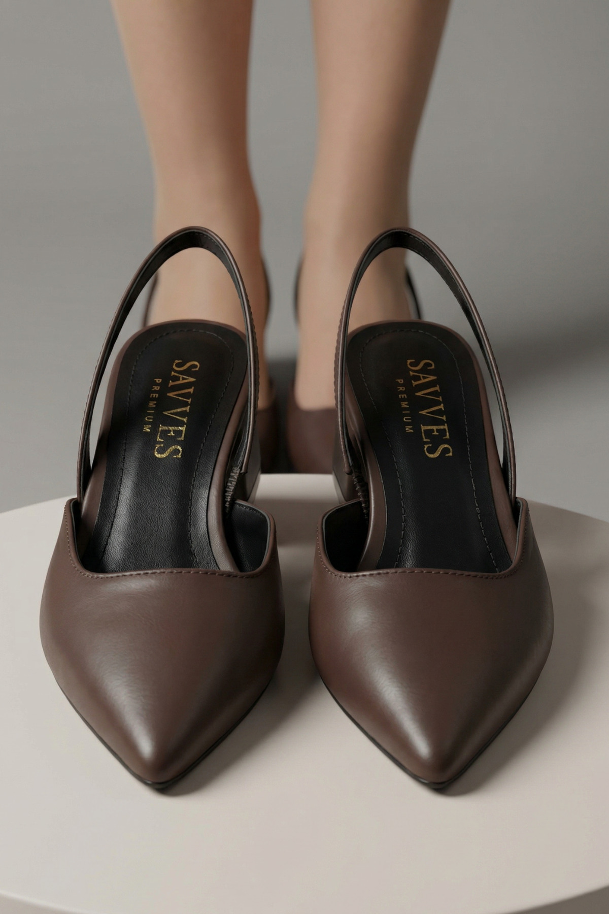 Savves Women's Bitter Coffee Skin Gold Buckle New Season Short Heel Shoes | ByTR
