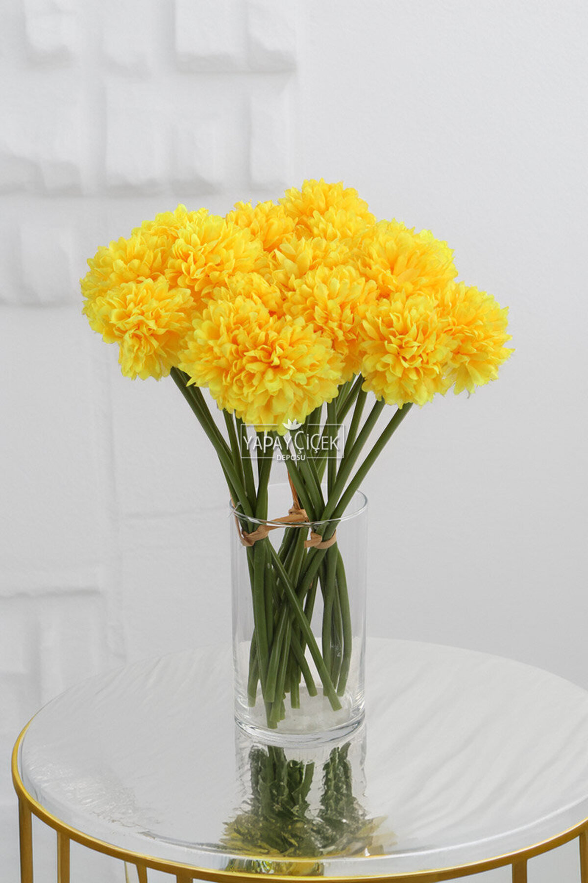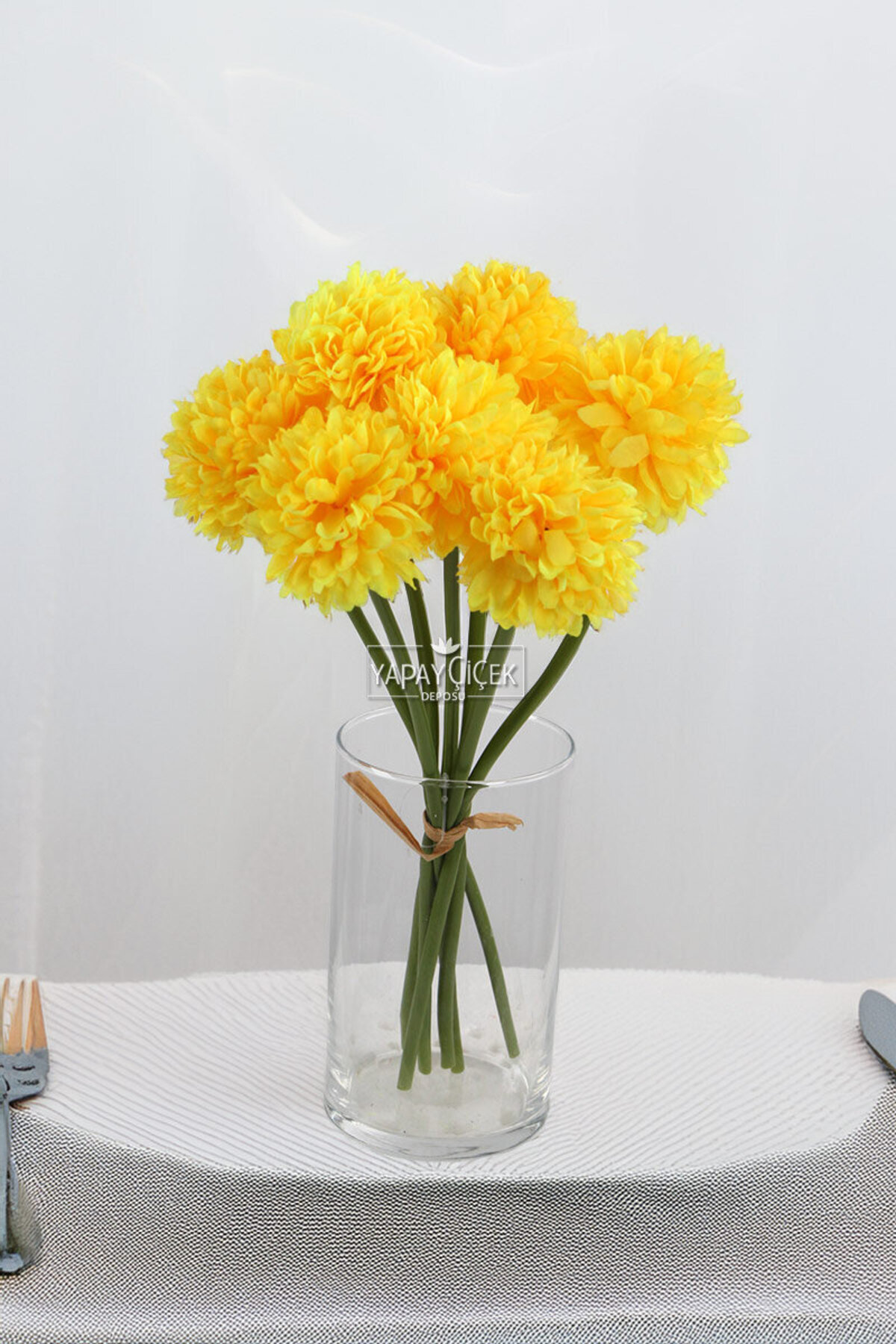 Yapay Çiçek Deposu Artificial Flower Ball Chrysanthemum 7pcs Mini Snowball Bundle 30cm Oil Yellow | ByTR