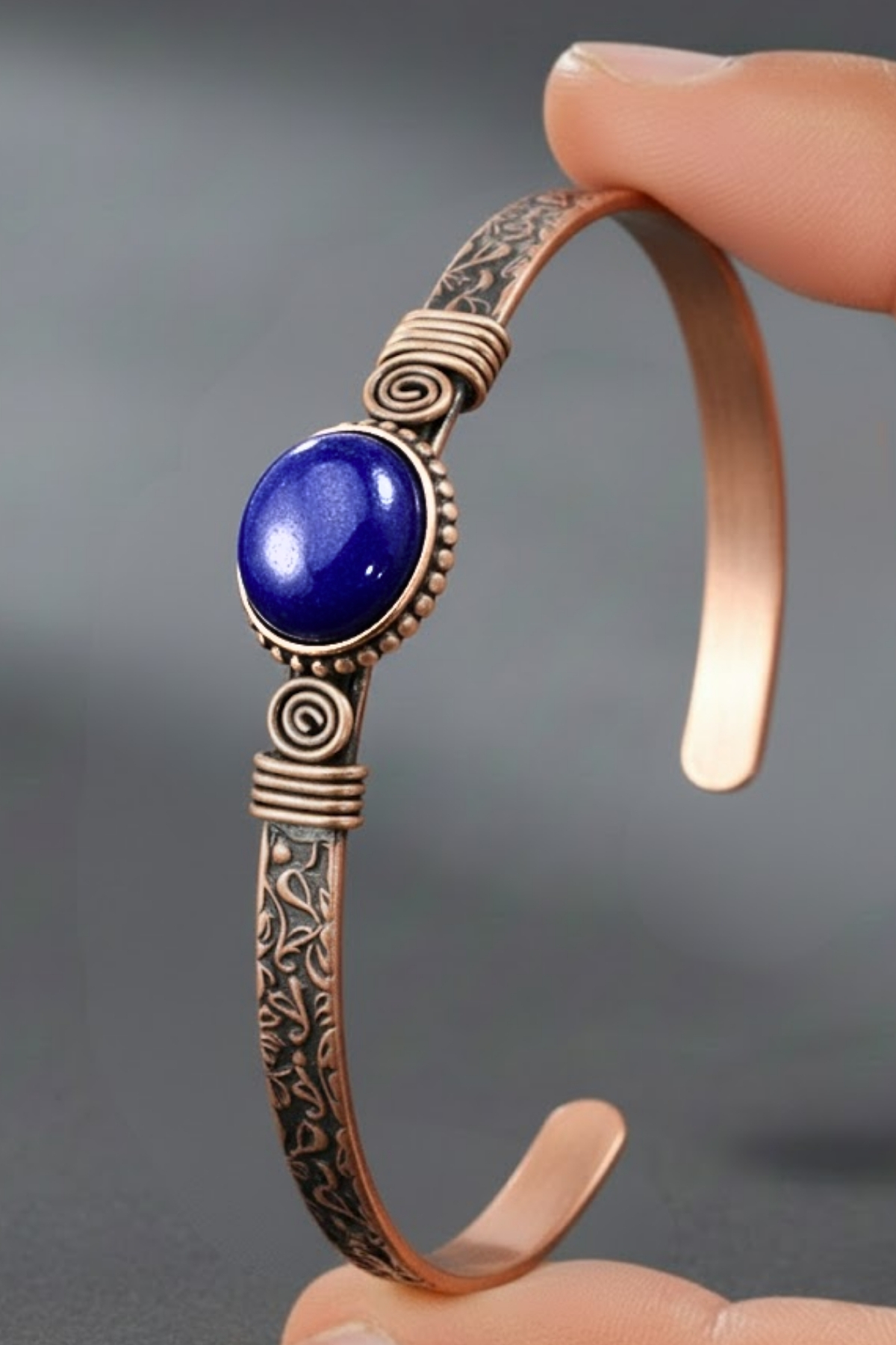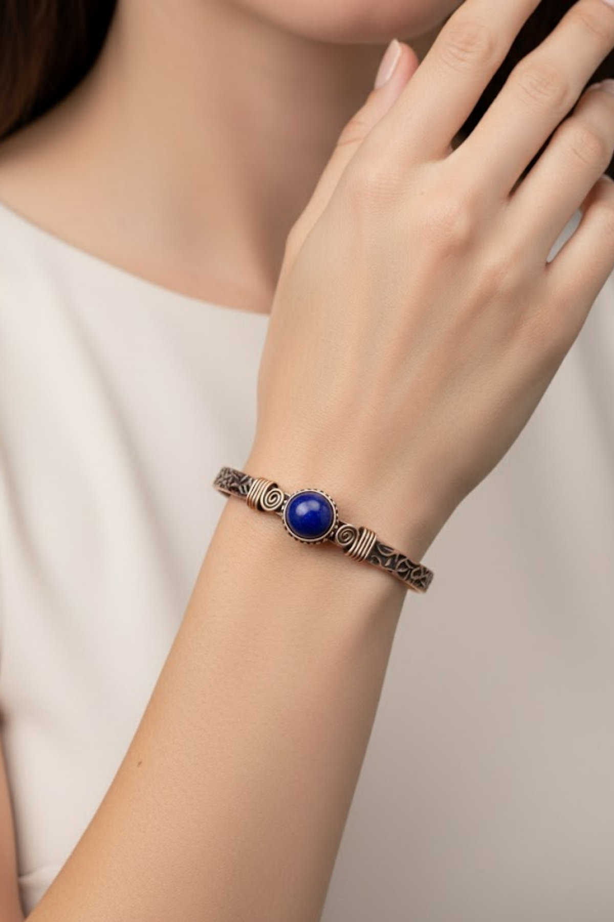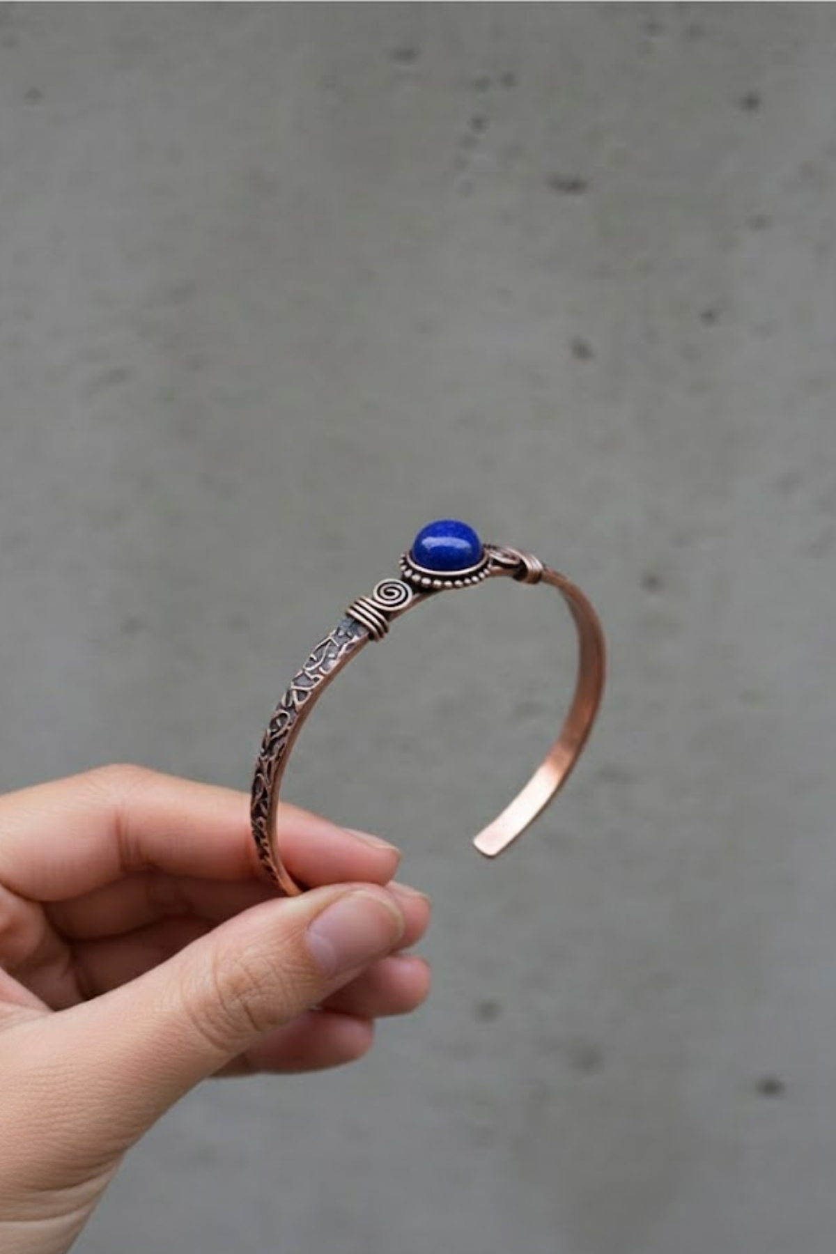 Handmade Copper Bracelet with Lapis Stone – Wisdom, Elegance and Authentic Style
