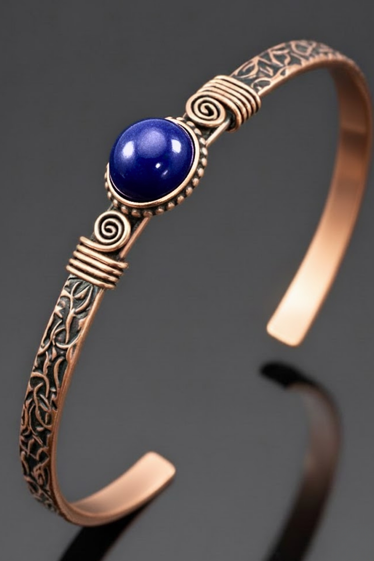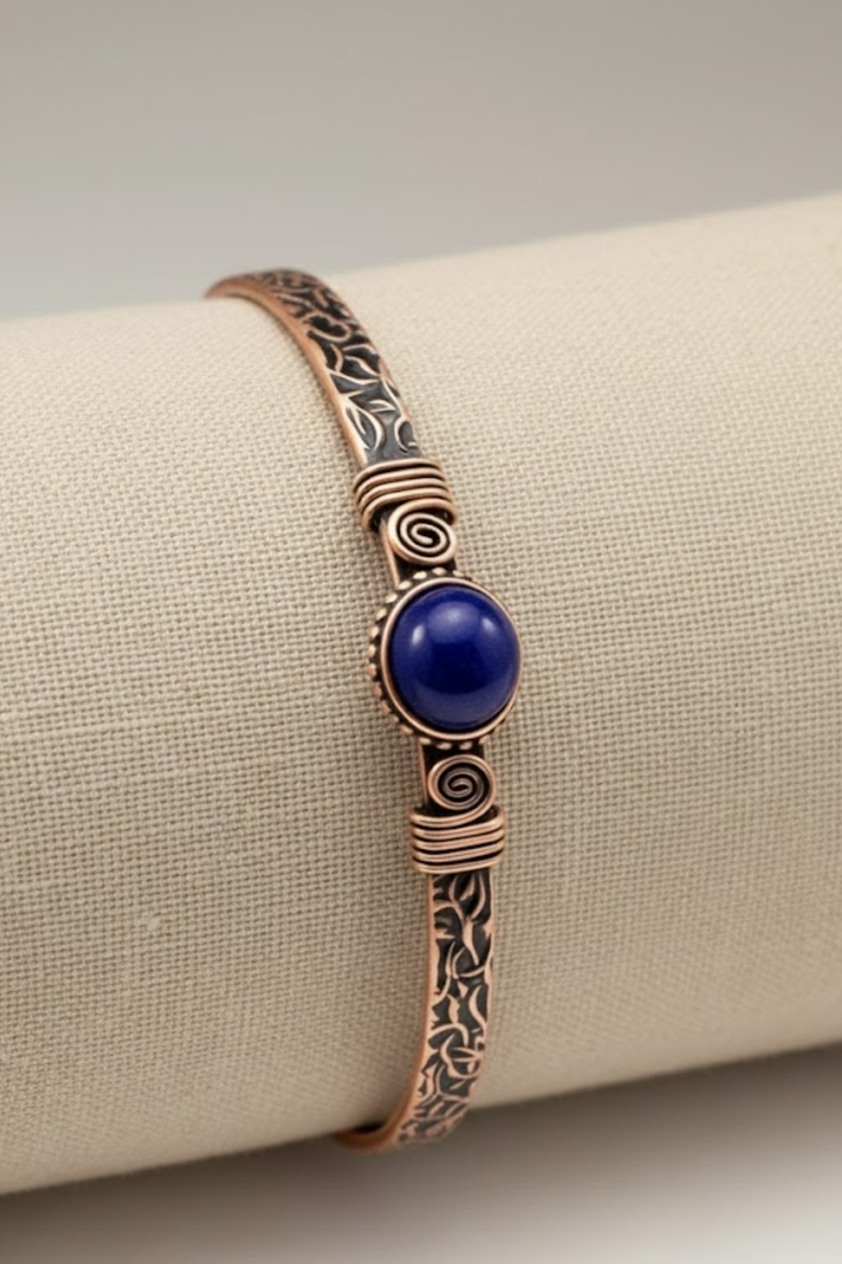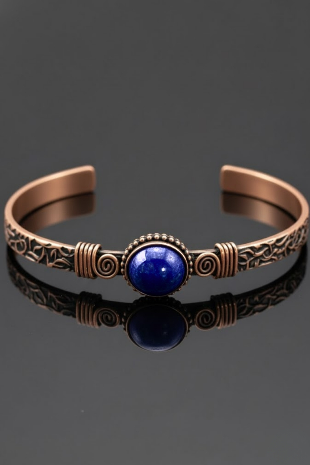 Handmade Copper Bracelet with Lapis Stone – Wisdom, Elegance and Authentic Style