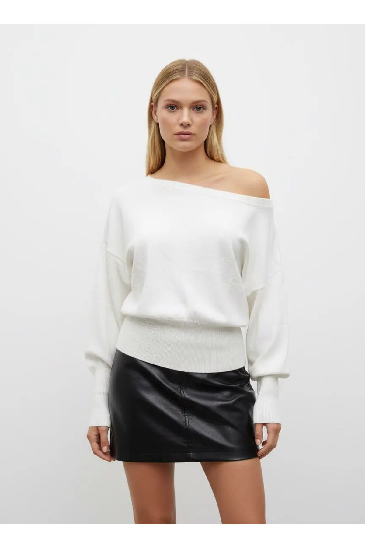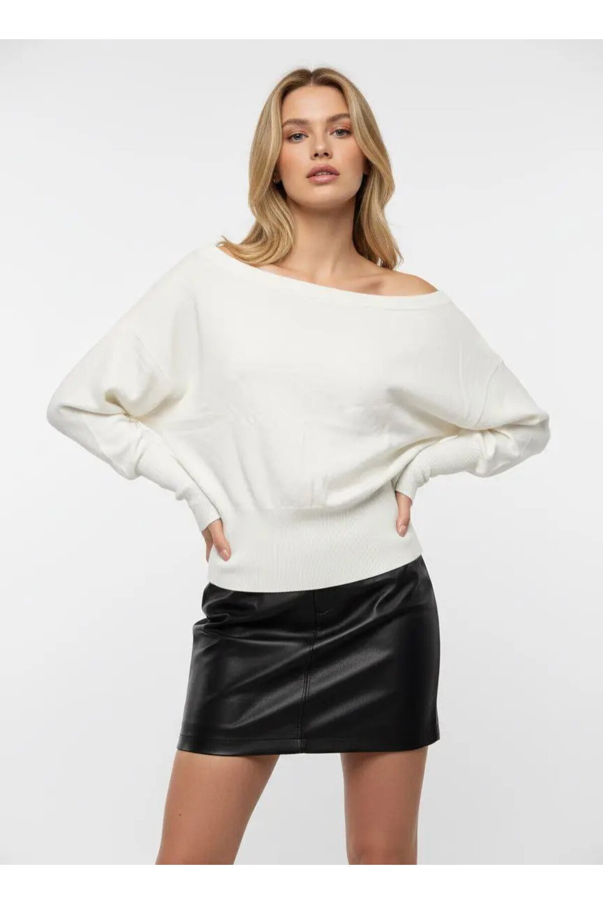 This knitwear sweater, which stands out with its soft texture, is made of50% acrylic and 50% cotton blend material.