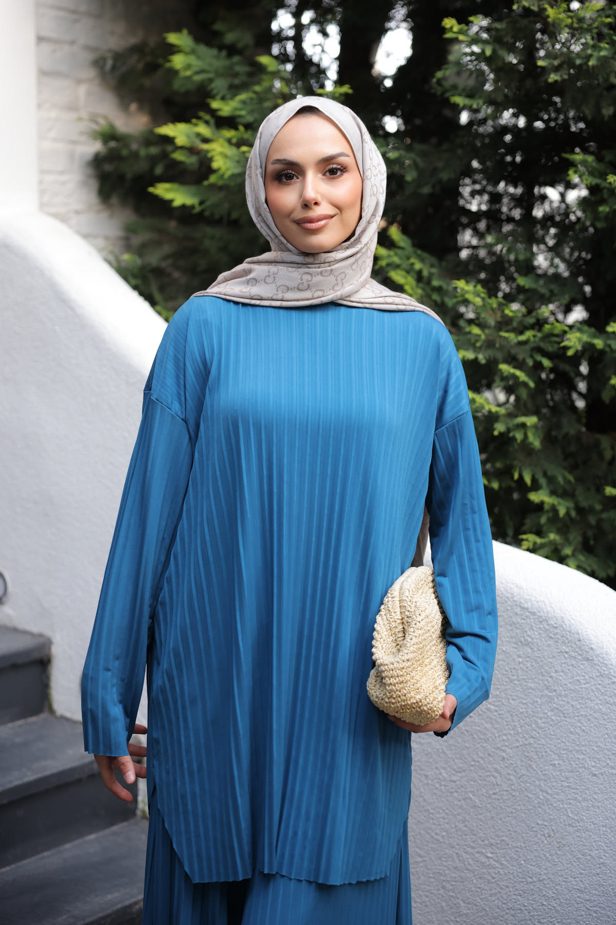İmajButik Petroleum Green Pleated Sandy Tunic Pants Set | ByTR