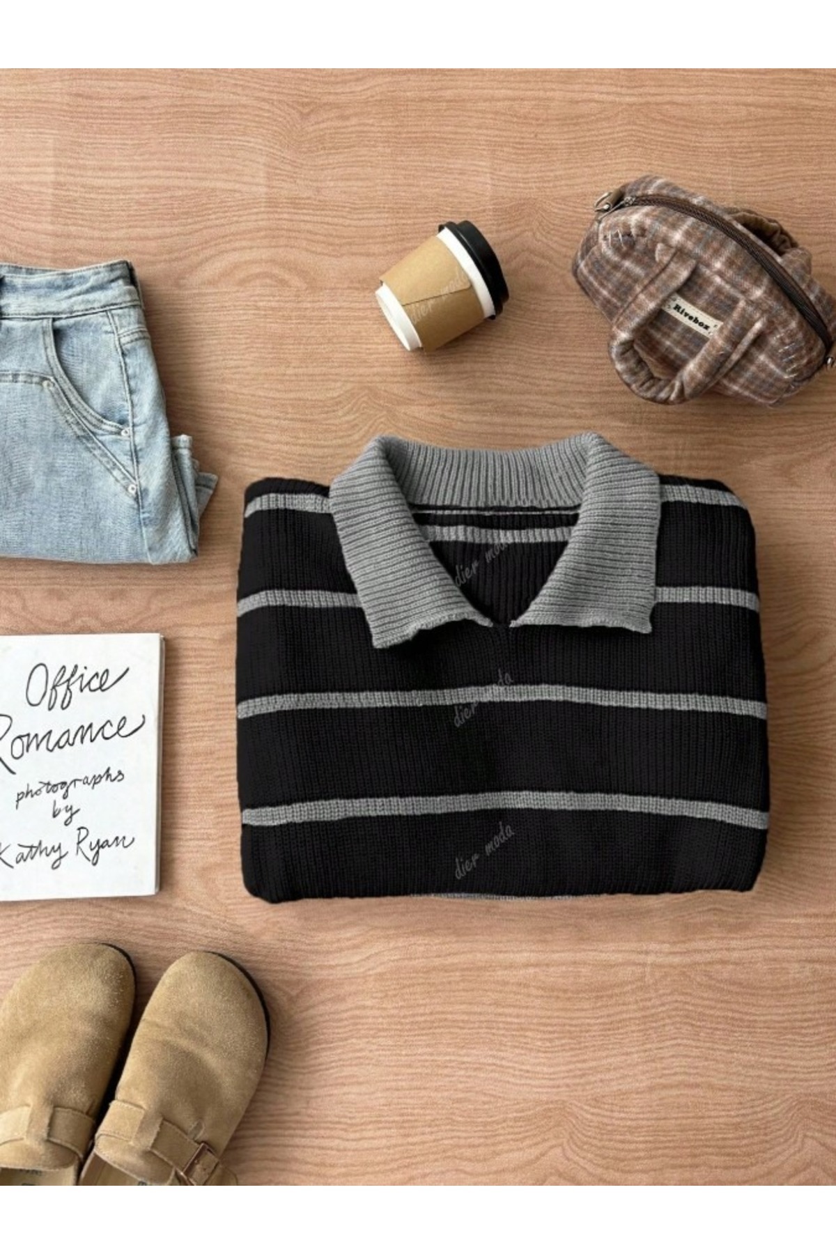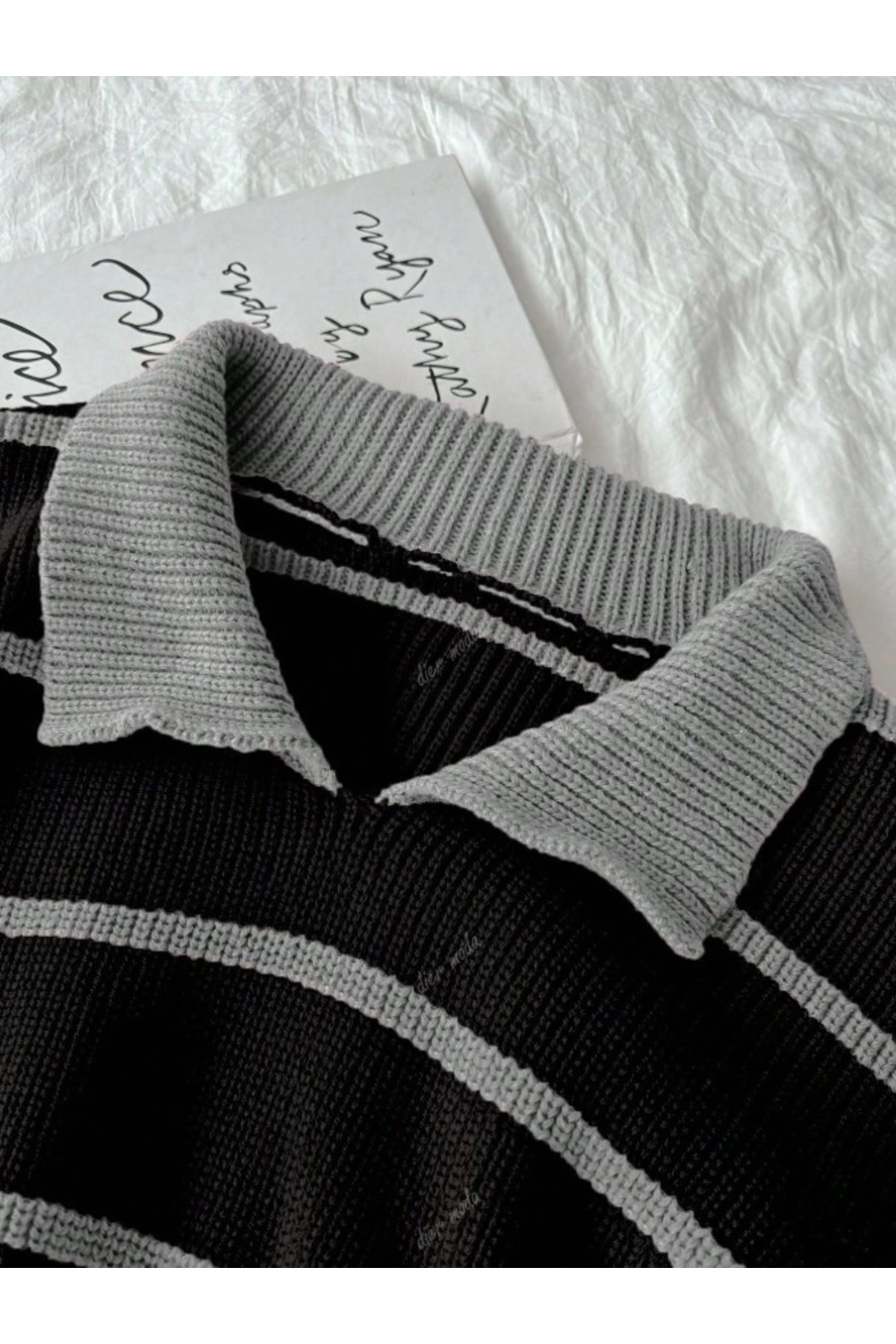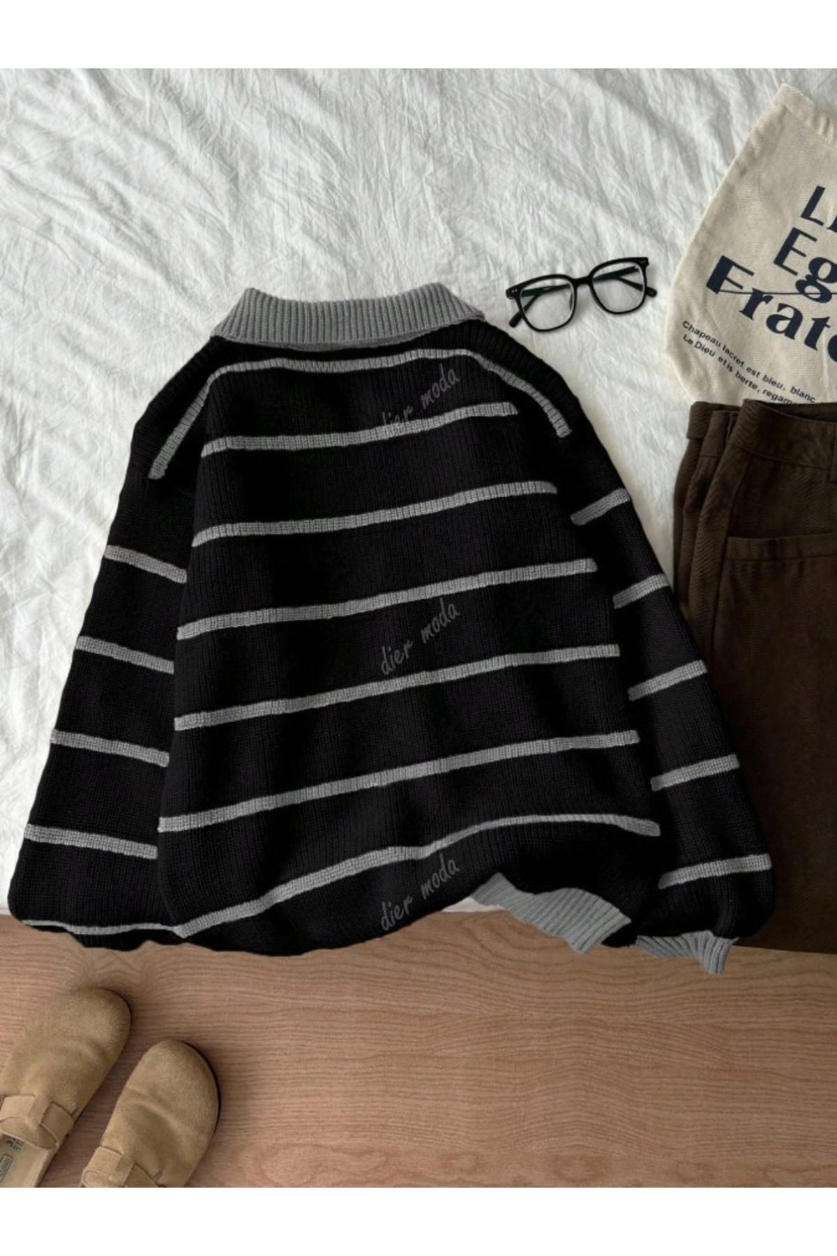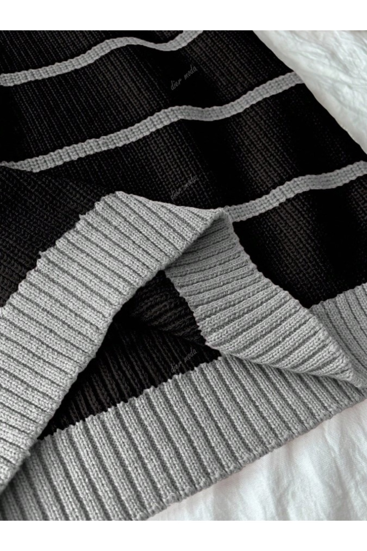 Dier Moda Gray Black Thessaloniki Knit Polo Neck Oversized Knitwear Sweater, Women's Sweater Fmoda101 | ByTR