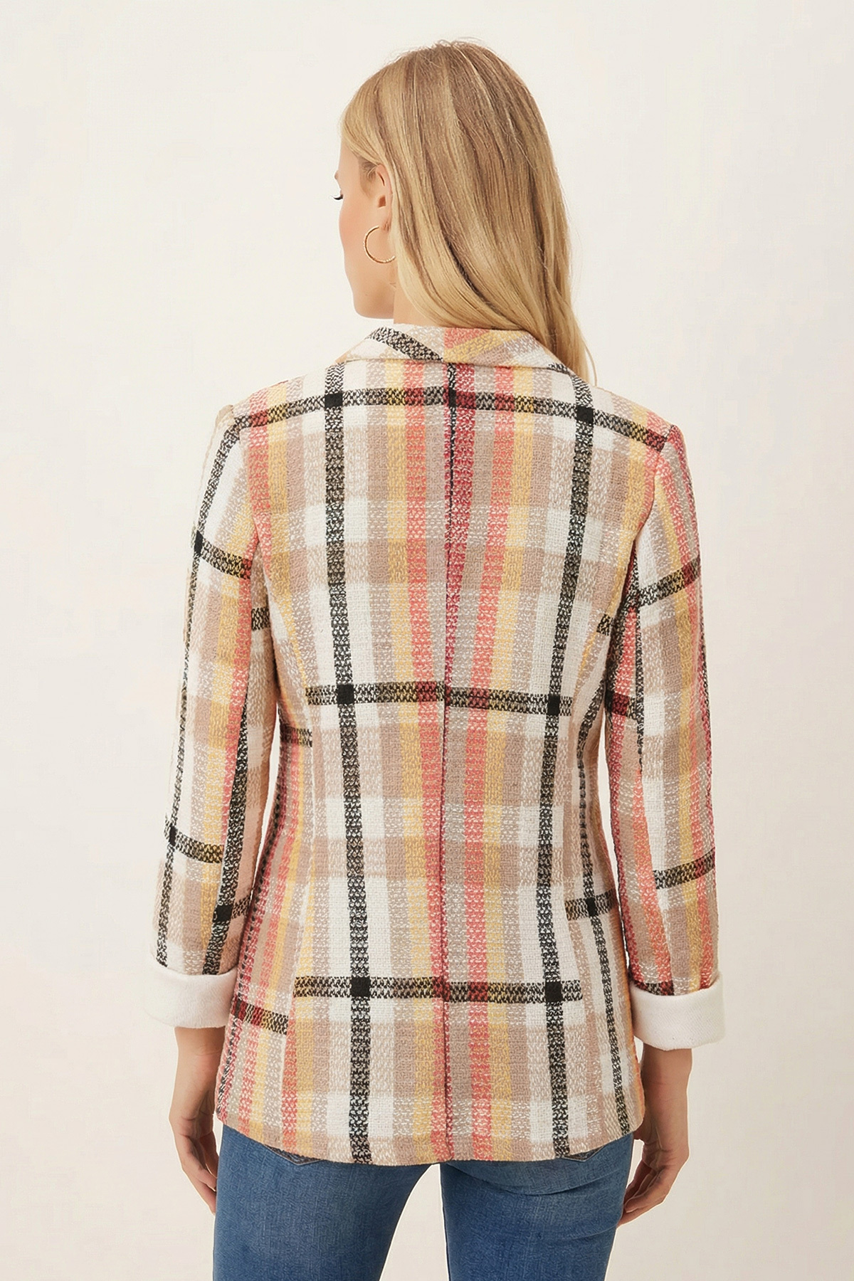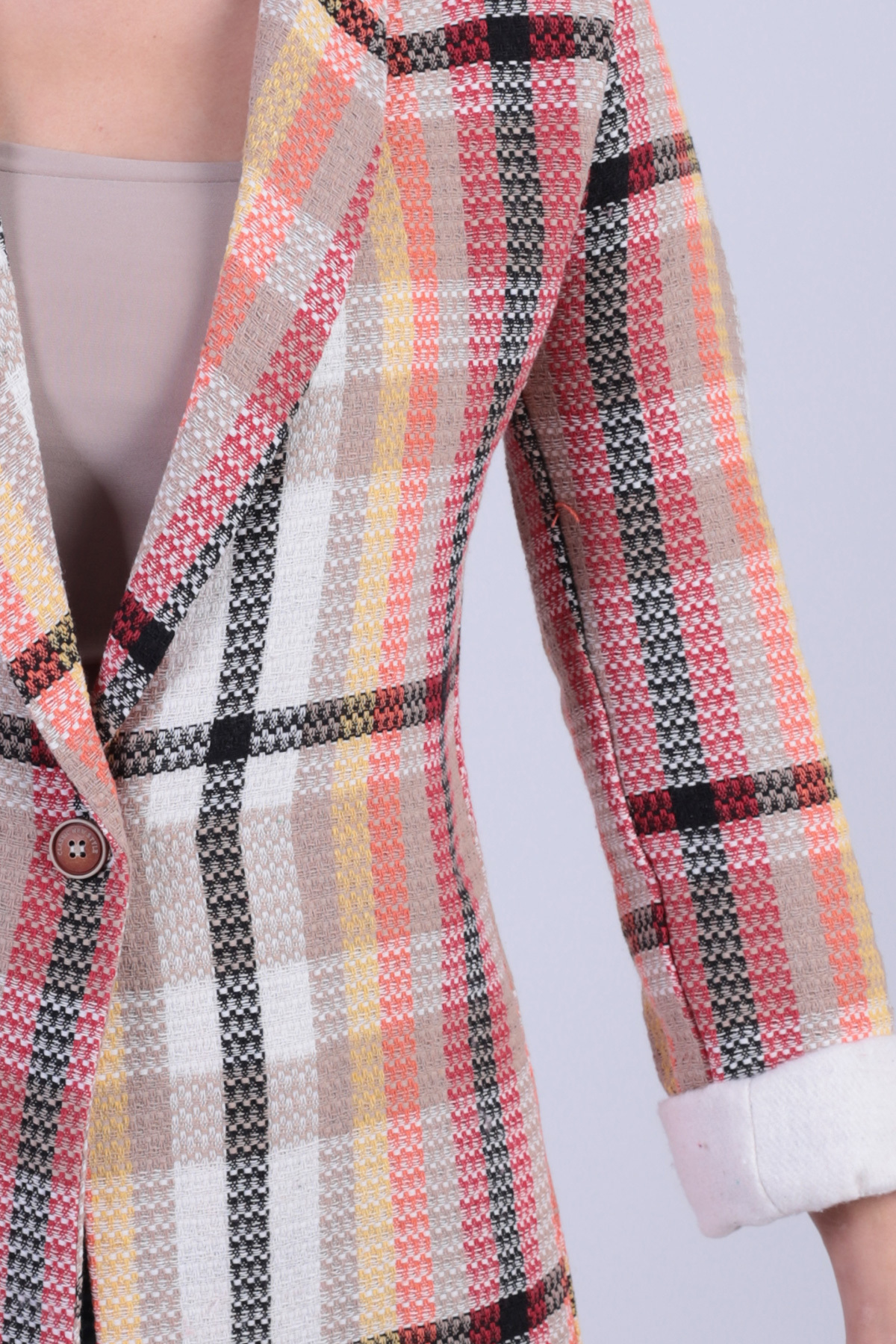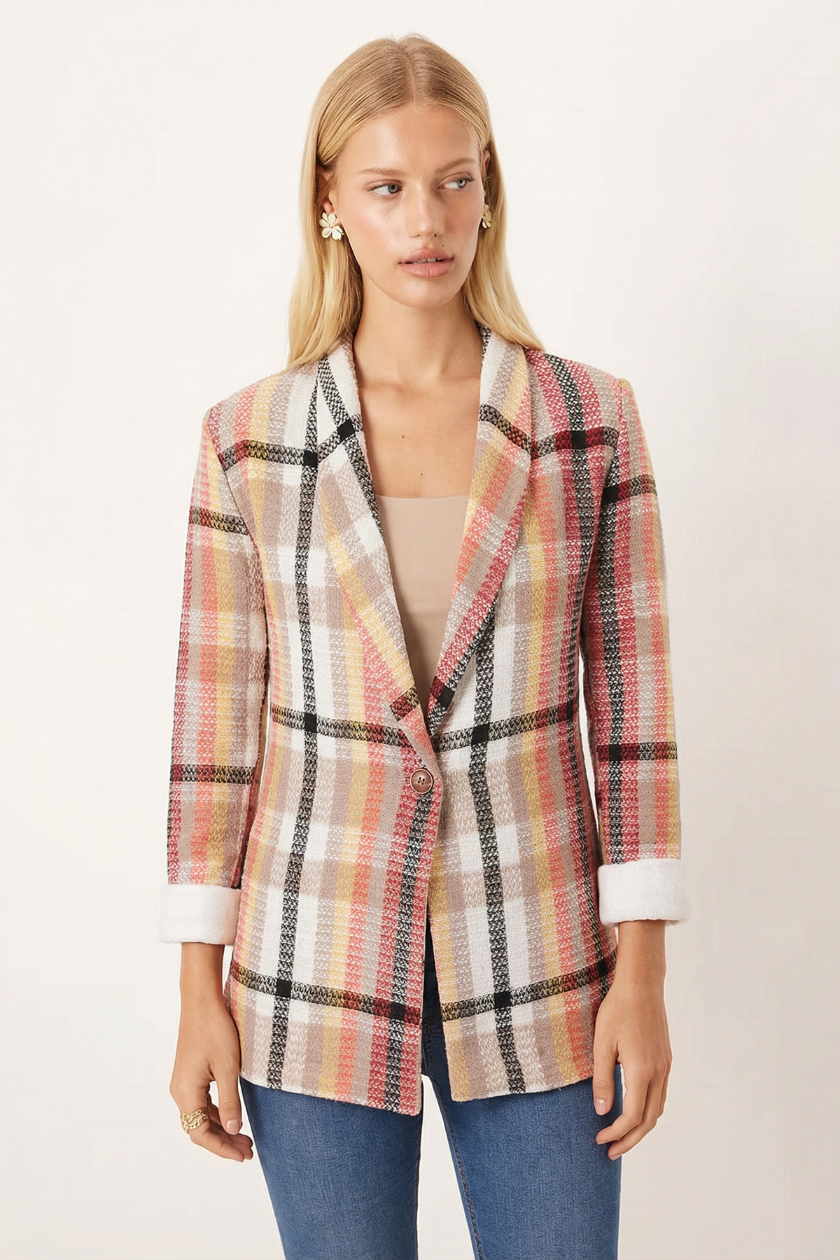 armonika Women's Beige Shawl Collar Garnish Sleeve One Button Jacket ARM-26K001087 | ByTR