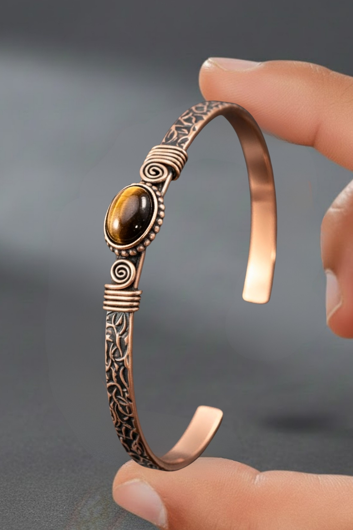 Color: Copper tone + natural tiger's eye stone